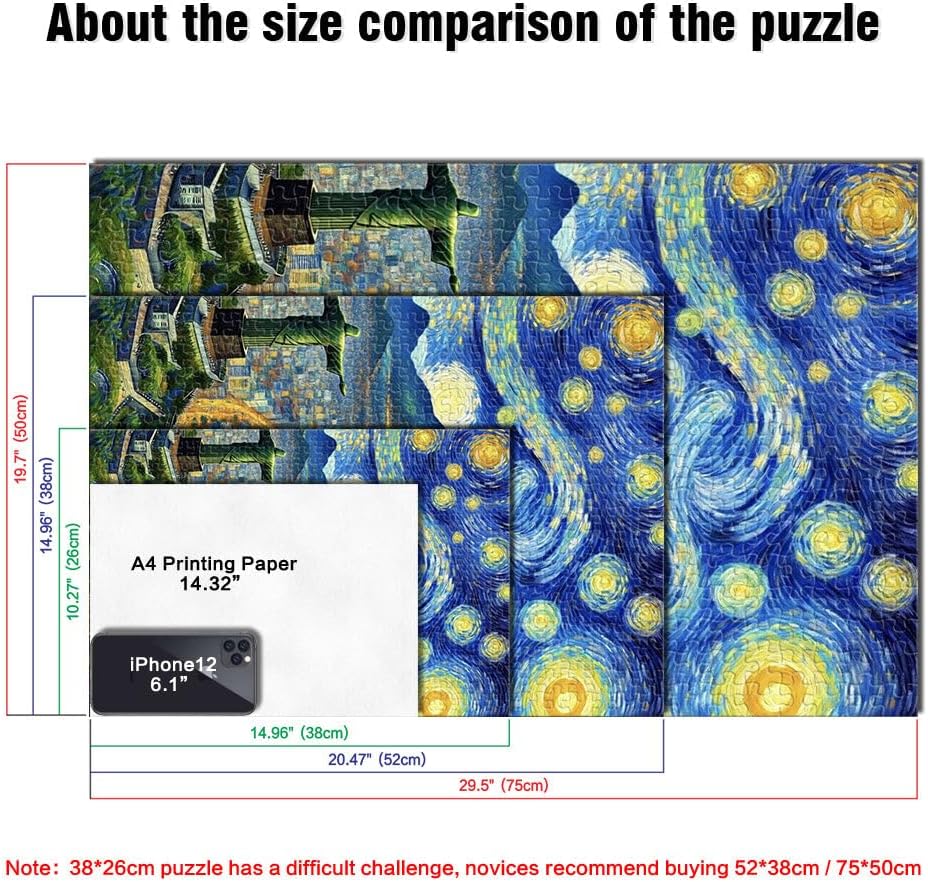 Design unico: ogni pezzo del puzzle è tagliato in modo unico e senza ripetizioni. Pertanto, è impossibile che il puzzle venga installato nella posizione sbagliata. Ogni pezzo del puzzle è splendidamente realizzato per adattarsi perfettamente ai pezzi adiacenti. Per un gioco più semplice. Il retro del puzzle è diviso in diverse aree ed etichettato con lettere, che possono aiutarti a ordinare rapidamente i pezzi del puzzle prima di iniziare a giocare per migliorare l'efficienza. Giochi di puzzle: se vuoi potenziare la tua attività cerebrale con dei fantastici giochi di puzzle, qui troverai un fantastico gioco che ti aiuterà e offrirà un divertimento indimenticabile e duraturo per tutta la famiglia. I puzzle possono calmare la mente e indurre uno stato di meditazione creativa. Sfruttano la nostra creatività, ricollegano il nostro cervello, creano "connessioni" e ci rendono più concentrati e rilassati. Lavorazione e materiali: contiene una scatola colorata, un puzzle da 1000 pezzi e un poster, dimensioni del puzzle: 50 cm x 75 cm. La tecnologia di taglio di precisione garantisce che ogni pezzo si adatti perfettamente. Questo puzzle è realizzato interamente in legno di tiglio riciclabile, atossico, ecologico, robusto e durevole, e lo spessore di ogni puzzle è di circa 1,8 mm. DIVERTIMENTO PER LA FAMIGLIA: Questo è un gioco a cui può partecipare tutta la famiglia. Si tratta di un puzzle da 1000 pezzi molto impegnativo. Che sia nel fine settimana o nel tempo libero, tutta la famiglia può rilassarsi e godersi il divertimento che i puzzle portano con sé. Che splendore! GARANZIA DI SODDISFAZIONE AL 100%: Amerai questo puzzle da 1000 pezzi dal design accattivante ed elegante. Per qualsiasi domanda sul puzzle o per ricevere un pezzo mancante, puoi contattarci in qualsiasi momento: ti forniremo un servizio eccellente.