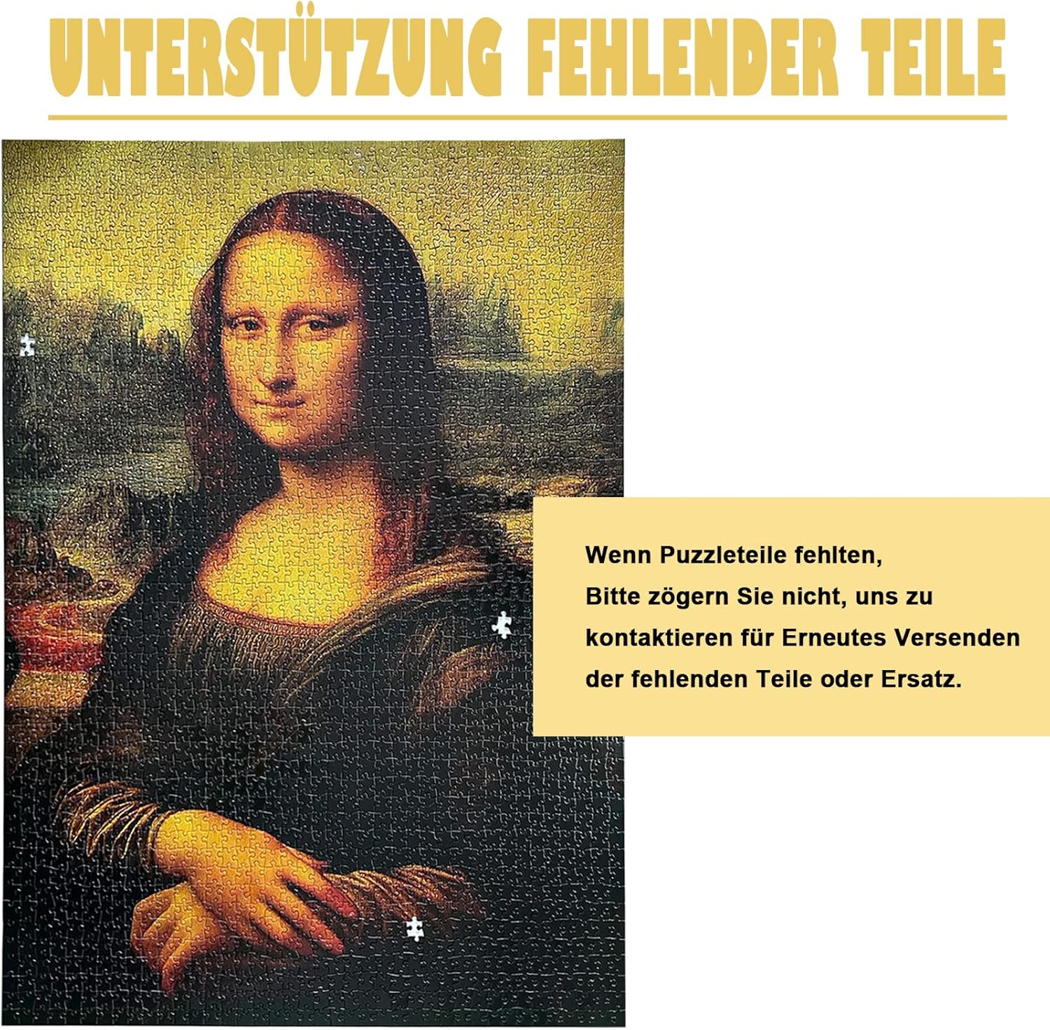 Puzzle per adulti da 2000 pezzi - Questo puzzle è composto da 2000 pezzi di puzzle di dimensioni normali, 《La Monna Lisa》 è uno dei capolavori di Da Vinci che dipinge un'immagine tipica di eleganza e serenità femminile. Diametro finito: 70 cm x 100 cm / 18,90 x 39,37 pollici. Puzzle luminosi che incantano con i colori - Diversamente dagli altri negozi, i pezzi del puzzle TINYOUTH sono realizzati in cartone di alta qualità, pezzi del puzzle spessi 2 mm, ben tagliati e si incastrano perfettamente. Lettere stampate sul retro del puzzle per separare le diverse sezioni e facilitare il lavoro. Gioco in famiglia o tempo per alleviare lo stress - Quando completi il puzzle, non solo avrai tempo da solo, ma anche tempo con la famiglia. Adatto a bambini dai 14 anni in su, può essere un bel regalo di compleanno o di Natale per un amico, una famiglia o per te stesso. Aiuta a coltivare la cognizione del colore e della forma da parte dei bambini, a sviluppare la pazienza e la concentrazione dei bambini e a ridurre la pressione degli adulti. Perfetto per la decorazione murale dell'home office⚡ -- Puoi completare il puzzle sul tappetino del puzzle e creare una cornice per il puzzle appendendolo a casa/ufficio/corridoio/bar o ovunque. ⚡Supporto per i pezzi mancanti⚡ -- Se mancano i pezzi del puzzle, contattaci, ti invieremo nuovamente i pezzi mancanti immediatamente.