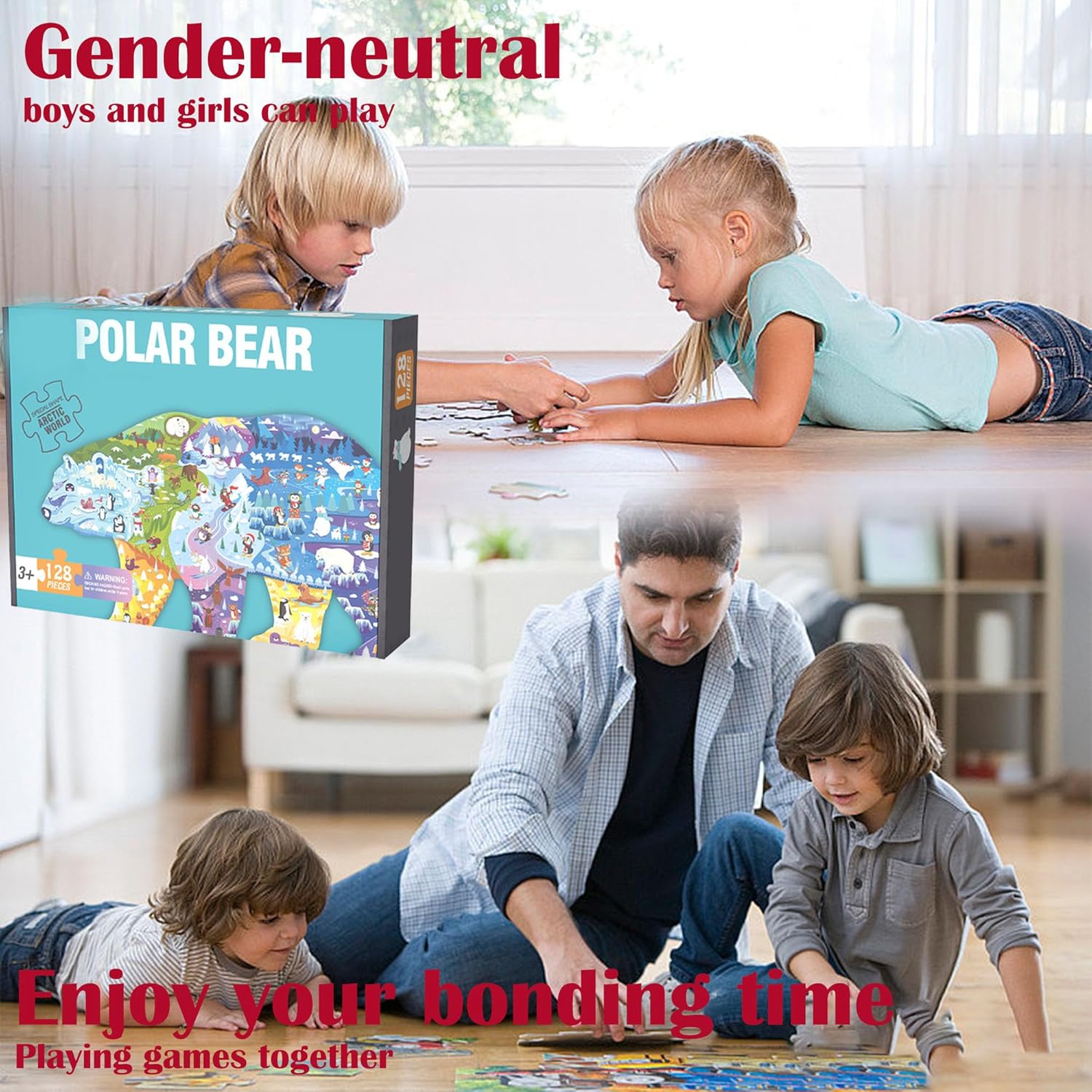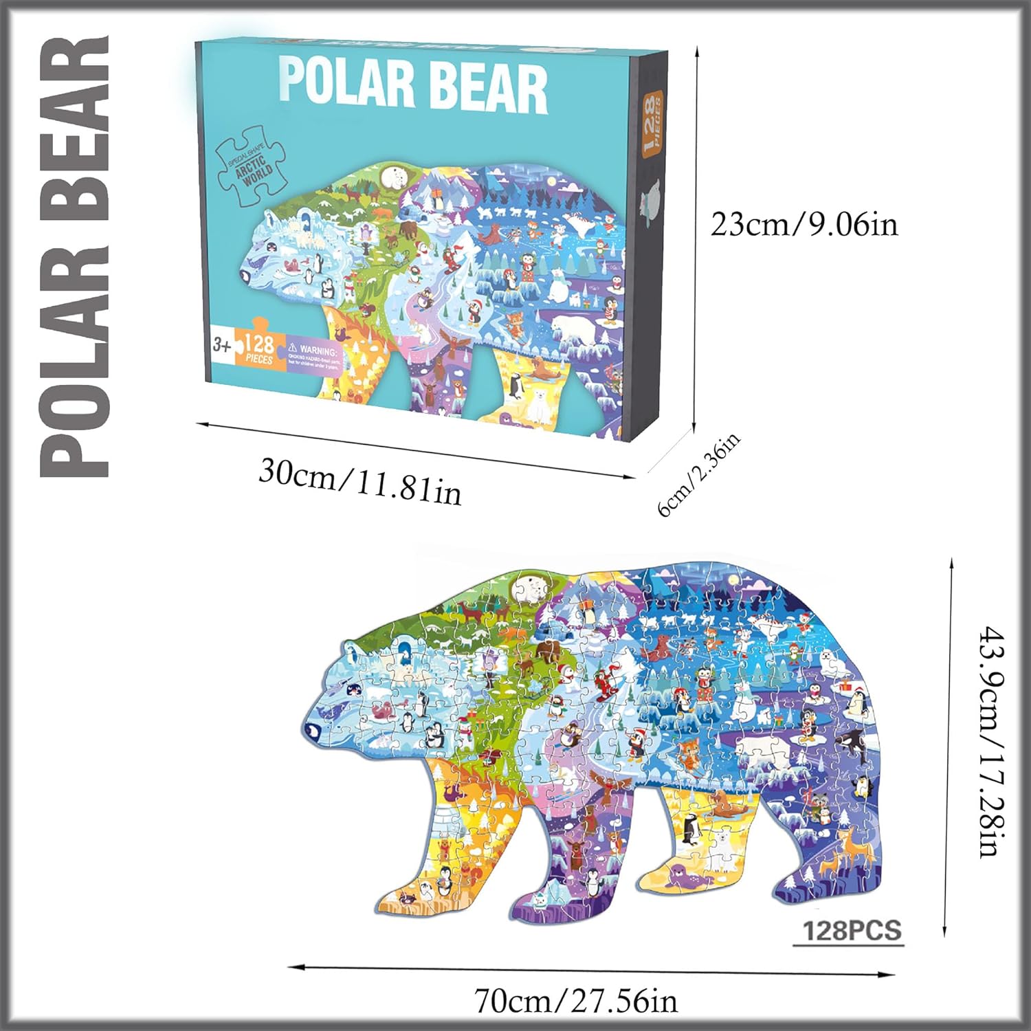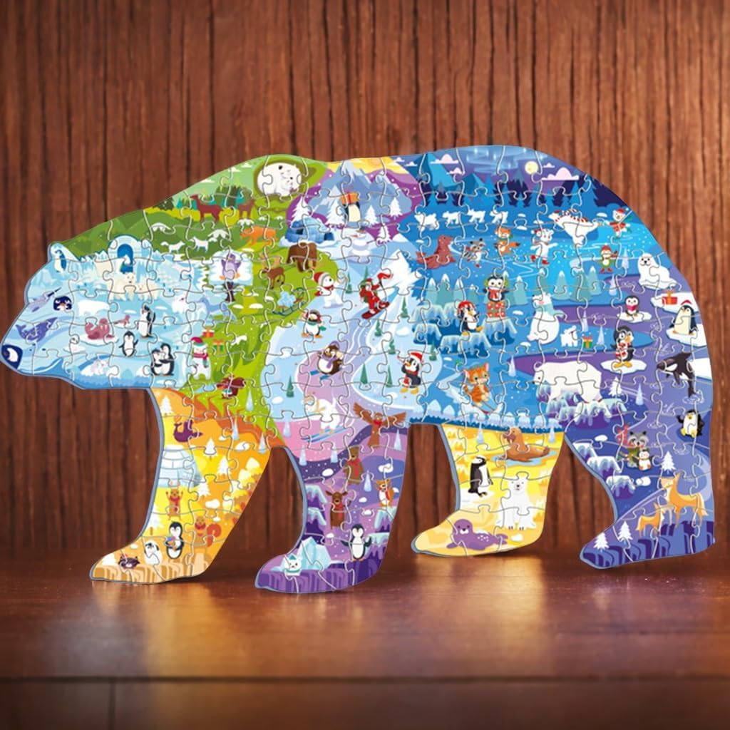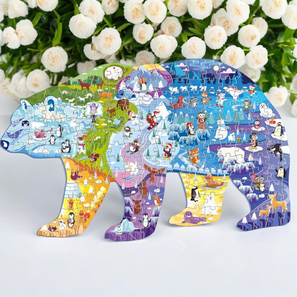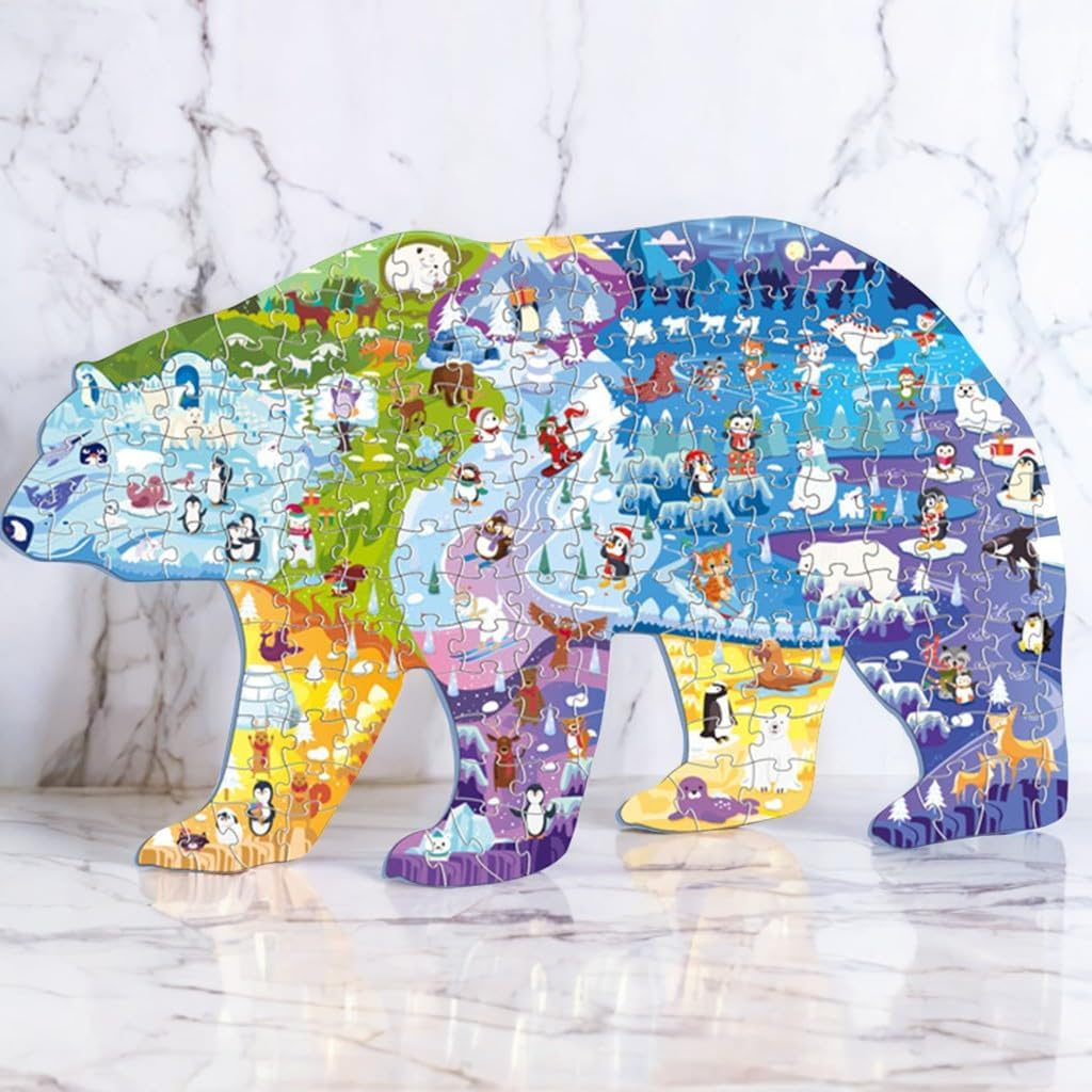 🐻❄️Puzzle dell'orso polare: contiene 128 spessi pezzi del puzzle, un poster gratuito e una delicata scatola di cartone. Quando non viene utilizzato, il puzzle può essere riposto nella scatola, garantendo così che non vada perso e mantenendo la stanza in ordine. Dimensioni del puzzle finito: 70 x 43,9 cm. 🐻❄️Materiali sicuri e di qualità: 128 puzzle sono realizzati in cartone riciclato di alta qualità, atossico, duro e liscio. Grazie allo speciale trattamento della pellicola superficiale, i colori rimangono inalterati anche dopo lunghi periodi di stoccaggio. Tutti gli angoli di questo puzzle sono arrotondati, rendendolo ideale per i bambini. 🐻❄️Divertente ed educativo: coltiva il pensiero logico e la coordinazione sensoriale dei bambini, migliora le capacità cognitive, sviluppa la coordinazione occhio-mano, le capacità motorie, la risoluzione dei problemi, il riconoscimento della forma e la memoria. 🐻❄️Interazione familiare: impara giocando, goditi la gioia della famiglia, trascorri più tempo con i tuoi figli, accompagnali, non perdere la loro infanzia, lascia che i bambini creino sogni colorati. 🐻❄️ Un regalo perfetto: questo puzzle dell'orso polare è colorato e un regalo perfetto per i bambini, viene fornito in una delicata confezione regalo per un facile trasporto. Questo puzzle può essere utilizzato non solo per il divertimento del montaggio, ma anche per decorare il soggiorno e la cameretta dei bambini.