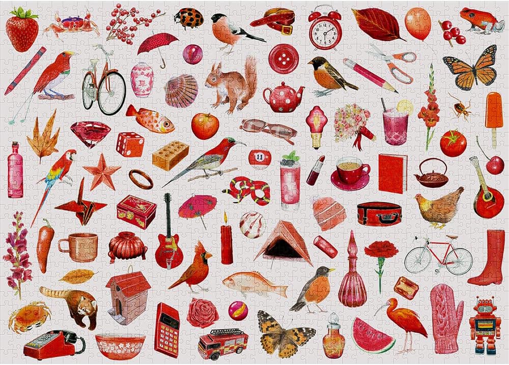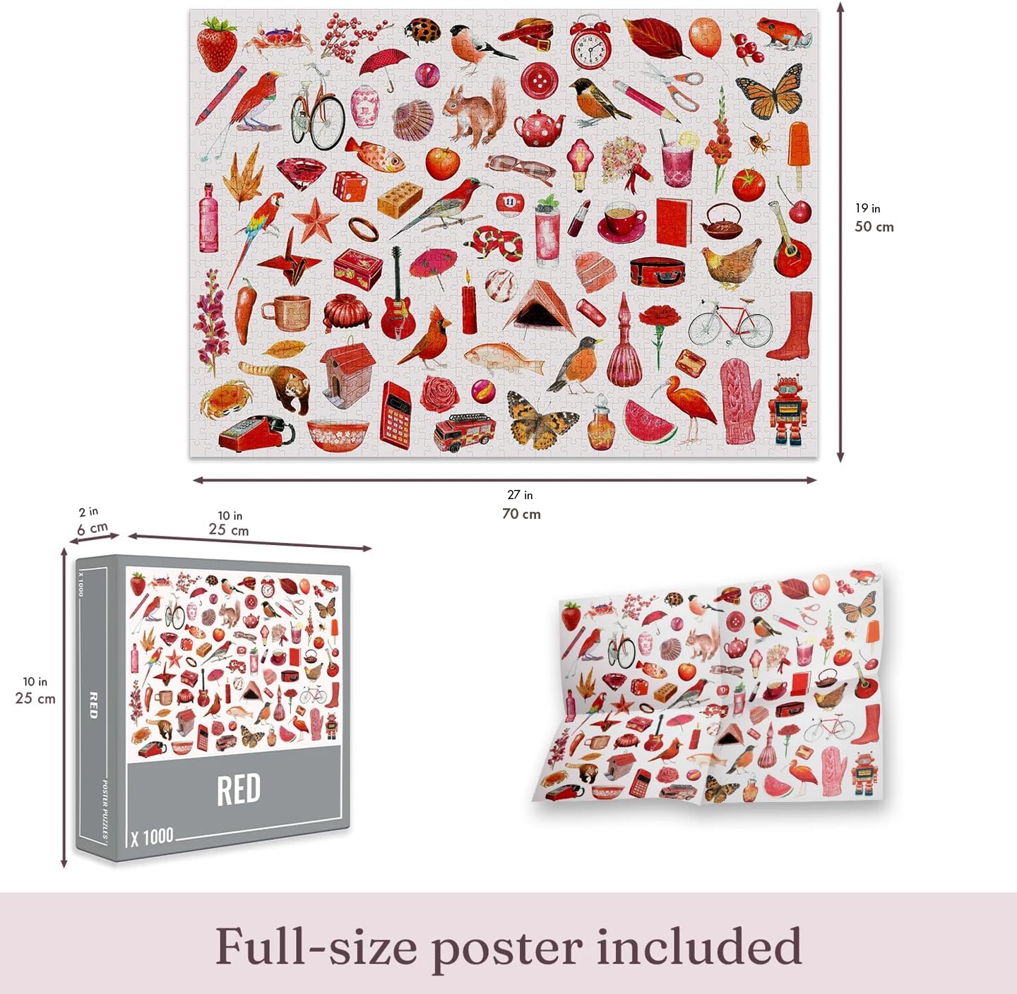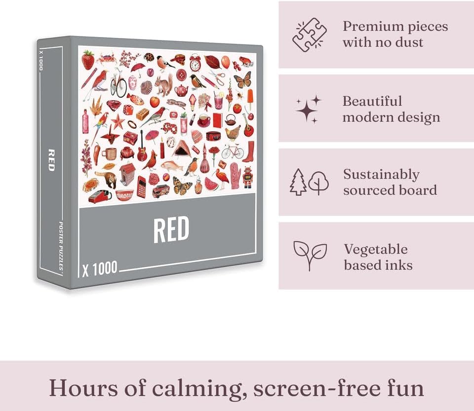 DIVERTENTE E BELLO: il nostro puzzle rosso per adulti presenta dozzine di bellissime illustrazioni. Ti divertirai tantissimo ad assemblare questo puzzle monocromatico pieno di uccelli, pesci e oggetti di uso quotidiano. Qualità perfetta: realizziamo i nostri puzzle da 1000 pezzi in Europa utilizzando carta proveniente da fonti sostenibili e inchiostri vegetali sicuri. I pezzi sembrano perfetti nelle tue mani e si uniscono con un clic super soddisfacente. Oltre 90 illustrazioni: cerca le belle foglie rosse e un simpatico panda rosso. Sebbene il puzzle sia composto da varie tonalità di rosso e rosa, ci sono abbastanza piccoli dettagli per renderlo un puzzle rilassante e consapevole. Poster a grandezza naturale incluso. Ti piacerebbe fare un puzzle con un amico? Usa il poster a grandezza naturale gratuito ed entrambi potrete vedere tutti i dettagli divertenti del nostro puzzle rosso. Dimensioni del puzzle finito: 68 x 48,5 cm Sostieni le piccole imprese: quando scegli un puzzle Cloudberries, sostieni una piccola azienda a conduzione familiare che ha a cuore l'ambiente. Cerca il logo FSC sui nostri puzzle, il che dimostra che utilizziamo materiali sostenibili per ogni puzzle