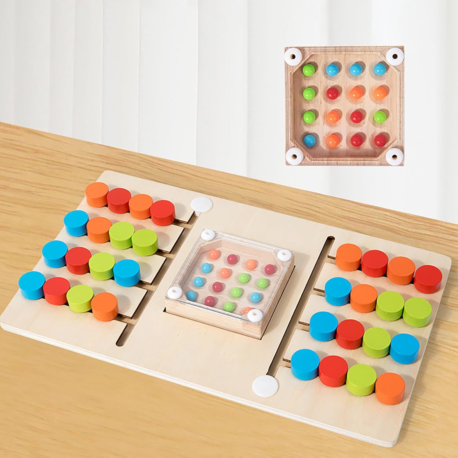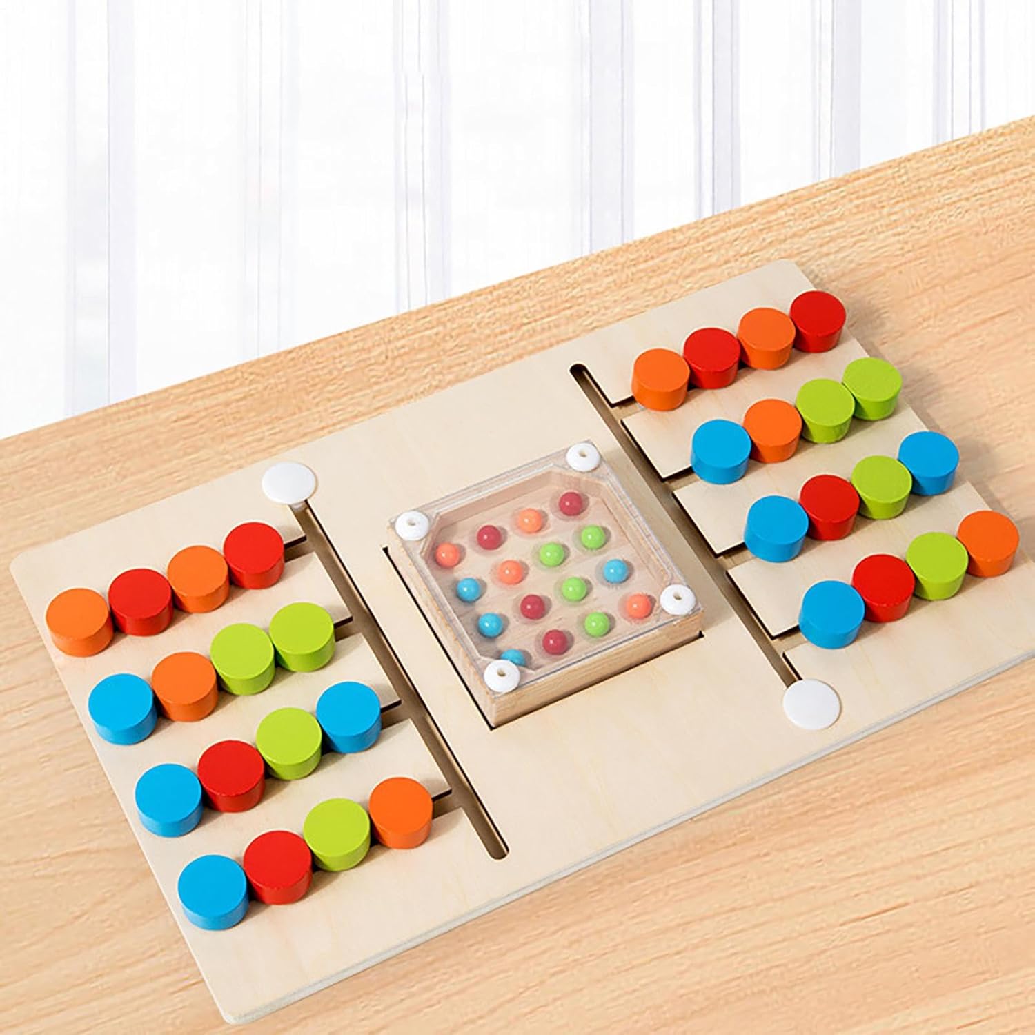 Per tutte le età: questo gioco di puzzle di corrispondenza dei colori è amato da bambini e adulti e migliora le vacanze e i compleanni grazie alla sua capacità di riunire le persone. Offre ore di intrattenimento e incoraggia connessioni allegre in qualsiasi ambiente festivo ed eventi sociali servendolo come souvenir ideale e condividendo la gioia del gioco del puzzle. Compagno compatto: i puzzle scorrevoli per bambini sono particolarmente compatti e facili da viaggiare, il che garantisce una facile conservazione ovunque senza occupare molto spazio. Sono ideali per viaggi in famiglia o per tenere occupati i bambini nelle sale d'attesa. Il suo design sottile lo rende un giocattolo ideale per i viaggi, sempre a portata di mano e non richiede alcuna preparazione fastidiosa. Rafforza la coordinazione occhio-mano: il puzzle scorrevole sfida gli utenti a risolvere modelli complessi, rafforza il pensiero logico e migliora l'attenzione e le capacità di risoluzione dei problemi. È ottimo per le serate in famiglia o per le attività tranquille e supporta lo sviluppo di abilità coordinative attraverso compiti divertenti. Design luminoso e sicuro: con colori atossici e brillanti e artigianato in legno massiccio, questo puzzle in legno per l'assegnazione dei colori offre un bordo liscio e arrotondato che lo rende ideale per i giovani studenti, per migliorare le capacità motorie e la creatività durante le attività di gioco educative senza compromettere la durata o la sicurezza. Allenamento interattivo dei colori: questo puzzle scorrevole aiuta i bambini a conoscere i quattro colori di base in modo giocoso e migliorare la loro capacità di differenziazione visiva. Promuove lo sviluppo della consapevolezza precoce del colore e offre una divertente esplorazione tattile per l'uso a casa o in asili, ideale per la percezione del colore della prima infanzia e l'apprendimento sensoriale nella vita quotidiana.