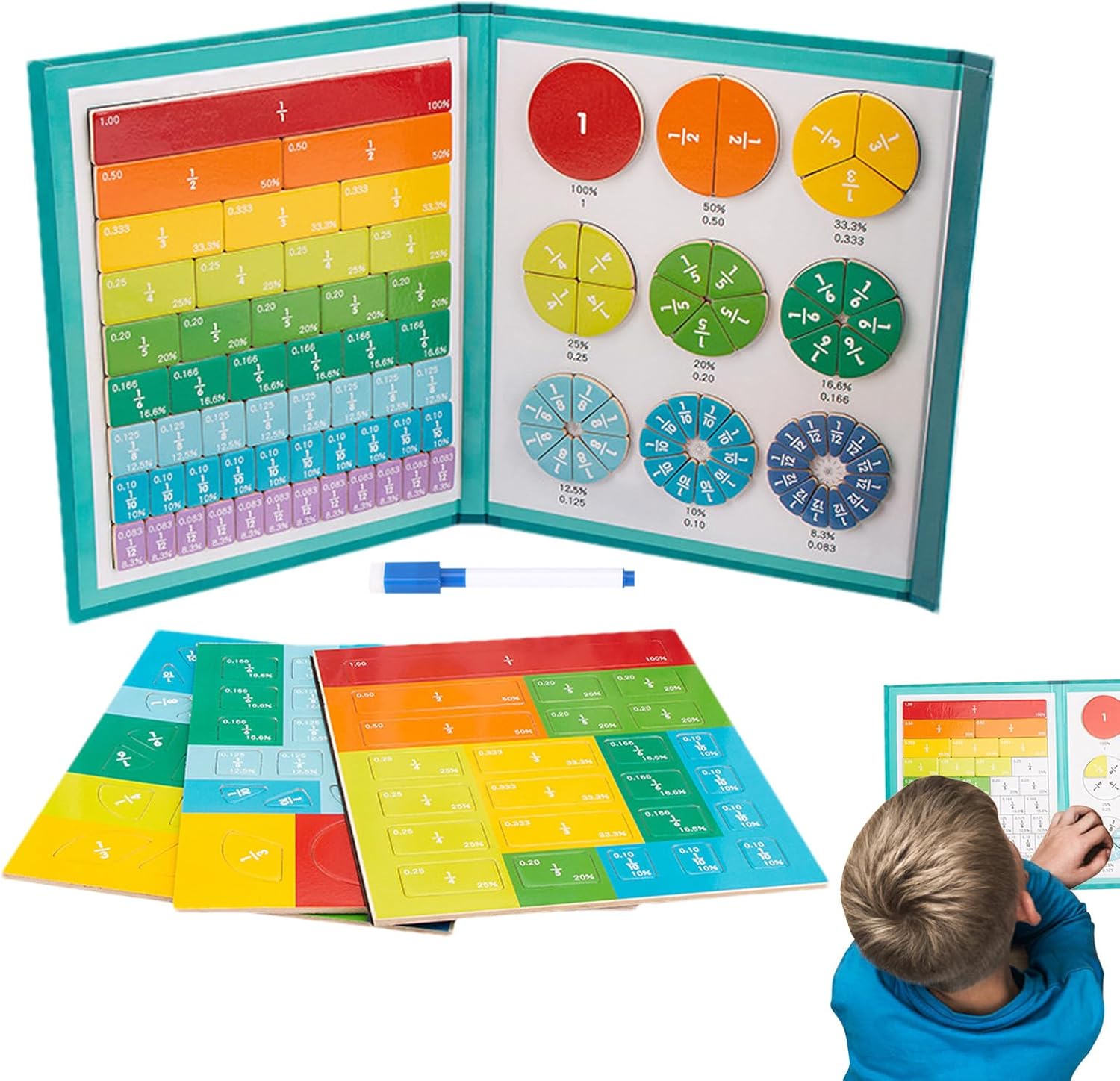 Ausilio visivo per l'apprendimento: giocosa aritmetica delle frazioni con parti magnetiche di alta qualità e design accattivante per chiare dimostrazioni matematiche, ideale per promuovere la comprensione dei numeri negli studenti della scuola primaria. Strumento versatile per l'apprendimento: supporta lo sviluppo sensoriale e la differenziazione delle forme, migliorando al contempo le abilità pratiche e la coordinazione nelle situazioni di gioco. Adatto per l'istruzione domiciliare: ideale per l'istruzione a casa con esercizi magnetici e pratici di aritmetica delle frazioni, inclusa una soluzione di archiviazione organizzata e accesso diretto all'e-book per l'apprendimento indipendente con risultati tangibili. Apprendimento in movimento: gli elementi magnetici sviluppati didatticamente migliorano la percezione cinestesica e visiva. Colori vivaci con numeri contrastanti consentono una migliore comprensione dei numeri per un'esperienza matematica dinamica con materiali tangibili. Incoraggia le giovani menti: ideali per la scuola e la casa: le frazioni magnetiche semplificano i calcoli delle frazioni, incoraggiano la curiosità matematica e sono un regalo che migliora l'apprendimento per i bambini dai 6 anni in su