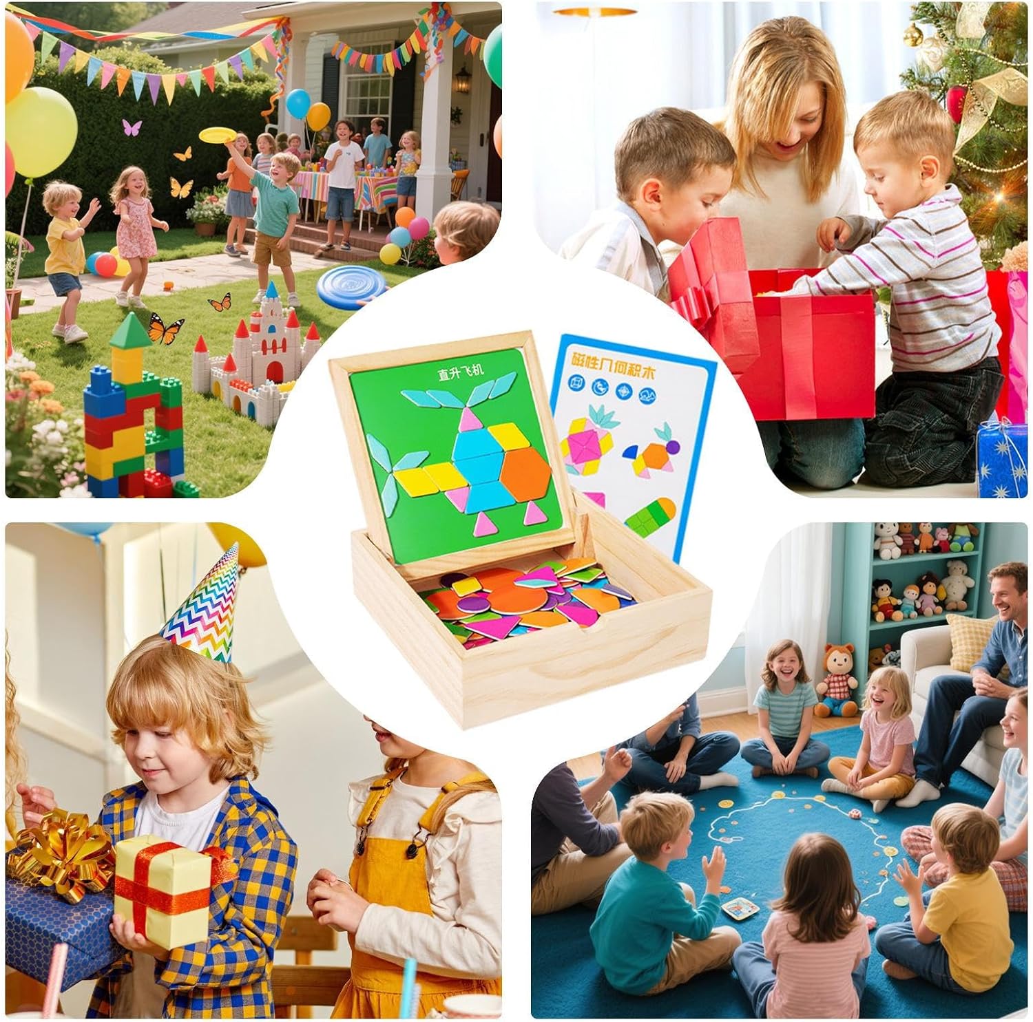 Sviluppo Cognitivo: Il Tangram Magnetico favorisce il miglioramento della coordinazione occhio-mano e mano-cervello, consentendo agli utenti di aumentare la concentrazione e le abilità motorie fini durante l'assemblaggio di forme, per libero o compiti di problem-solving in classe. Materiale Durevole: Questo puzzle magnetico tangram è realizzato in legno, fornendo materiali eccellenti che garantiscono durata e sicurezza; la sua costruzione robusta supporta una manipolazione ripetuta durante il gioco o le sessioni di apprendimento, rendendolo ideale per aule, case o viaggi. Favorisce la Consapevolezza Spaziale: I Tangram Magnetici assistono nel riconoscere forme base e modelli, favorendo abilità di ragionamento logico che supportano lo sviluppo cognitivo, rendendoli perfetti per il gioco educativo o le sessioni di apprendimento familiare, per un'esperienza di apprendimento coinvolgente. Strumento di Apprendimento Giocoso: I tangram magnetici permettono ai bambini di scoprire combinazioni creative, offrendo decine di possibilità di costruzione coinvolgenti che stimolano il pensiero immaginativo e supportano l'apprendimento pratico in ambienti sia interni che esterni. Idea Regalo Creativa: Il Tangram Magnetico agisce come un regalo wonderful per compleanni, festività e raduni. Consente ai bambini di esplorare forme e pattern mentre migliorano la concentrazione e la creatività in ambienti festivi. Questo puzzle magnetico è ideale per promuovere le abilità visive e logiche through un'attività piacevole che incoraggia l'esplorazione e l'innovazione.