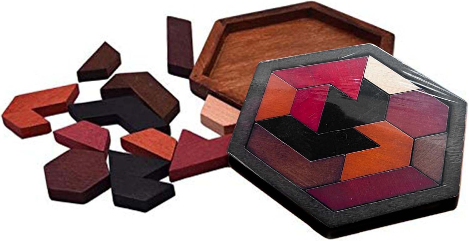【Migliora la capacità di pensiero】 I puzzle Tangram per bambini non solo si divertono a far giocare i bambini, ma li aiutano anche a esercitarsi, migliorare il riconoscimento della forma, la coordinazione occhio-mano, l'abilità pratica, la capacità di pensiero e l'immaginazione spaziale. 【Materiali di alta qualità】 Il puzzle in legno è realizzato in legno di alta qualità, accuratamente lucidato, senza smussi o sbavature taglienti e non danneggerà le mani del bambino. 【Facile da trasportare】 Leggero e di piccole dimensioni facilita il trasporto del puzzle tangram esagonale in qualsiasi momento, comodo per viaggi a lunga distanza o viaggi in aereo, così i tuoi bambini possono giocarci. 【Ottimo regalo】 Il puzzle tangram in legno è un fantastico giocattolo per bambini e . per regali di compleanno, regali di Natale, regali di festa e regali di Capodanno. [Promuovere la relazione genitore-figlio] Supporta genitori e figli a giocare insieme, i puzzle tangram possono aiutare genitori e figli a trascorrere del insieme e rafforzare la relazione genitore-figlio.