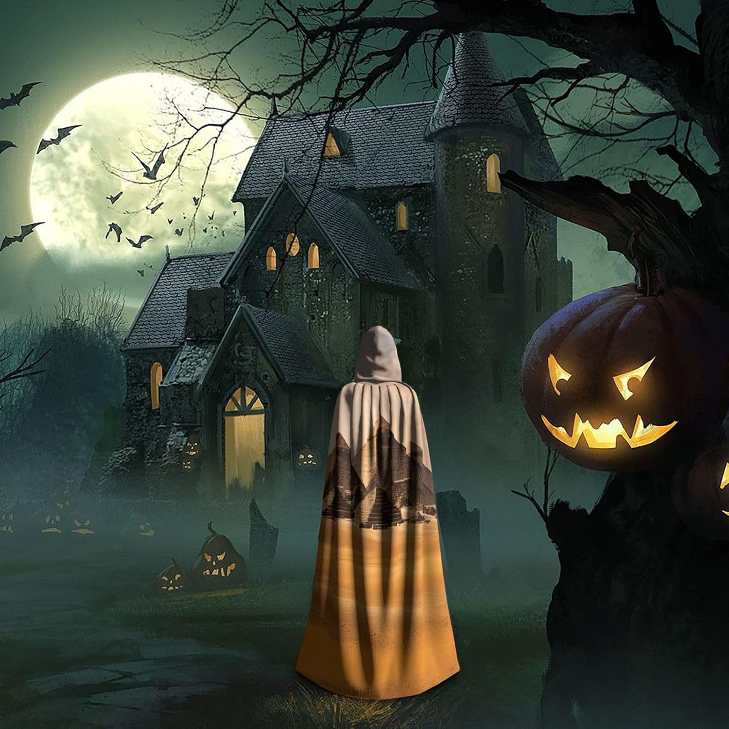 Pyramids of Egypt - Mantello lungo con cappuccio, per adulti, per feste a tema, giochi di ruolo