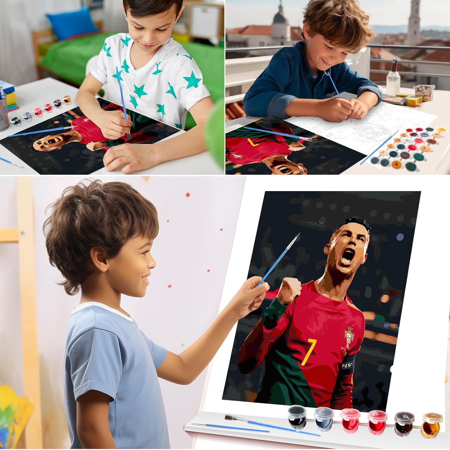 Semplici passaggi per dipingere: creerai un bellissimo e unico dipinto da calcio, indipendentemente dal fatto che tu sia buono o cattivo nel disegno. Questa pittura di calcio con i numeri non richiede alcuna conoscenza di pittura. Basta dipingere la tela con il numero corrispondente di colori. Questa pittura con i numeri aiuta a migliorare le tue abilità pratiche di disegno, adatto per bambini, ragazzi, adulti e principianti fai da te. Più divertimento Porta: dipingere con i pagamenti può avvicinarti ai tuoi figli e amici. La pittura a calcio con i numeri è un artigianato divertente e innovativo per bambini e adulti. Allena le loro abilità pratiche, la coordinazione occhio-mano, l'espressione creativa e la fiducia in se stessi, li fa innamorare del fai da te e stare lontano dall'elettronica. Si prega di notare che la nostra pittura con i numeri per adulti e bambini non contiene cornice. Pigmenti acrilici di alta qualità: questa grande pittura con i numeri è diversa dal kit per pittura fai da te. Usiamo vernice acrilica sana, la vernice è resistente e copre bene, mentre può essere facilmente lavata via con acqua e sapone. È sicuro per i bambini. Può essere utilizzato per decorare la tua stanza quando la semplice pittura con i numeri è completata. Immagina l'orgoglio e la gioia di appendere una squisita opera d'arte creata da te. Contenuto della confezione Dipingi con i numeri: il nostro kit per pittura a olio di calcio contiene tutto ciò di cui hai bisogno. Ogni set viene fornito con una tela ad alta risoluzione, colori acrilici di alta qualità, 2 ganci e 3 pennelli con diverse punte. La chiara pressione dei numeri riduce l'affaticamento degli occhi e garantisce una piacevole esperienza di pittura. La pittura con i numeri da calcio può aiutare i vostri bambini a creare opere d'arte perfette, stimolare la creatività e alleviare lo stress. Idee regalo creative: il nostro kit per dipingere con i numeri è un regalo unico e creativo per i tuoi amici e familiari. Appositamente progettato per compleanno, Pasqua, festa dei bambini, Halloween, Ringraziamento, Natale, carnevale, Capodanno o altre feste. Se non siete soddisfatti di questa pittura con i numeri o se mancano accessori per dipingere con i numeri, non esitate a contattarci. Vi risponderemo entro 24 ore e vi forniremo una soluzione soddisfacente.