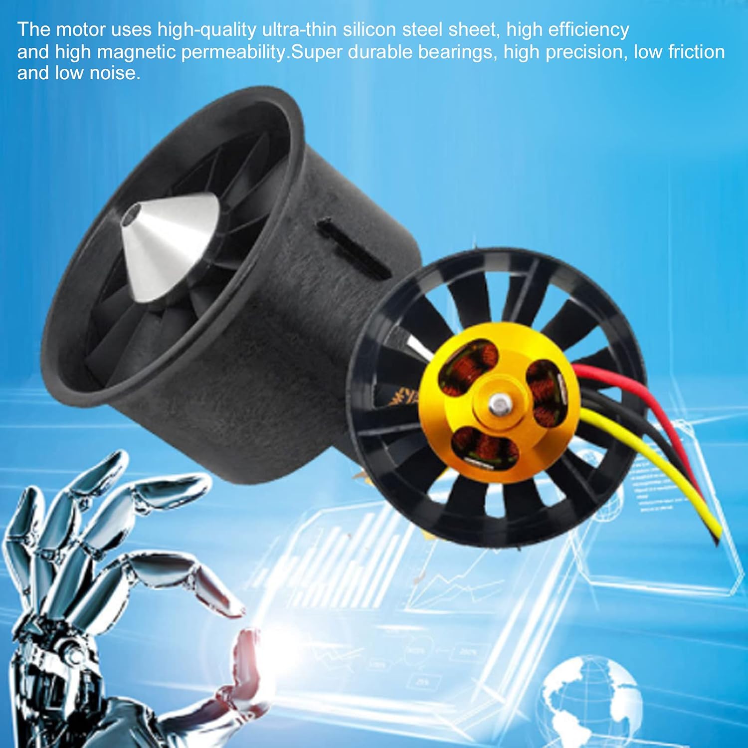 Composto di elaborazione di stampaggio completamente iniezione, ha un'elevata rigidità e tenacità. Fornisce un equilibrio dinamico della lama e un buon coordinamento tra i condotti dell'aria. È più stabile, ha superato buoni test aerodinamici e ha una potenza eccellente. Il motore fornisce potenza potente e alta efficienza per l'aereo RC, fornendo così un funzionamento ad alta velocità. Realizzato in materiale di con una lunga durata e una migliore efficienza di lavoro, è adatto per l'aereo RC.