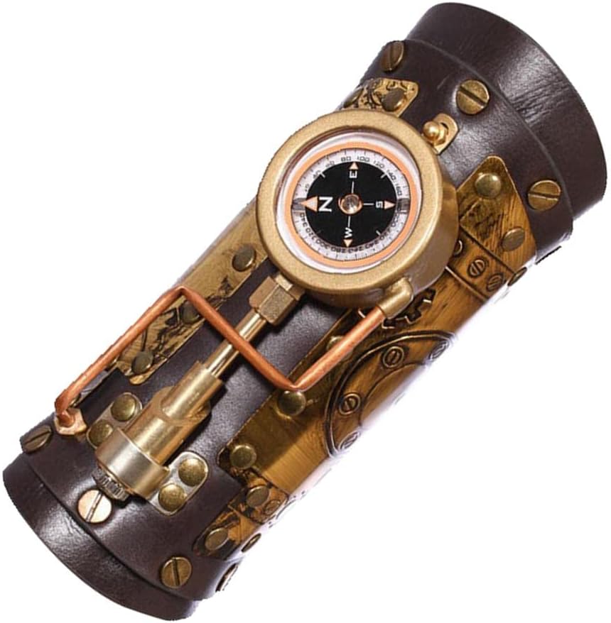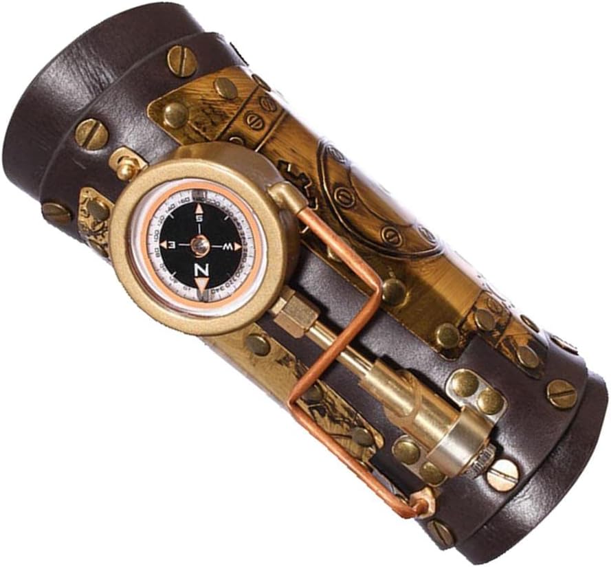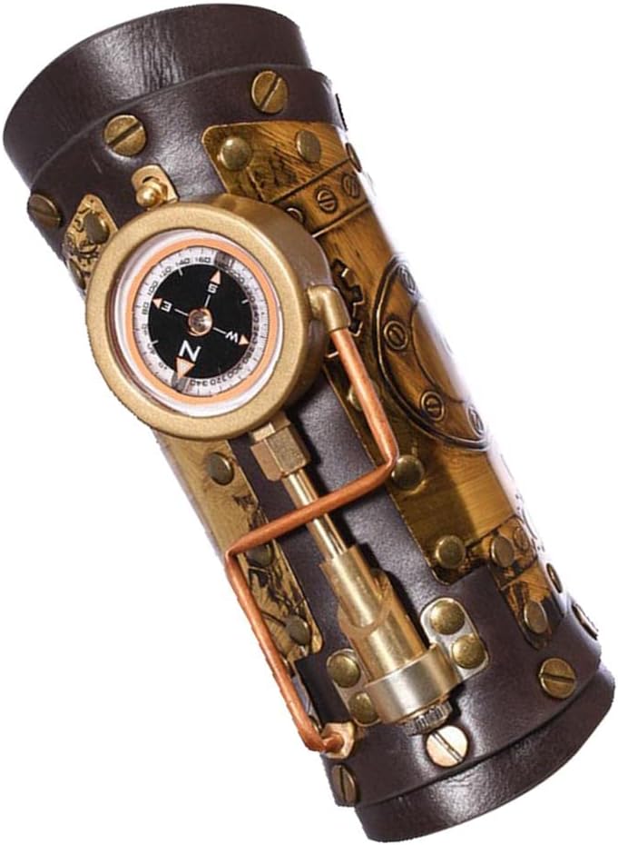 【Funzionale】Ideale per il cosplay o come aggiunta sorprendente al tuo guardaroba, questo braccialetto è un pezzo versatile che ti consente di mostrare il tuo amore per lo stile steampunk. 【Applicazione】Questo cinturino da polso steampunk marrone è ideale per chiunque cerchi un vestito da pirata in stile steampunk. 【Design】Stile steampunk vintage, tonalità marrone scuro, pieno di viti e ingranaggi, con una bussola resistente. Un LED si illumina nella parte inferiore, gira il pulsante e si accenderà. 【Materiale di qualità】Questa manica da braccio Steampunk è realizzata in materiale in pelle PU, leggero e facile da indossare. 【Universale】Taglia universale, 1 taglia adatta sia a donne che a uomini.