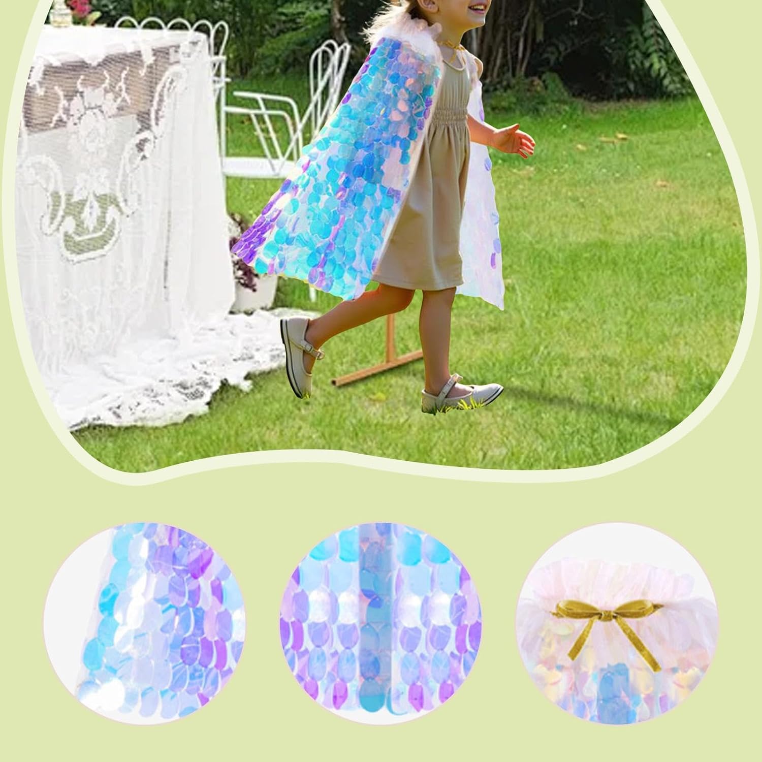 【Ideale per le vacanze】: il mantello da principessa per ragazze è perfetto per Halloween, Natale, feste di compleanno o come principessa sirena, aggiungendo un tocco di fantasia a qualsiasi occasione 【Materiale morbido e confortevole】: il costume da cosplay è realizzato in rete morbida, confortevole e leggera, che consente un comodo utilizzo per tutto il giorno 【Adatto alla maggior parte dei bambini】: il mantello in tulle presenta un design regolabile con una lunghezza di 70 cm/27,56 pollici, rendendolo adatto a bambini dai 3 ai 10 anni e versatile 【Costume da festa】: il mantello da principessa presenta un motivo a squame scintillanti, creando un bagliore accattivante per feste ed eventi 【Facilmente abbinabile】: accessori per costumi si sovrappongono facilmente a vestiti o abiti per una trasformazione immediata