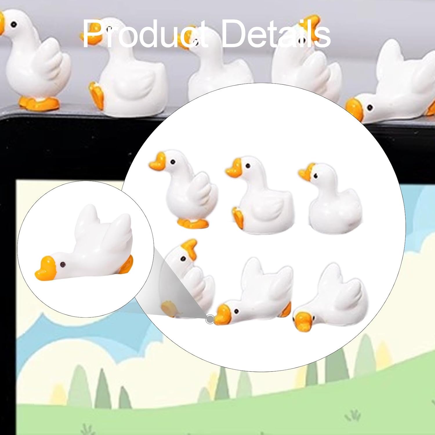【Decorazione versatile】Ideale per scrivanie da ufficio, decorazioni per la casa, micro paesaggi o come ornamenti creativi per cruscotti di auto in vari contesti. 【Design adorabile】Presenta un set di mini statuette di con espressioni da cartone animato affascinanti e vivaci, che aggiungono un tocco di tenerezza a qualsiasi spazio. 【Set completo】Include 6 statuette di di diverse dimensioni, ideali da collezionare o da regalare agli amanti degli animali. 【Materiale di alta qualità】Queste mini statuette di sono realizzate in resina di qualità per garantire durata e una superficie liscia, garantendo un divertimento duraturo. 【Posizionamento stabile】Ogni statuetta d'oca è progettata con un fondo piatto per un'esposizione sicura e stabile su scrivanie, scaffali o qualsiasi superficie.