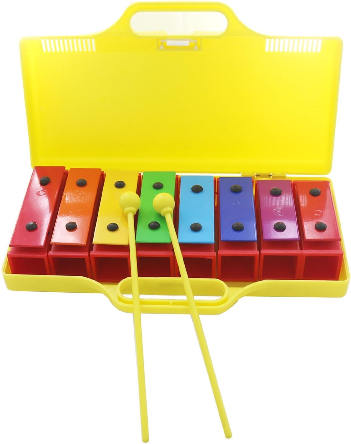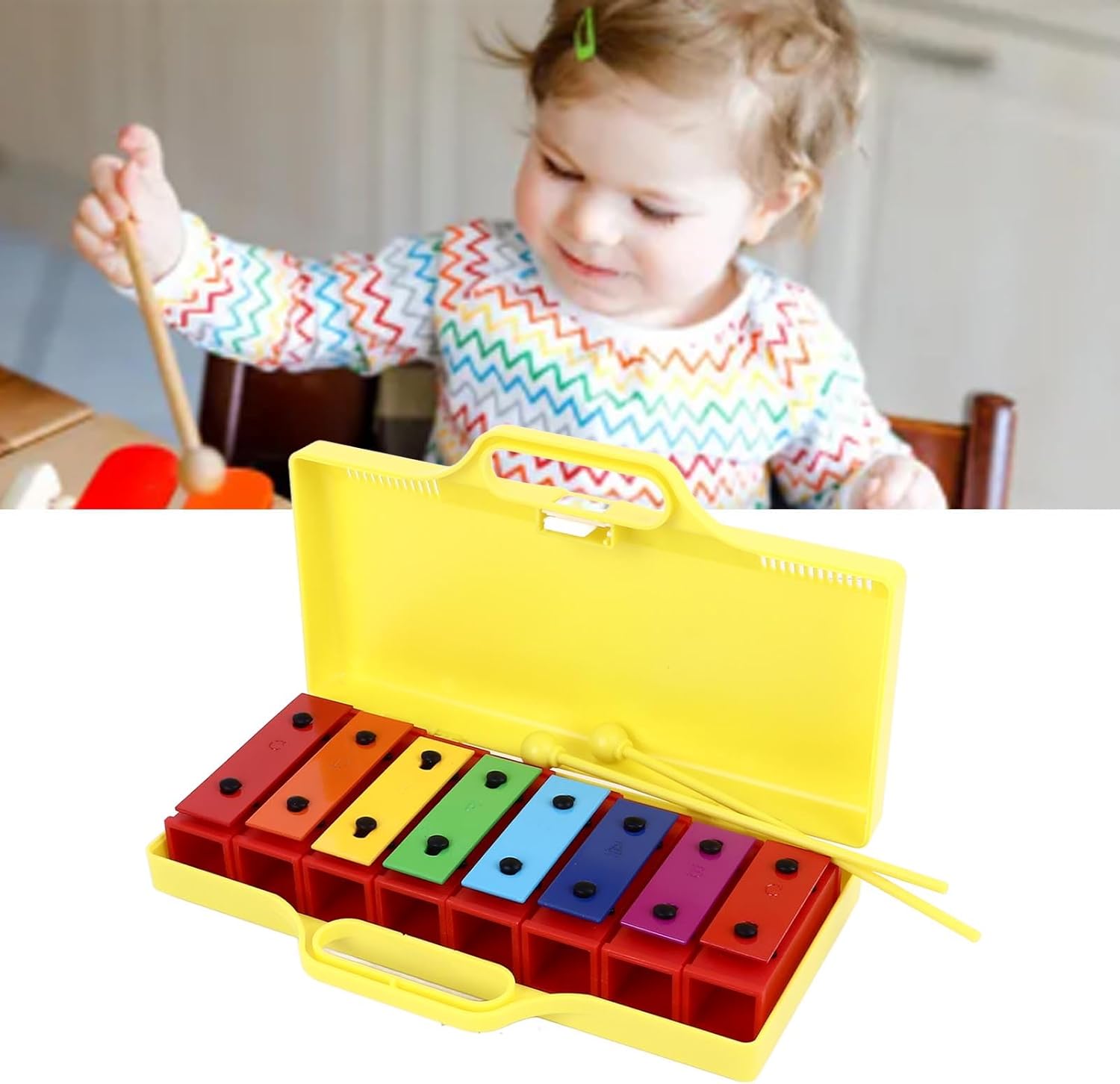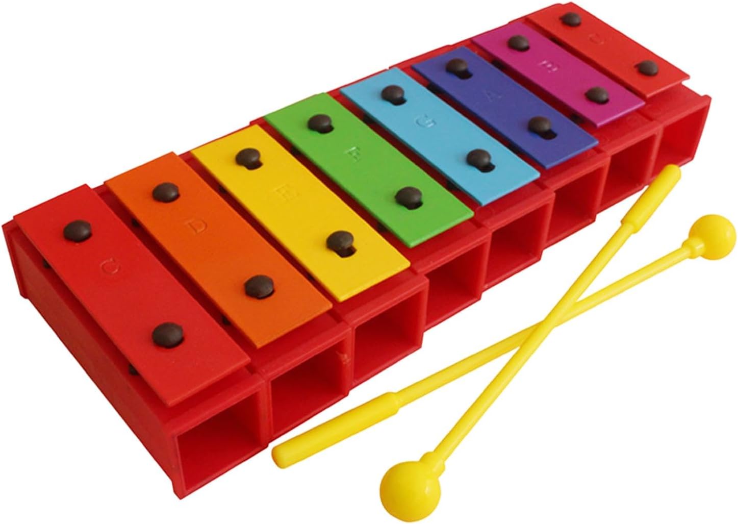 [Materiali di prima qualità per un suono superiore] Realizzato in alluminio di alta qualità e plastica resistente, questo xilofono produce suoni chiari e nitidi che affascinano le orecchie dei giovani. la struttura robusta garantisce un utilizzo duraturo, anche con i piccoli musicisti entusiasti. [Precisione sintonizzata per note accurate] Ogni nota su questo xilofono è accuratamente sintonizzata alla perfezione, garantendo un tono accurato e una qualità del suono armoniosa. i bambini possono suonare con sicurezza i loro brani preferiti e sviluppare adeguate abilità musicali. [Strumento musicale versatile] Questo xilofono a 8 note offre più toni e tasti, consentendo ai bambini di riprodurre una varietà di musica e melodie. i suoi colori vivaci e il design accattivante lo rendono per l'educazione musicale e il gioco creativo della prima infanzia. [Opzioni audio regolabili] Dotato di innovativi connettori audio, questo xilofono ti consente di regolare facilmente gli alti e i bassi per creare note e scale diverse. questa caratteristica unica migliora l'esplorazione musicale e l'apprendimento per i musicisti in crescita. [Risonanza migliorata per un suono più ricco] Il dispositivo di risonanza stabile integrato amplifica il timbro e il volume, offrendo prestazioni audio di qualità professionale. questa caratteristica rende lo strumento ideale sia per il gioco che per l'educazione musicale antica.