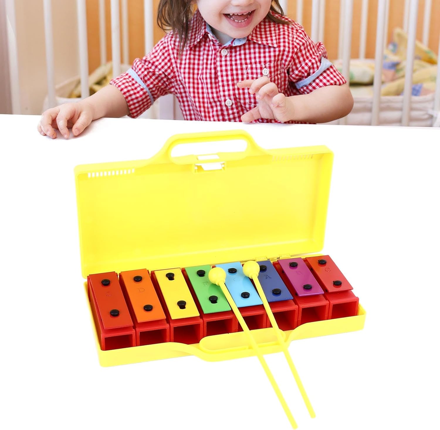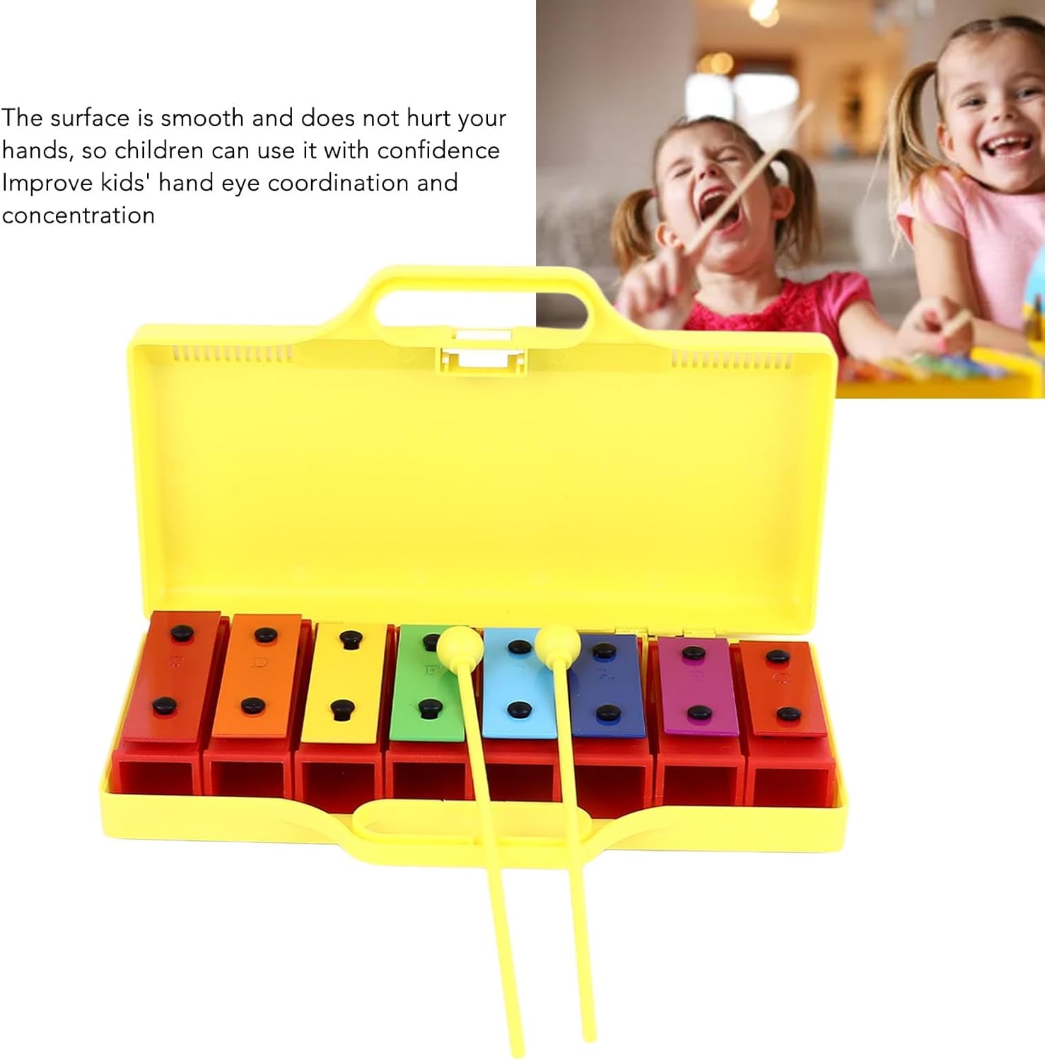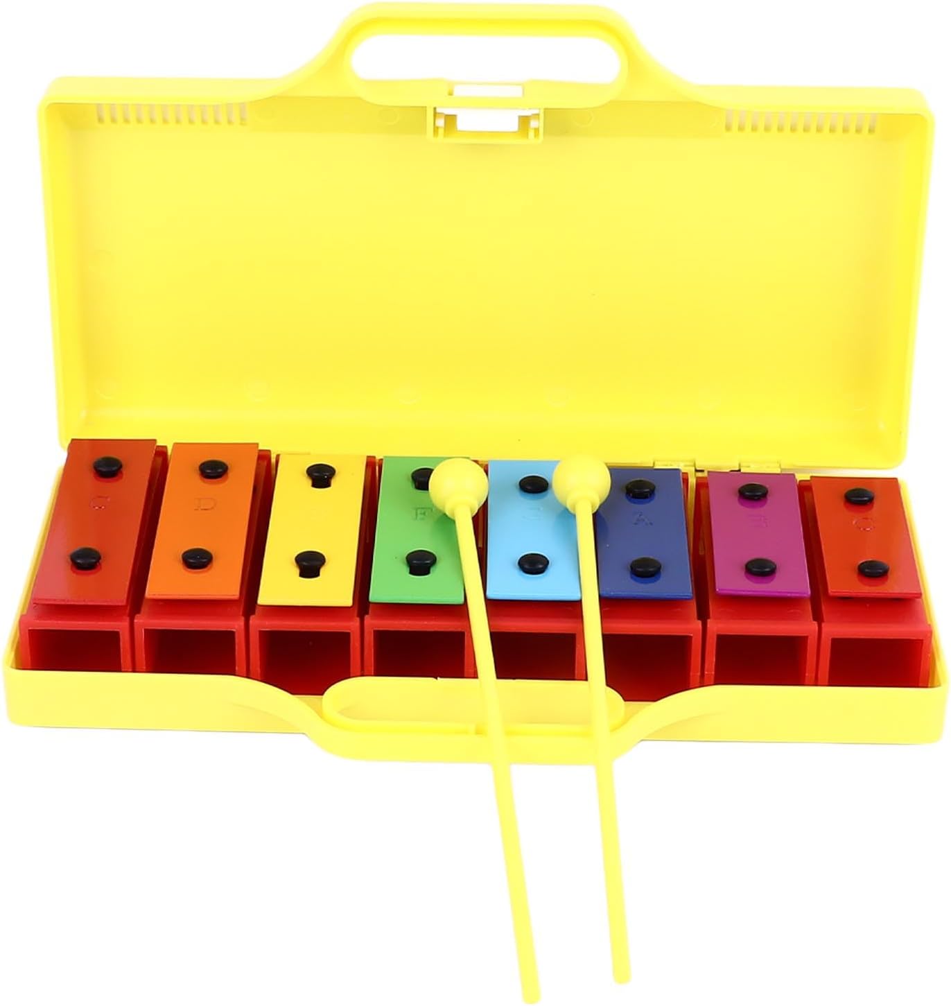 [Materiali di prima qualità per un suono superiore] Realizzato in alluminio di alta qualità e plastica resistente, questo xilofono produce suoni chiari e nitidi che affascinano le orecchie dei giovani. la struttura robusta garantisce un utilizzo duraturo, anche con i piccoli musicisti entusiasti. [Precisione sintonizzata per note accurate] Ogni nota su questo xilofono è accuratamente sintonizzata alla perfezione, garantendo un tono accurato e una qualità del suono armoniosa. i bambini possono suonare con sicurezza i loro brani preferiti e sviluppare adeguate abilità musicali. [Strumento musicale versatile] Questo xilofono a 8 note offre più toni e tasti, consentendo ai bambini di riprodurre una varietà di musica e melodie. i suoi colori vivaci e il design accattivante lo rendono per l'educazione musicale e il gioco creativo della prima infanzia. [Opzioni audio regolabili] Dotato di innovativi connettori audio, questo xilofono ti consente di regolare facilmente gli alti e i bassi per creare note e scale diverse. questa caratteristica unica migliora l'esplorazione musicale e l'apprendimento per i musicisti in crescita. [Risonanza migliorata per un suono più ricco] Il dispositivo di risonanza stabile integrato amplifica il timbro e il volume, offrendo prestazioni audio di qualità professionale. questa caratteristica rende lo strumento ideale sia per il gioco che per l'educazione musicale antica.