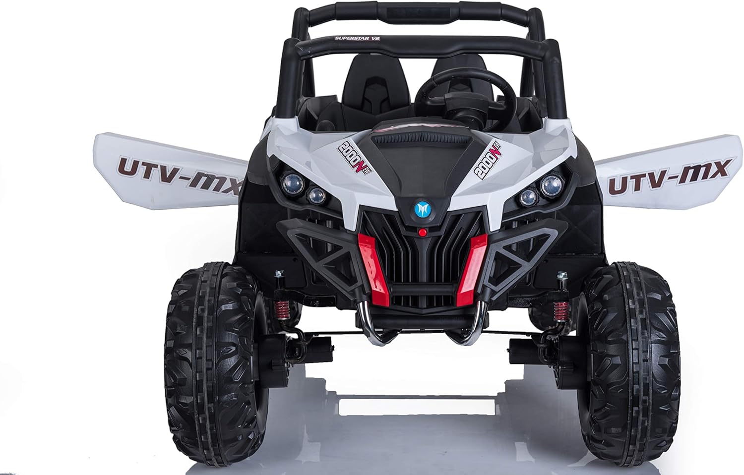 Quad Boogie 12 V con 2 motori, consigliato per bambini + 3 anni Dotato di telecomando per telecomando, volante multifunzionale, luci e suoni. Ha un ingresso per MP3, USB e microSD, inoltre dispone di indicatore di batteria scarica. Include apertura delle porte, sospensioni, batteria e caricabatterie.