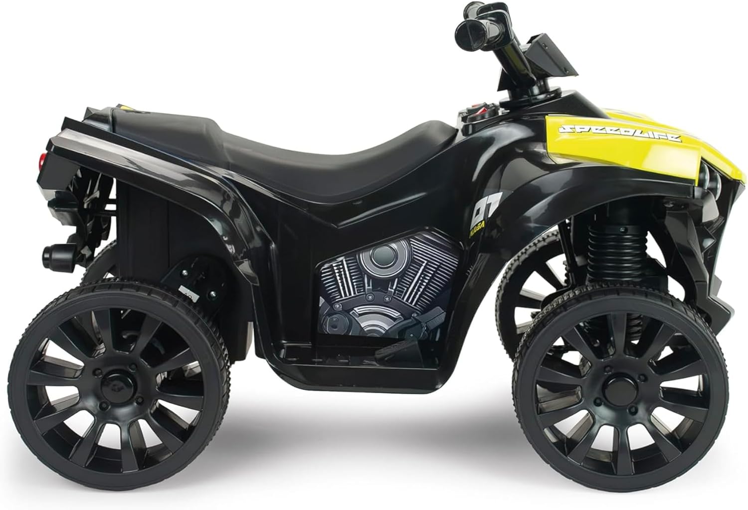 GUIDA SICURA E DIVERTENTE DAI 3 ANNI Progettato per bambini avventurosi dai 18 mesi, questo quad elettrico offre un’esperienza di guida realistica, sicura e stimolante per lo sviluppo motorio. FARO LED ANTERIORE PER UN GIOCO REALE La luce LED frontale aumenta la visibilità e il realismo del veicolo, permettendo di giocare anche in condizioni di scarsa illuminazione. SUONI E RETROMARCIA PER PIÙ INTERATTIVITÀ Dotato di suoni e musiche attivabili dal manubrio e di un comodo pulsante per la retromarcia, ideale per manovre facili e gioco attivo. FRENO AUTOMATICO PER LA MASSIMA SICUREZZA Il sistema di frenata elettrica si attiva quando si rilascia il pedale, garantendo un arresto sicuro e immediato in qualsiasi momento. ROBUSTO, COMPATTO E CERTIFICATO CE Supporta fino a 25 kg, misura 68 x 41 x 46 cm con sedile a 30 cm di altezza. Costruito secondo le normative europee di sicurezza per bambini.
