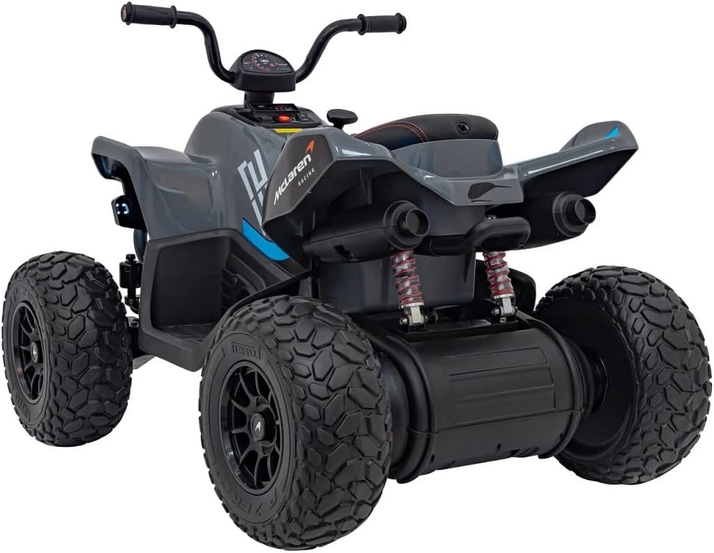 Motore 4 x 35 W, Batteria 12 V10 Ah Telecomando Telecomando 2,4 GHz, 3 velocità. Età consigliata: da 3 anni a 8 anni. Pulsante di sicurezza STOP, ruote ruote ruote in schiuma EVA, diametro 31 cm, larghezza 14 cm, seduta in ecopelle. Dimensioni del veicolo lunghezza 109 cm, larghezza 69 cm, altezza 75 cm. Peso quad 19 kg. Musica preregistrata e porta USB.
