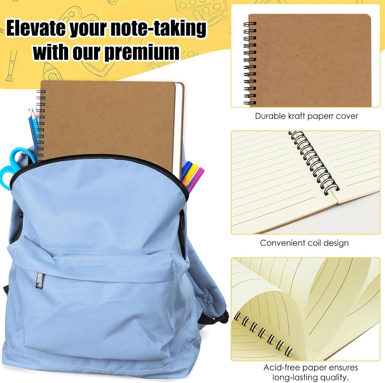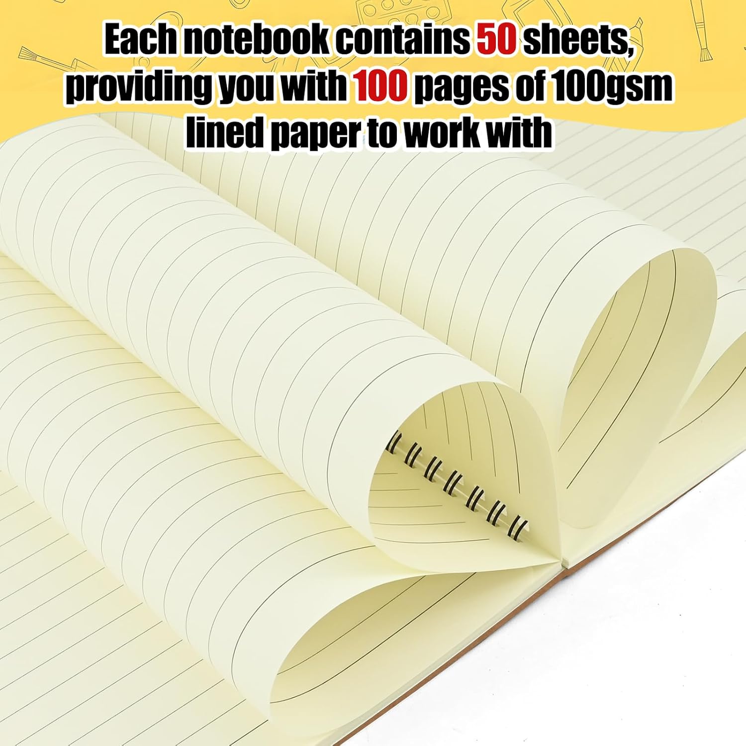 DESIGN PORTATILE: I nostri quaderni a spirale A4 sono disponibili in un set da 4, ciascuno dei quali misura 29 x 21 cm, il che li rende facili da trasportare per annotare idee mentre sei in movimento. Mettili facilmente nella borsa o nello zaino, aggiungendo comodità alla tua routine quotidiana. Costruzione durevole: con un robusto design a doppio filo, i nostri quaderni A4 assicurano che le pagine rimangano saldamente rilegate, offrendo un'esperienza di scrittura fluida senza intoppi. Realizzati con copertine in carta kraft nera di alta qualità, emanano un fascino elegante e senza tempo. CARTA SPESSA DI QUALITÀ: Concediti la lussuosa esperienza di scrittura offerta dal nostro taccuino con copertina rigida a righe "Soft Beige", pagine interne realizzate con carta Daulfin di alta qualità da 100 g/m². Progettate appositamente per non affaticare la vista e resistenti all'inchiostro, queste pagine premium garantiscono comfort di scrittura e longevità ottimali, elevando il modo in cui prendi appunti a un nuovo livello di soddisfazione. Ottimizzato per l'organizzazione: con 50 fogli/100 pagine per taccuino, il nostro design con carta a righe favorisce la presa di appunti ordinata, perfetta per il lavoro, lo studio o le attività creative. Migliora la produttività e la chiarezza della tua scrittura con il nostro layout a linee orizzontali. Utilizzo versatile: dalle riunioni di lavoro alle riflessioni personali, i nostri quaderni a spirale soddisfano esigenze diverse. Che si tratti di annotare verbali di riunioni, brainstorming creativi o appunti di studio, questi quaderni A4 sono perfetti in qualsiasi ambiente.