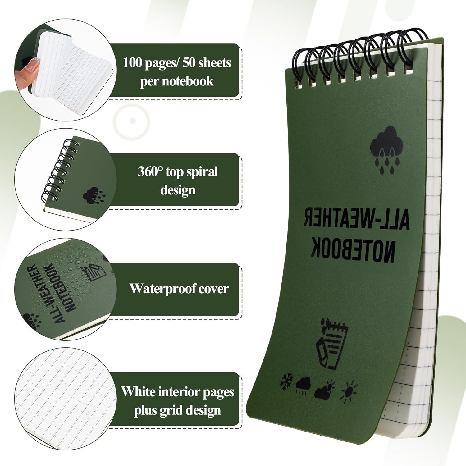 Quaderni impermeabili, confezione da 4, 3" x 5", blocco note della polizia per tutte le stagioni, mini quaderni sciolti con pagine a righe, mini blocco note a spirale, 50 fogli per taccuino per esterni,