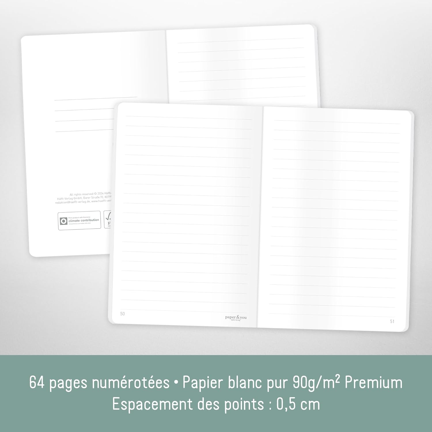 ISTRUZIONI SEMPRE A MANO - Quaderno compatto a righe di Häfft per annotare idee spontanee, cose da fare o pensieri creativi! Dimensioni: 10,6 x 16 cm PERFETTO PER I VIAGGI - La copertina morbida e flessibile si adatta perfettamente alle tasche dei pantaloni o alle mani e gli angoli arrotondati proteggono il taccuino dalle orecchie degli asinelli. LINEA CLASSICA - 64 pagine numerate per la scrittura strutturata, la pianificazione, la creazione di elenchi o come mini diario in un pratico formato tascabile A6+. SOSTENIBILE E RISPETTOSA DEL CLIMA Crea con la coscienza pulita: per amore dell'ambiente, la nostra carta premium da 90 g/m² è certificata FSC (FSC N004440) e stampata nel rispetto del clima. LOCALE E RESPONSABILE - Tutti i nostri articoli sono progettati con amore a Monaco e stampati esclusivamente in Germania o nei paesi limitrofi. Pertanto, i percorsi di consegna sono brevi e contribuiscono in modo significativo al