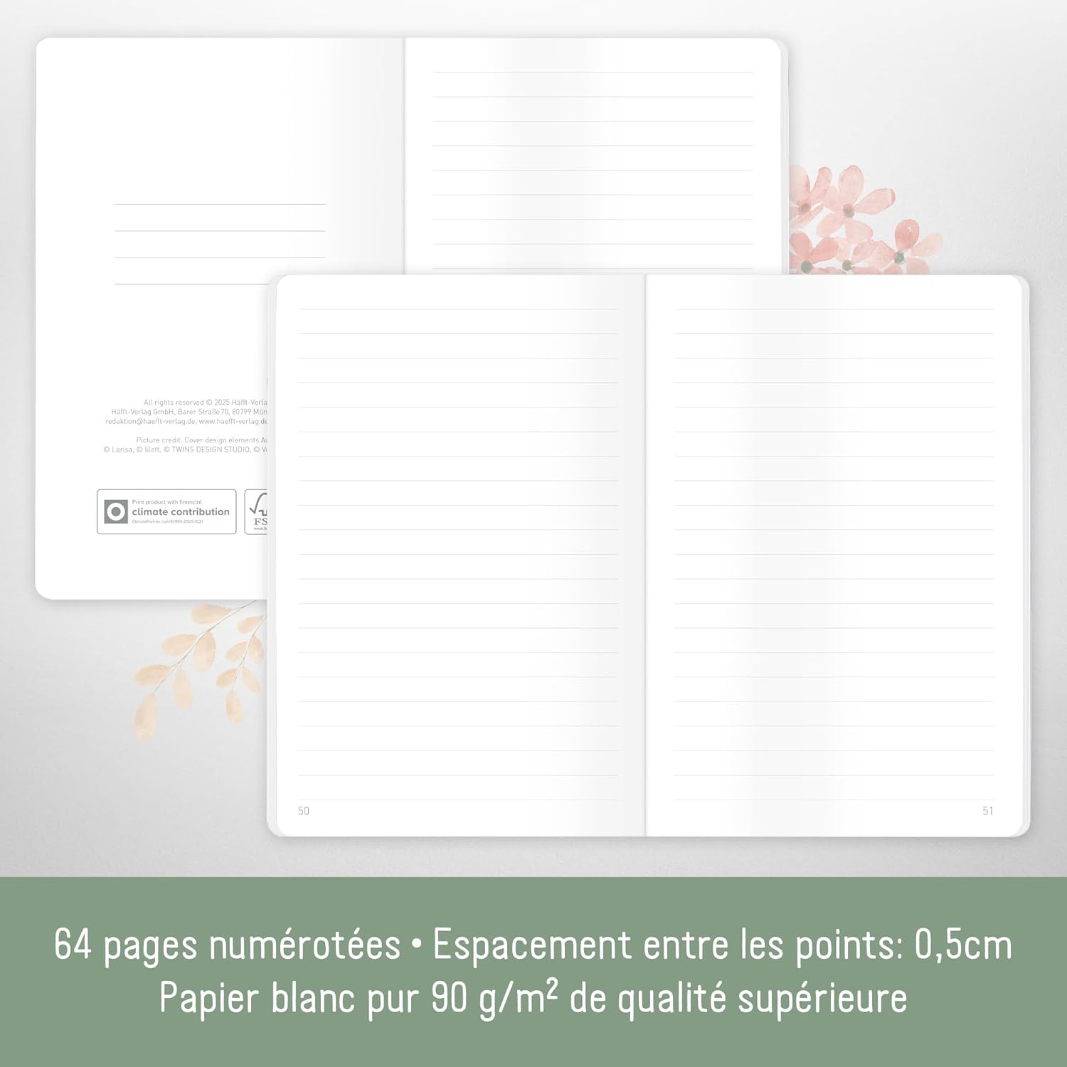 APPUNTI SEMPRE A PORTATA DI MANO - Quaderno compatto a righe della Häfft-Verlag per annotare idee spontanee, cose da fare o pensieri creativi! Dimensioni: 10,6 x 16 cm PERFETTO PER I VIAGGI - La copertina morbida e flessibile è perfetta per le tasche dei pantaloni o per le mani e gli angoli arrotondati proteggono il taccuino dalle orecchie degli asinelli. CLASSIC A RIGHE - 64 pagine numerate per la scrittura strutturata, la pianificazione, la creazione di elenchi o come mini diario in un pratico formato tascabile A6+. SOSTENIBILE E RISPETTOSA DEL CLIMA Sii creativo con la coscienza pulita: per amore dell'ambiente, la nostra carta premium da 90 g/m² è certificata FSC (FSC N004440) e stampata in modo rispettoso del clima. LOCALE E RESPONSABILE - Tutti i nostri articoli sono progettati con amore a Monaco e stampati esclusivamente in Germania o nei paesi limitrofi. Ciò mantiene brevi i percorsi di consegna e fornisce anche un importante contributo alla protezione del clima.