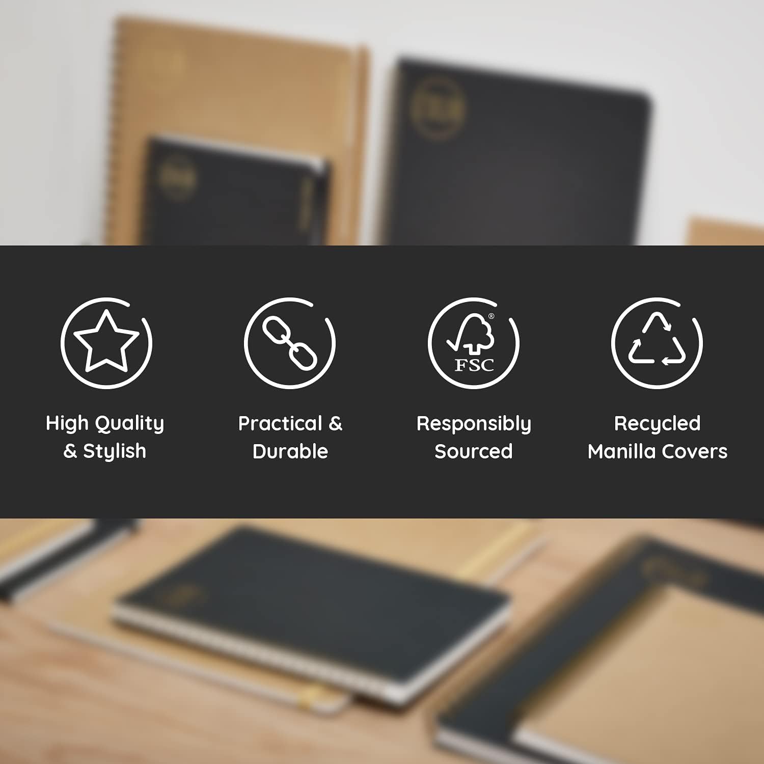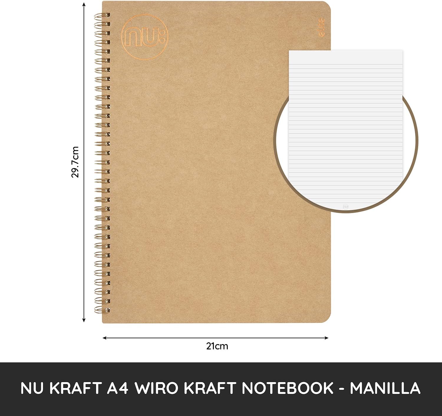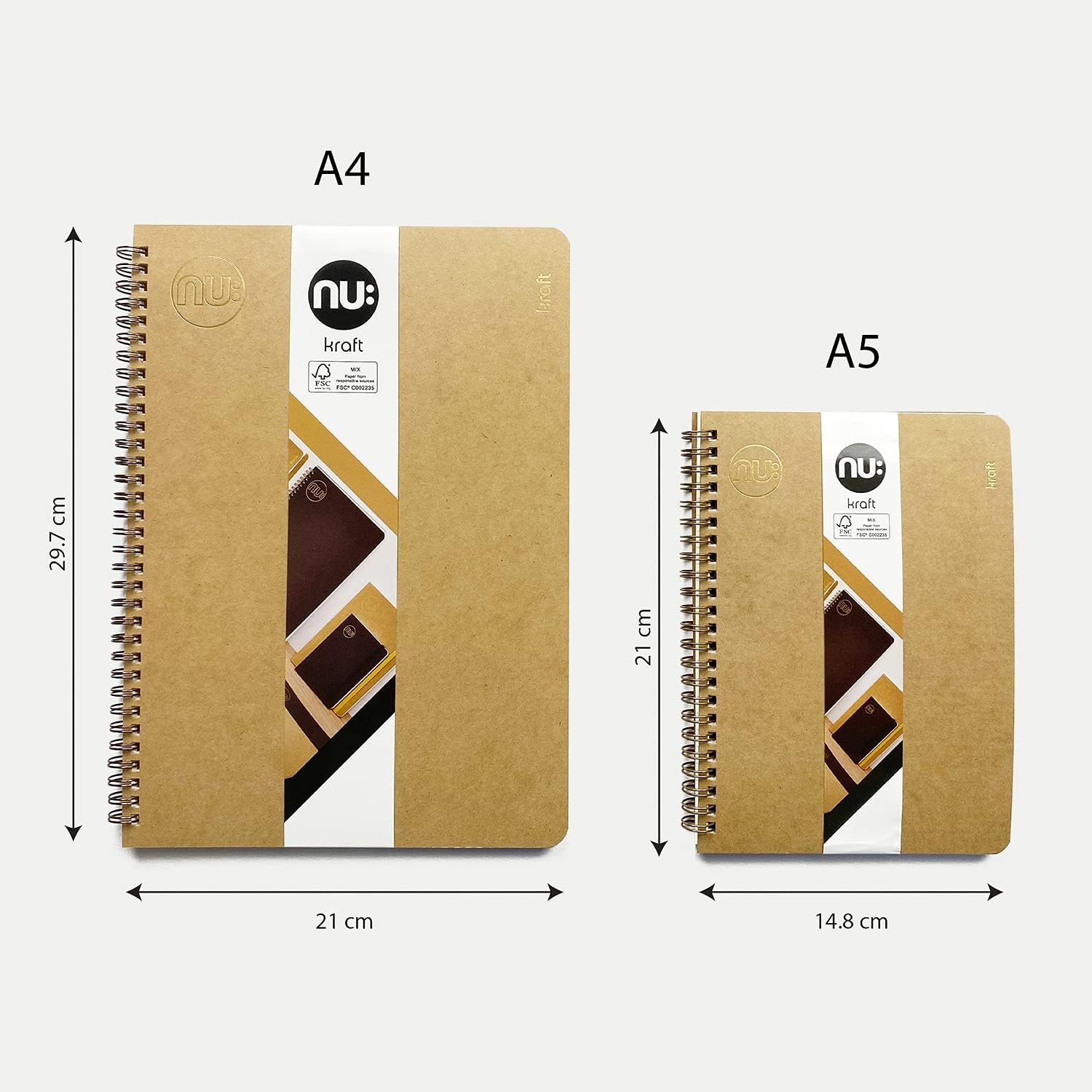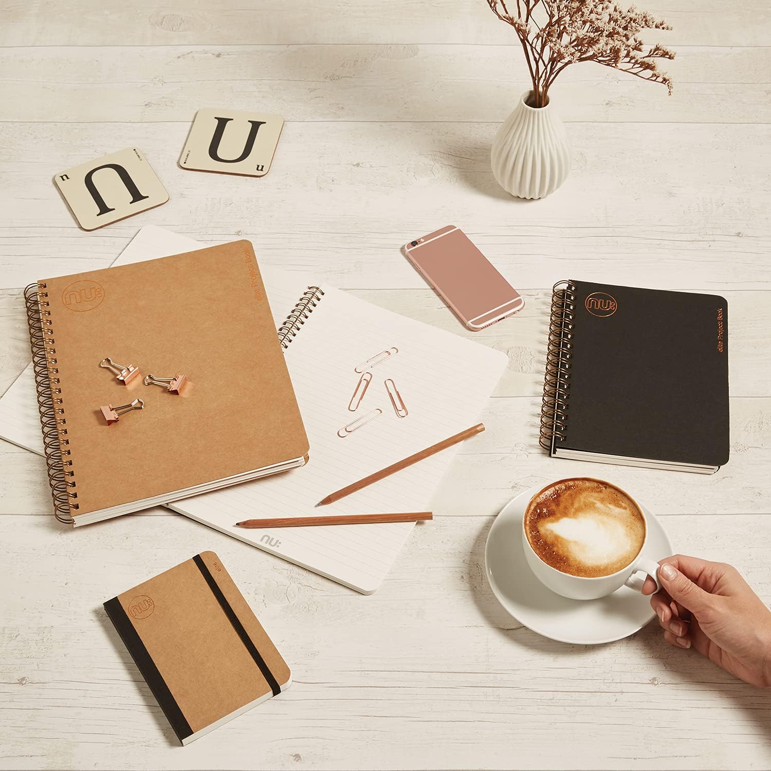 Elegante copertina Kraft. 160 pagine. Carta a righe color crema da 100 g/m². Lamiere microforate. Doppia spirale in bronzo.