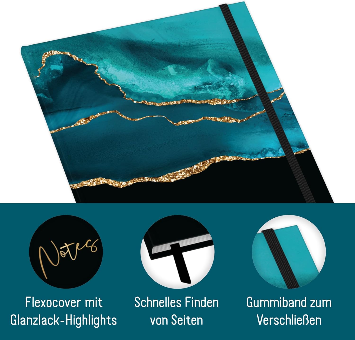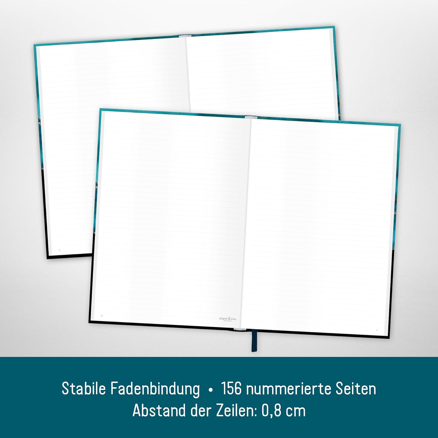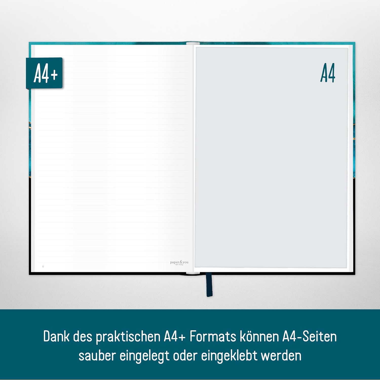 GRANDE TACCUINO A RIGHE A4+ - Dalla Häfft-Verlag con 156 pagine numerate (78 fogli), nastro da lettura ed elastico per appunti di ogni tipo, cose da fare, obiettivi, piani e pensieri - sempre con te e a portata di mano quando il turchese brillante annuncia! SOSTENIBILE E RISPETTOSA DEL CLIMA - Prendendo appunti tanto quanto il turchese brillante ama l'ambiente, la nostra carta premium da 100 g/m² è certificata FSC (FSC N004440) e stampata in modo rispettoso del clima. UN COMPAGNO FEDELE - La copertina flexo, flessibile e resistente, combina le migliori caratteristiche della copertina rigida e della copertina morbida, è resistente agli schizzi e cancellabile. L'intricata rilegatura a filo tiene insieme le pagine in modo sicuro. FAI UN REGALO A TE STESSO E AGLI ALTRI - Ottimo per te stesso o come regalo carino - quindi dimentica lo smartphone e prendi delle penne! Perché gli studi hanno dimostrato che la scrittura a mano è più creativa e rimane nella memoria più a lungo. DIVERSI DISEGNI - Ce n'è per tutti i gusti e bello da collezionare: quaderno nel generoso formato A4+ (formato esterno: 30,8 x 22,1 cm, parte interna: 30,5 x 21,5 cm), che consente di inserire fogli A4 senza piegarli.