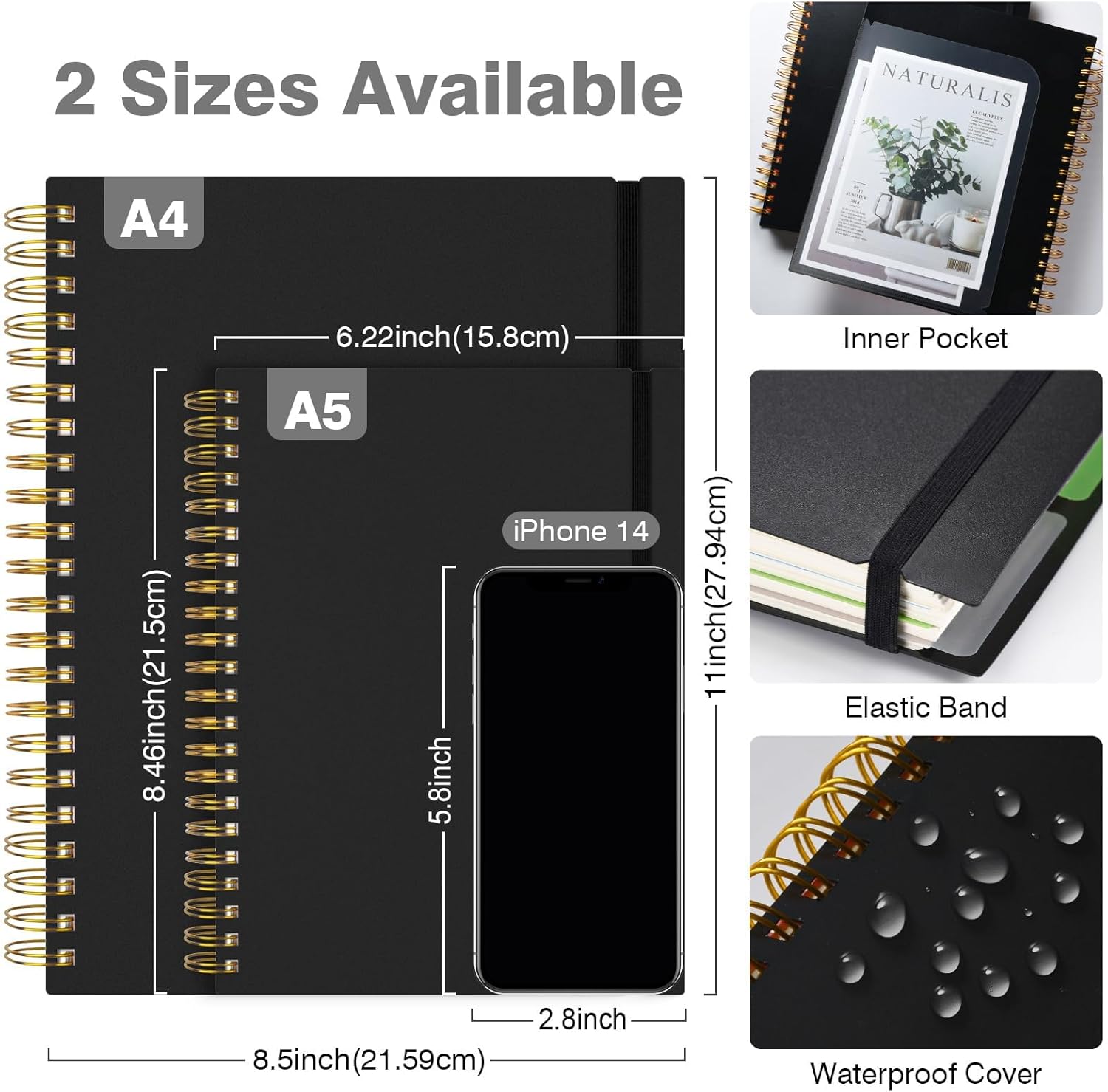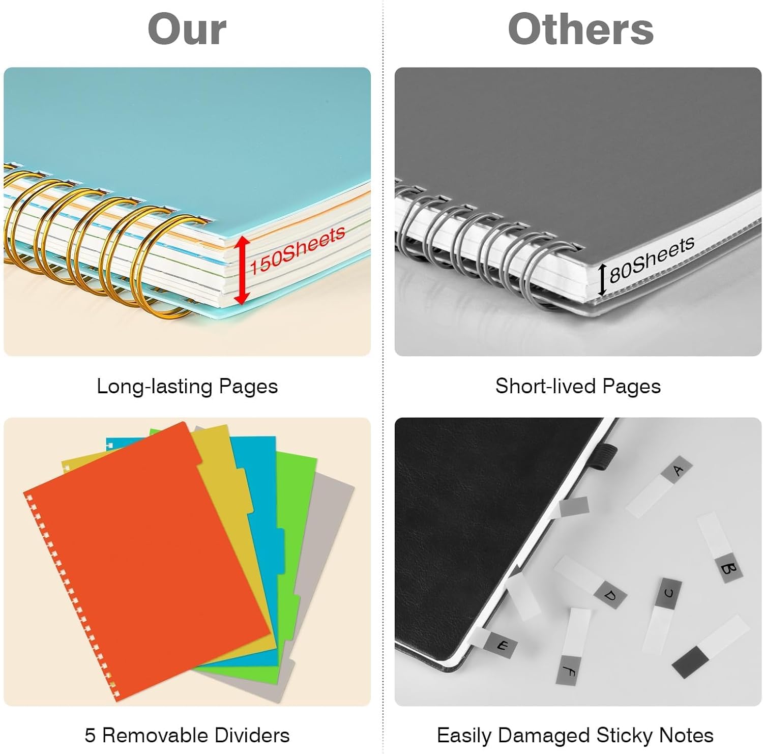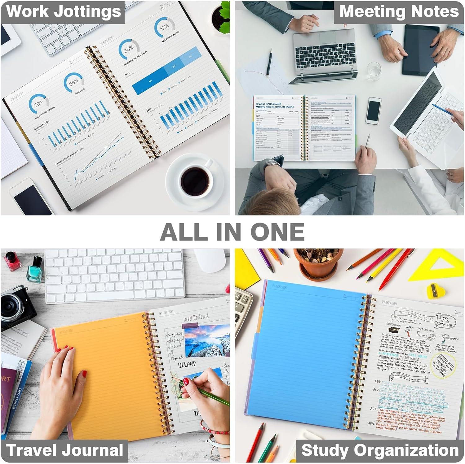 【Un quaderno per sostituirne 5】Il quaderno OMEYA con 5 divisori colorati rimovibili e 10 etichette adesive. Grazie ai divisori rimovibili, organizza il notebook in 5 sezioni distinte per una soluzione tutto in uno. Mentre altri portano 5 quaderni separati, a te ne servirà solo uno per centralizzare i compiti scolastici, i fogli di lavoro professionali e gli appunti aziendali. Le 10 etichette aggiuntive semplificano la classificazione e la ricerca rapida. 【Diario spesso da 300 pagine】 Questo quaderno a spirale misura 6,22 x 8,46 pollici (formato A5 standard) con sentenza accademica. Contiene 150 fogli (300 pagine) che offrono ampio spazio per annotare idee, lezioni o progetti. La sua copertura flessibile in PVC impermeabile resiste alle macchie d'olio ed è facile da pulire. 【Carta premium da 100 g/m² senza sudore】 La carta a righe più spessa della media (7 mm) elimina la sudorazione dell'inchiostro e le immagini fantasma per una protezione ottimale degli occhi. L'intestazione della pagina fronte-retro ti consente di indicare il giorno (“N. ___ Data ___”) e strutturare le tue note. Ideale per tenere traccia di attività ed eventi. 【Rilegatura a doppia spirale ultraresistente】 La robusta spirale dorata impedisce alle pagine di staccarsi. Una chiusura elastica mantiene il taccuino ben chiuso, mentre una pratica tasca frontale può riporre accessori e documenti sciolti. Un design accurato per un'esperienza utente piacevole! 【Uso versatile e idee regalo】 Disponibile in nero, viola, rosa e blu, questo taccuino è adatto a studenti, professionisti e famiglie. Usalo come diario, diario di viaggio, quaderno di lettura, lista di cose da fare... Un regalo ideale per bambini, amici o colleghi!