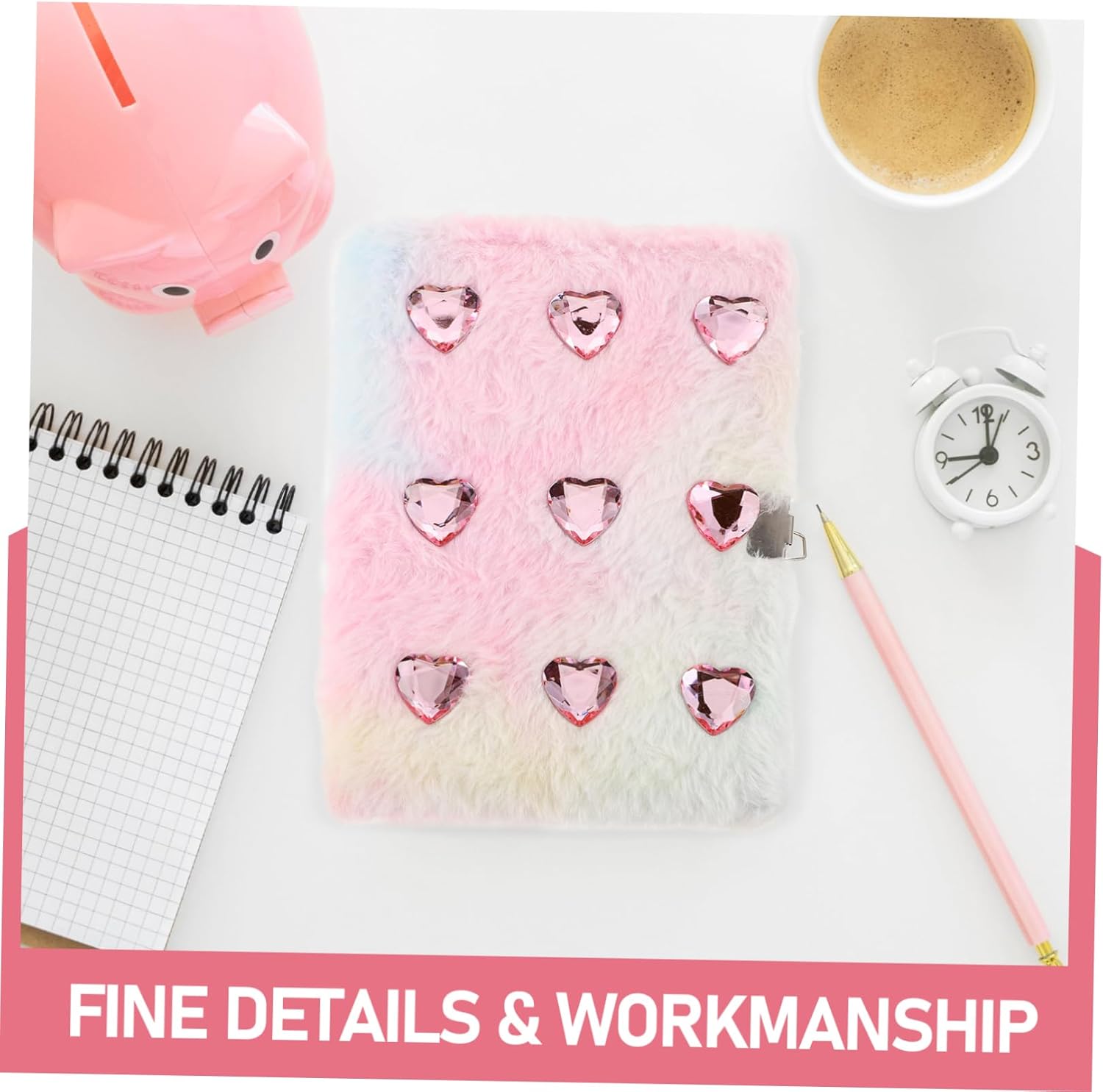 IDEALE PER LE RAGAZZE: questo quaderno carino e soffice è un oggetto ideale per le ragazze, offrendo un modo divertente ed elegante per registrare le tue attività e i tuoi pensieri quotidiani. Quaderno in peluche, diario con serratura Aspetto sorprendente: la copertina visivamente accattivante di questo diario è progettata per attirare l'attenzione e fare una dichiarazione. Diario di peluche, diario segreto, diario di peluche di cancelleria Diamanti scintillanti: questo diario aggiunge un tocco di glamour e lusso alla tua routine di diario, schizzo di taccuino di peluche, diario di peluche, diario segreto Attraente copertina sfumata: la copertina sfumata visivamente accattivante di questo diario è progettata per attirare l'attenzione e fare una dichiarazione set diario con serratura per ragazze, diario segreto di peluche Multiuso: ideale per studenti e appassionati di diari Questo taccuino multifunzionale è ideale per l'uso quotidiano, scrivere rapporti di viaggio e registrare ricordi diario di peluche segreto diario segreto di peluche