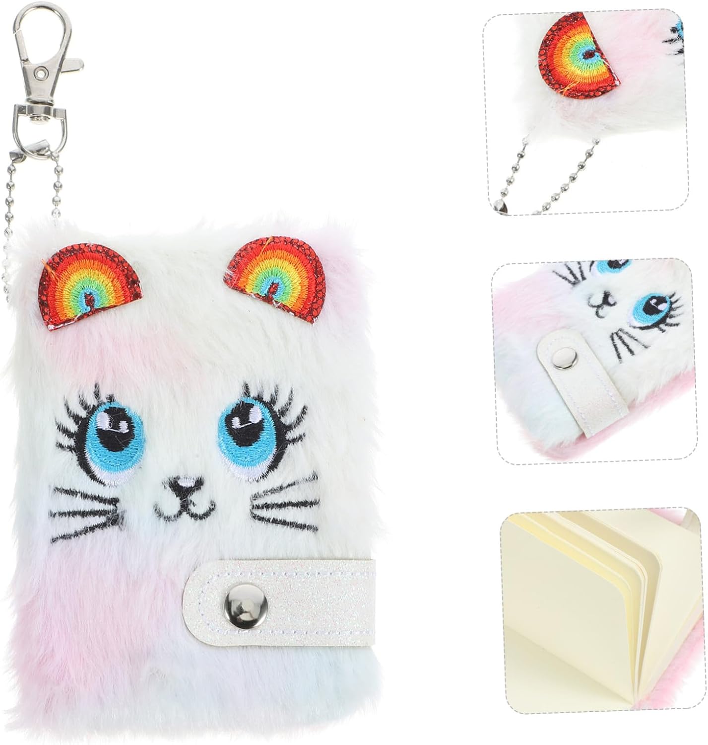 Quaderno a cartoni animati: realizzato con materiali sicuri, con superficie liscia e buona sensazione al tatto, quaderno a cartoni animati per ragazze Design portatile con portachiavi attaccato: porta il quaderno di peluche comodamente ovunque, grazie al suo design portatile e portachiavi attaccato, adorabile quaderno, graziosi quaderni Diario per ragazze: un simpatico quaderno per ragazze che amano la cancelleria. È dotato di un piccolo diario in peluche con pagine interne bianche, perfetto per annotare appunti e schizzi. È disponibile in un colore alla moda. Blocco note diario Portachiavi mini libro: il taccuino in peluche è elegantemente progettato in un bel colore, aggiungendo un tocco di eleganza e femminilità, mini taccuino Adatto per schizzi e prendere appunti: versatile e pratico, il taccuino in peluche è adatto sia per schizzi che per prendere appunti, taccuino carino, diario per ragazze