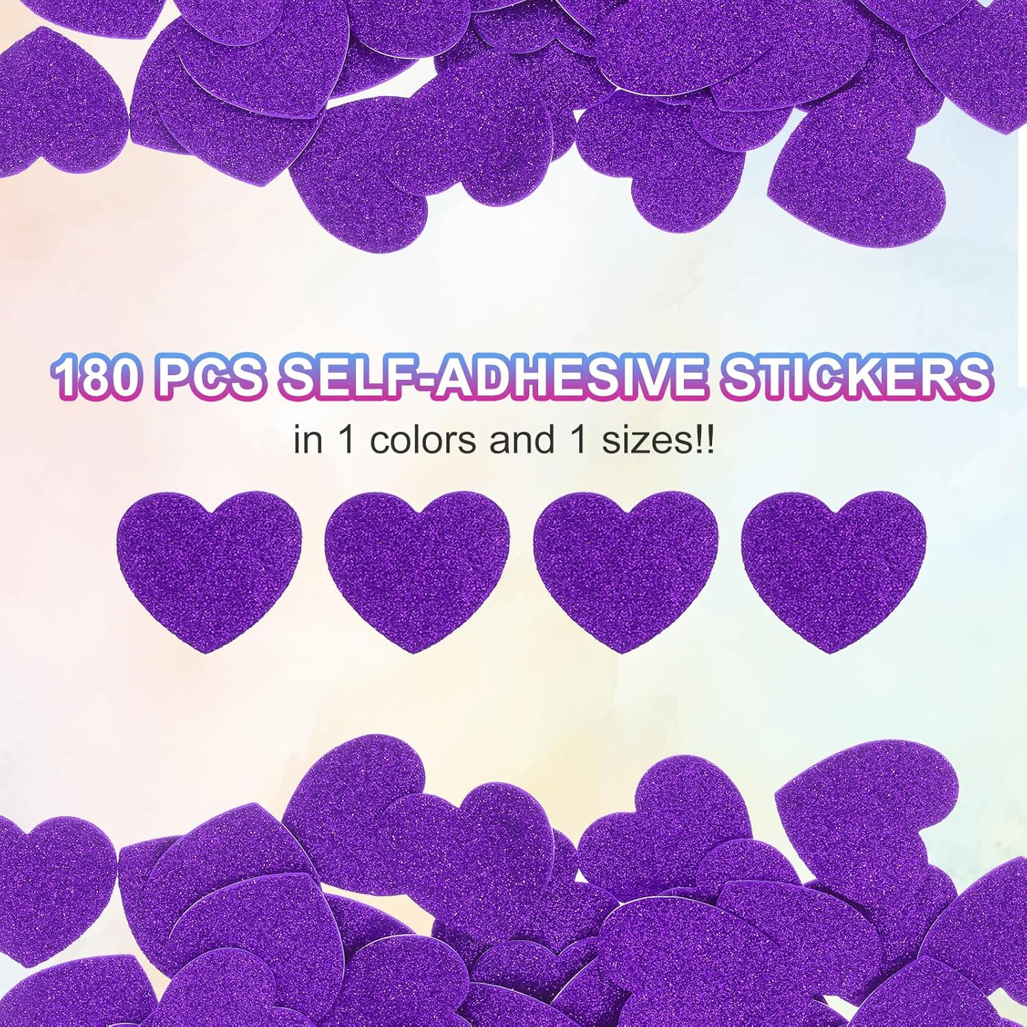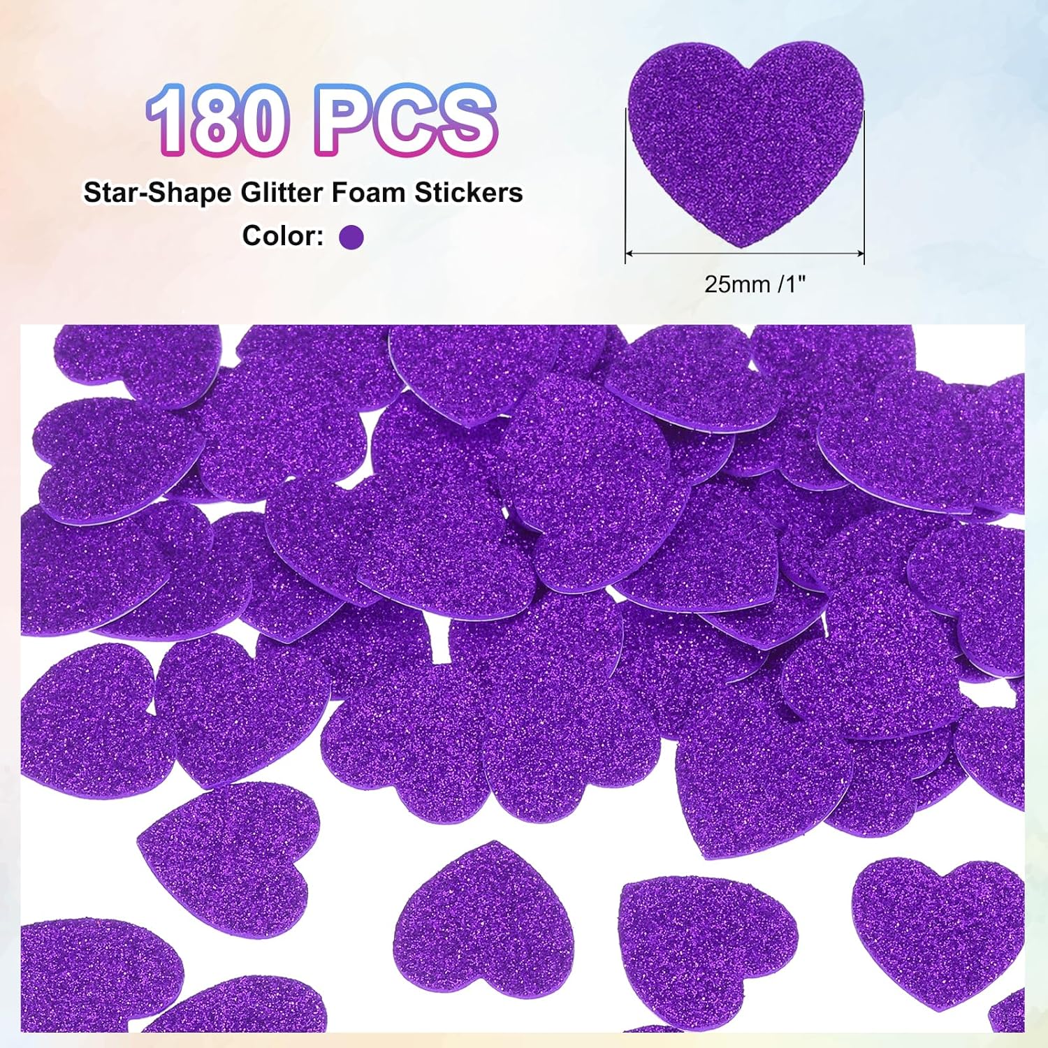 Gli adesivi in schiuma glitterati a forma di cuore sono adesivi in schiuma con una forma a cuore e un effetto scintillante, solitamente utilizzati per decorazione e lavori fai-da-te. Durante San Valentino, Natale e altre festività, questi adesivi possono essere usati per decorare stanze, finestre, pareti, ecc., creando un'atmosfera romantica e accogliente. Colore: Viola; Dimensioni Totali: 25 x 25 mm / 1 x 1 pollice; Forma: A Cuore Materiali in schiuma PVC e EVA, morbidi al tatto. Gli adesivi in schiuma con glitter hanno un effetto tridimensionale significativo, che aumenta la profondità e l'interesse della decorazione; Questi adesivi in schiuma per artigianato sono realizzati con materiali di buona qualità e la superficie è ricoperta da uno strato sottile di glitter, non solo morbido al tatto ma anche duraturo nella lucentezza e non facile da staccare. Questi cuori in schiuma sono realizzati in materiale EVA con forte adesività, resistenti e riutilizzabili, morbidi per l'artigianato, leggeri e autoadesivi, e possono essere attaccati ovunque si desideri. Prima di applicare, assicurarsi che la superficie sia pulita e liscia per migliorare l'effetto dell'adesione. La superficie è ricoperta da polvere dorata scintillante, che potrebbe perdere parzialmente polvere, un fenomeno normale che non influisce sull'aspetto e sull'utilizzo.