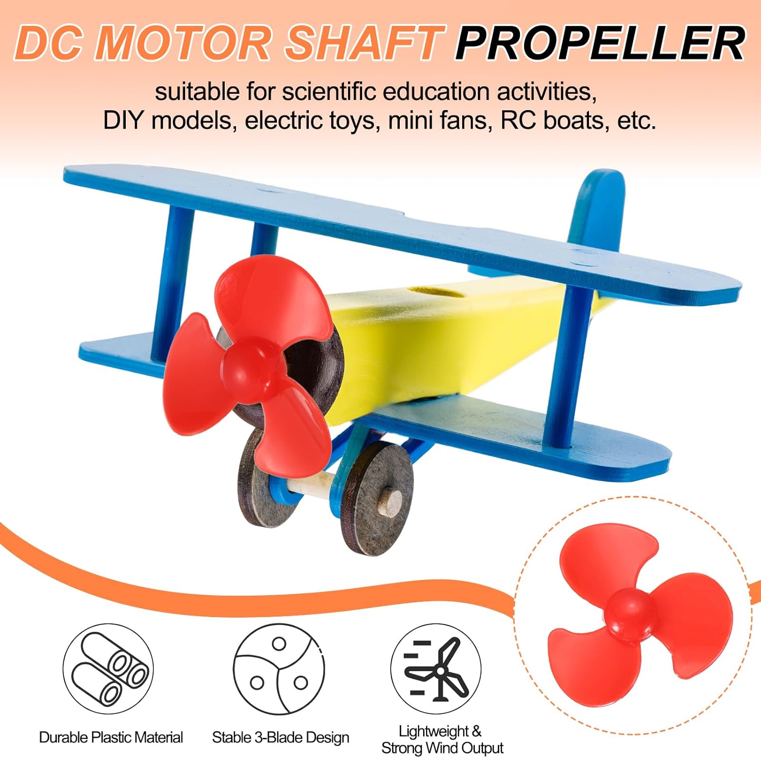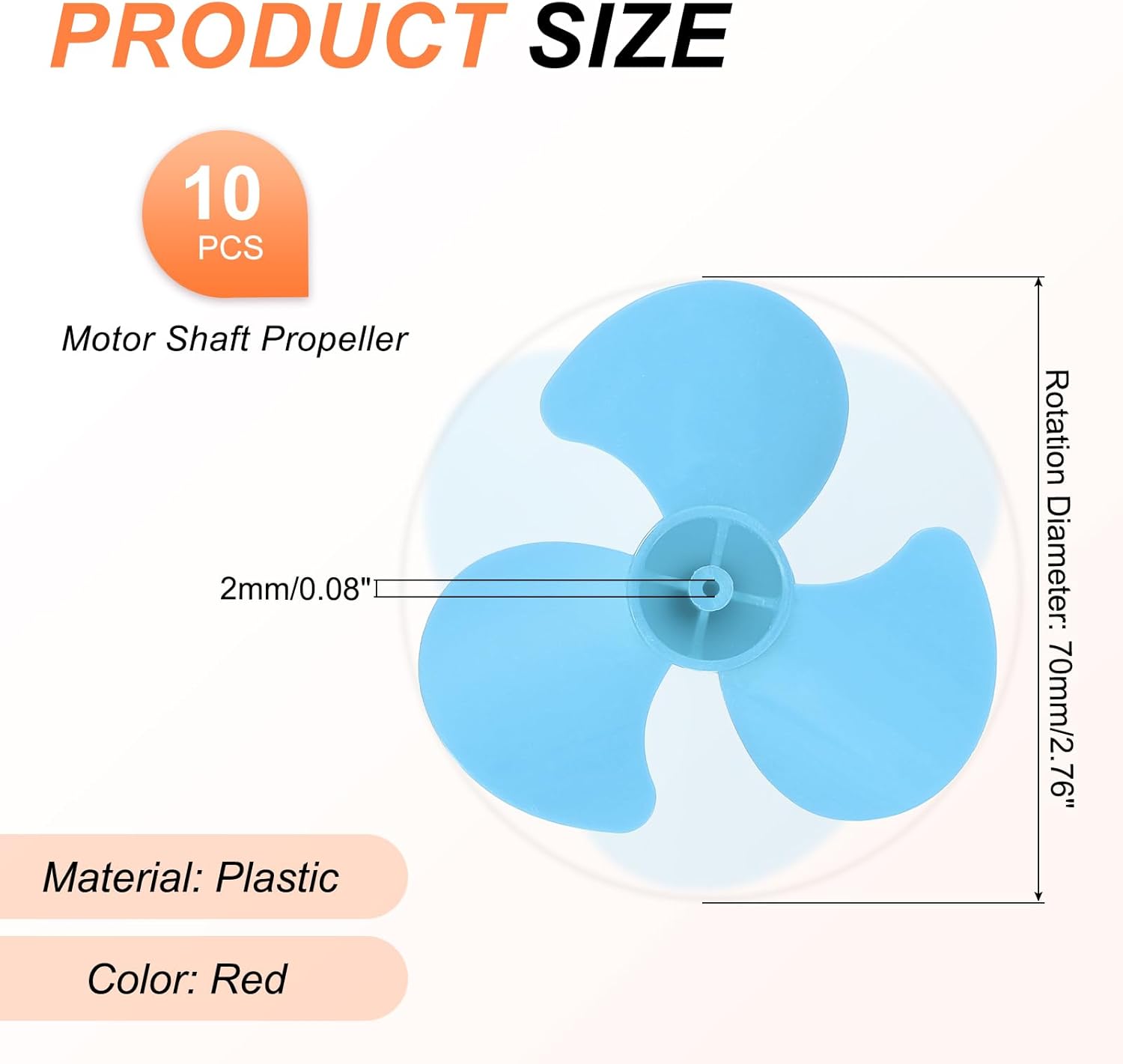 Questa elica a forma di ventaglio è un accessorio progettato per piccoli modelli come modelli navali e modelli di aerei. Realizzata in materiale plastico resistente, duraturo e resistente all'usura. È adatta per attività di educazione scientifica, modelli fai da te, giocattoli elettrici, mini ventilatori, barche RC, ed è una buona scelta per gli appassionati di modellismo. Diametro Elica:70mm/2.76pollici; Diametro Albero:2mm/0.08pollici; Colore: Blu; Confezione da 10 pezzi Elica con Albero da 2mm Materiale Plastico Resistente: Le nostre eliche sono realizzate con cura in materiale plastico, che non solo riduce notevolmente il peso complessivo, ma garantisce anche una forte spinta del vento, è resistente e duraturo, e può essere riutilizzato a lungo. Design a Tre Pale: L'elica a tre pale ha una struttura stabile, offrendoti una spinta potente e un'esperienza di funzionamento fluida. È di piccole dimensioni e non occupa spazio. È facile da trasportare e da installare. Montaggio Facile: Non sono necessari strumenti speciali, basta installarle sul modello. Si prega di consentire una differenza di misurazione di ±0.05mm a causa della misurazione manuale.