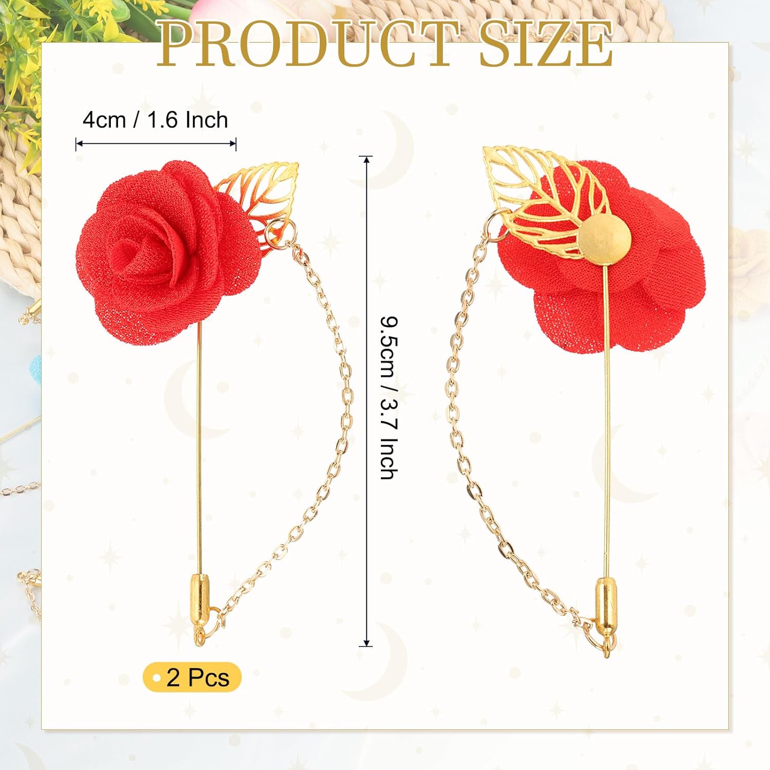 Cos'è questo? Realizzato in seta e metallo, questo pendente a rosa con catena per abbottonature è perfetto per lo sposo, il testimone o altri importanti ospiti, progettato per aggiungere eleganza e calore al tuo matrimonio. I gioielli di moda sono adatti anche per il tuo abbigliamento quotidiano e possono essere utilizzati in molte occasioni, come San Valentino, Natale, Ringraziamento, Compleanno, Festa del Papà, Matrimonio, Festa, Anniversario, Ballo. Cosa riceverò? Riceverai: Spilla a Fiore per Revers x 2 Pz; Colore: Arancione; Materiale: Metallo, tessuto; Dimensioni: 9,5 x 4 / 3,7 pollici x 1,6 pollici (L x D, appross.) Ci sono vantaggi del prodotto? 1. La spilla garantisce la sua unica ed esquisita artigianalità. È realizzata con materiali che non appassiranno mai o sbiadiranno, offrendo una bellezza duratura; 2. La rosa con la spilla in metallo e il design della catena squisito, appare semplice ed elegante; 3. La spilla è disponibile in una varietà di colori, che si adattano ai tuoi diversi stili di abbigliamento. Come si usa? Le spille a fiore per revers sono facili da indossare, basta installare la spilla al tuo revers o giacca da abito. Cosa devo notare? Si prega di confermare le dimensioni e il colore del prodotto prima dell'uso e si prega di maneggiarlo con cura per evitare danni.