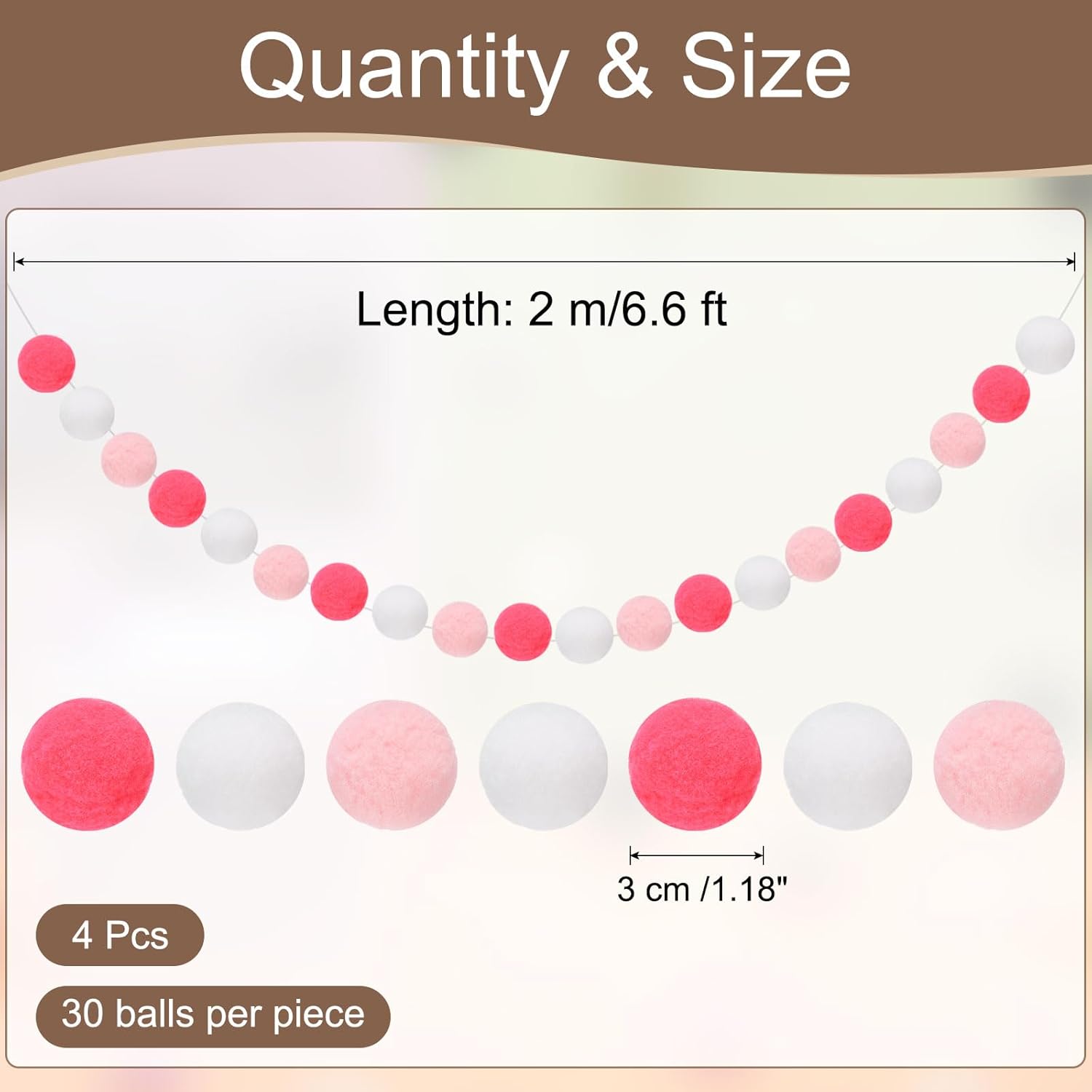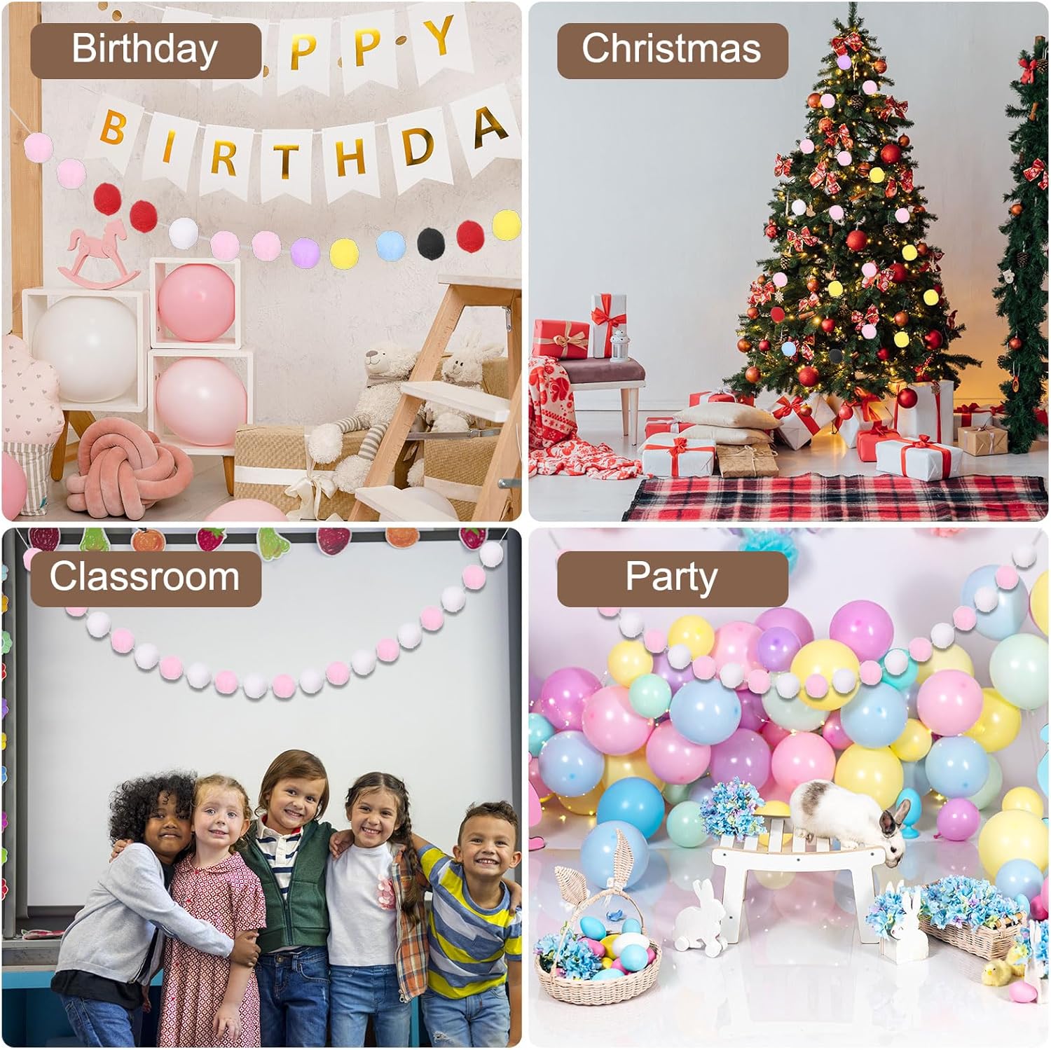 Dimensioni e Confezione: Riceverai un set di 4 ghirlande pom pom, ogni ghirlanda è lunga 2 metri e presenta 30 palline colorate in feltro. La ghirlanda è progettata specificamente per vari scopi decorativi. Materiale: Queste ghirlande pom pom sono realizzate in materiale feltro resistente all'usura, flessibile e con una texture morbida, e la corda è in poliestere. Le ghirlande di palline di feltro sono realizzate con cura per un aspetto festoso e vivace. Design: La ghirlanda di palline di feltro ha un design rotondo e monocromatico che si adatta alla maggior parte degli stili di decorazione per la casa, aggiunge un tocco giocoso a qualsiasi spazio, è una decorazione affascinante e versatile per vari luoghi ed è facile da appendere o drappeggiare. Facile da Appendere: Appendere o drappeggiare la ghirlanda di feltro su pareti, alberi di Natale, tavoli o altre aree che desideri decorare. Regola la lunghezza e la posizione per ottenere il display desiderato. La natura leggera della ghirlanda consente una facile installazione e rimozione. Ampia Applicazione: Questa decorazione a ghirlanda è ideale per Natale, compleanni, decorazioni per feste e altro ancora, aggiungendo un'atmosfera festosa e gioiosa alla tua casa o festa. Può anche essere utilizzata come banner decorativo, portando colore e divertimento alle celebrazioni.