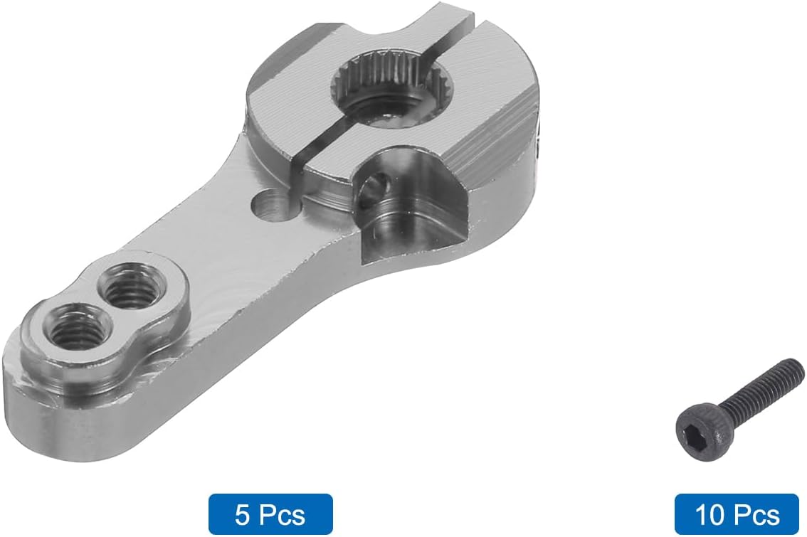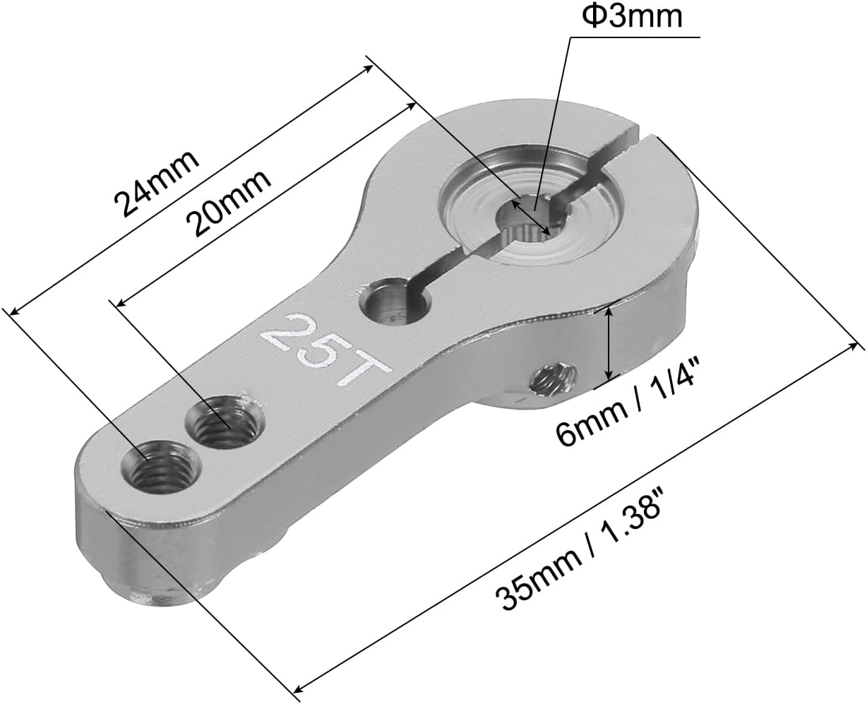 Realizzato in lega di alluminio resistente, il nostro braccio servo fresato CNC offre una maggiore resistenza e durata, garantendo prestazioni eccellenti per modellini RC fai da te. Lo speciale design non solo riduce il carico, ma migliora anche la manovrabilità, consentendo una guida fluida e reattiva. Materiale: metallo; tipo: braccio manubrio 25T; lunghezza totale: 35 mm/1,38 pollici; diametro interno del foro: 3 mm; spessore: 6 mm/1/4 pollici; colore: grigio chiaro; contenuto della confezione: 5 pezzi x 25T braccio manubrio con 2 viti Questo braccio sterzo servo è caratterizzato da un'eccellente compatibilità, che facilita l'installazione e la rimozione. Può sostituire direttamente le parti e fornisce un comodo aggiornamento per la tua auto RC. La vite in dotazione fissa saldamente il morsetto diviso all'uscita del servo e garantisce una connessione stabile. Struttura in alluminio duro per precisione e durata. Allentare il servo corno esistente, collegare il manubrio al nuovo corno, posizionare il corno sull'albero di uscita e fissarlo con la vite centrale. Si prega di considerare un margine di errore di 0,1-0,5 mm a causa della misurazione manuale.