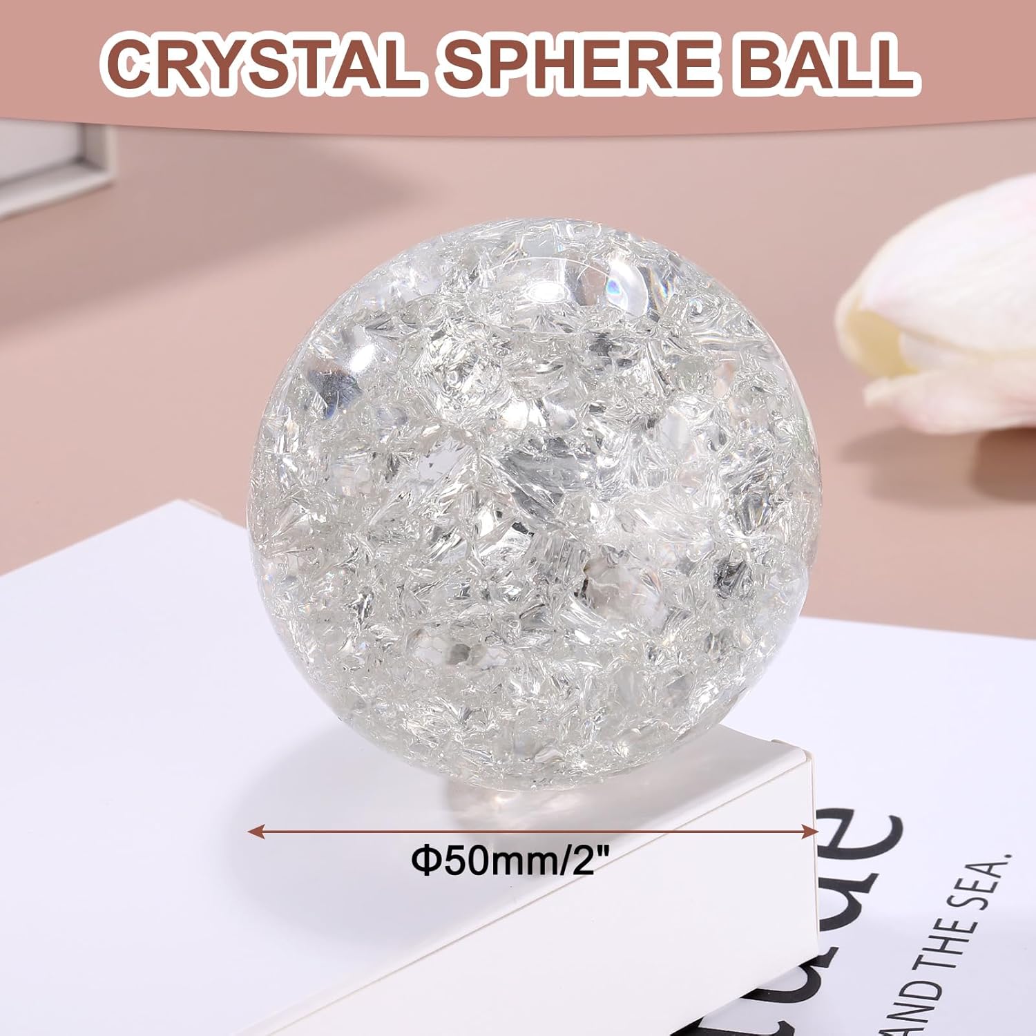 Sfera di cristallo: questa sfera di cristallo ha un diametro di 50 mm/2" e un design a fessura del ghiaccio, si prega di notare che la sfera decorativa non include un supporto Materiale di qualità: la sfera di cristallo è realizzata in vetro con una superficie liscia, resistente e visivamente accattivante, che ne aumenta il valore decorativo Decorazione decorativa della sfera di cristallo: le crepe interne del ghiaccio sono tutte diverse, quindi ogni sfera è unica e il design chiaro e trasparente della sfera consente la riflessione e la rifrazione della luce, creando un'esposizione dinamica e affascinante Ottimo oggetto decorativo: posiziona la sfera di cristallo su un superficie piana o in un supporto decorativo per mostrarne la bellezza, ideale da regalare ad amici e familiari, una scelta eccellente come regalo. Ampie applicazioni: questa sfera di vetro è perfetta per oggetti di scena fotografici, composizioni decorative, cartomanzia, decorazioni da tavolo, fontane da tavolo, decorazioni a cascata e altro ancora, aggiungendo un tocco mistico alle tue creazioni artistiche