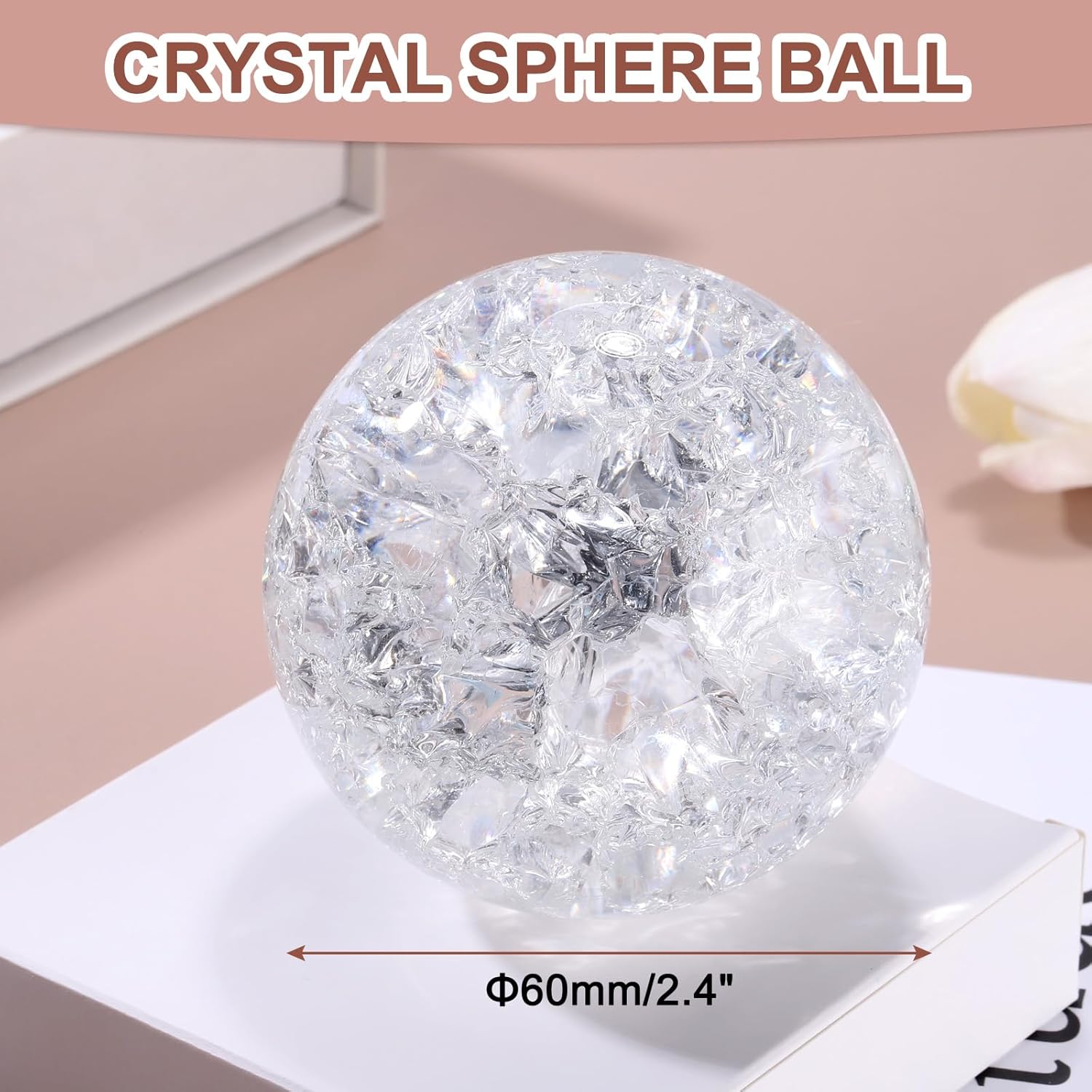 Sfera di cristallo: questa sfera di vetro ha un diametro di 60 mm/2,4" e un design in vetro incrinato come ghiaccio, si prega di notare che la sfera decorativa solida viene fornita senza supporto. Materiale di qualità: la sfera di cristallo è realizzata in vetro con superficie liscia, resistente e visivamente accattivante, che ne aumenta il valore decorativo. Sfera di cristallo decorativa: le crepe interne del ghiaccio sono tutte diverse, quindi ogni sfera è unica e il design trasparente e trasparente della sfera consente la riflessione e la rifrazione della luce, creando un'esposizione dinamica e affascinante. Ottimo oggetto decorativo: posiziona la sfera di cristallo su una superficie piana. superficie o in un supporto decorativo per mostrarne la bellezza, ideale come regalo per amici e familiari. Ampie applicazioni: questa solida sfera di vetro è ideale per oggetti di scena fotografici, composizioni decorative, divinazione, predizione del futuro, decorazioni a cascata con fontane da tavolo e altro ancora, aggiungendo un tocco mistico alle tue creazioni artistiche.