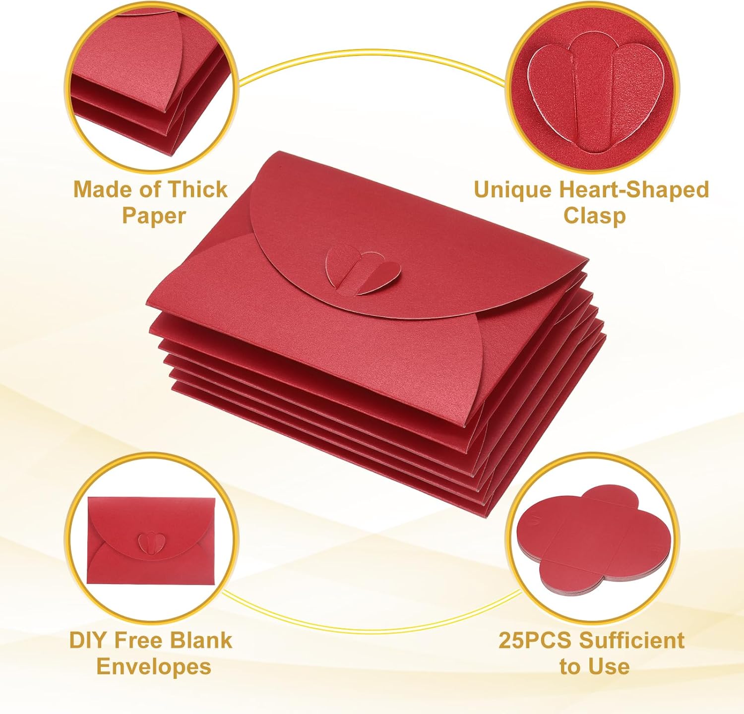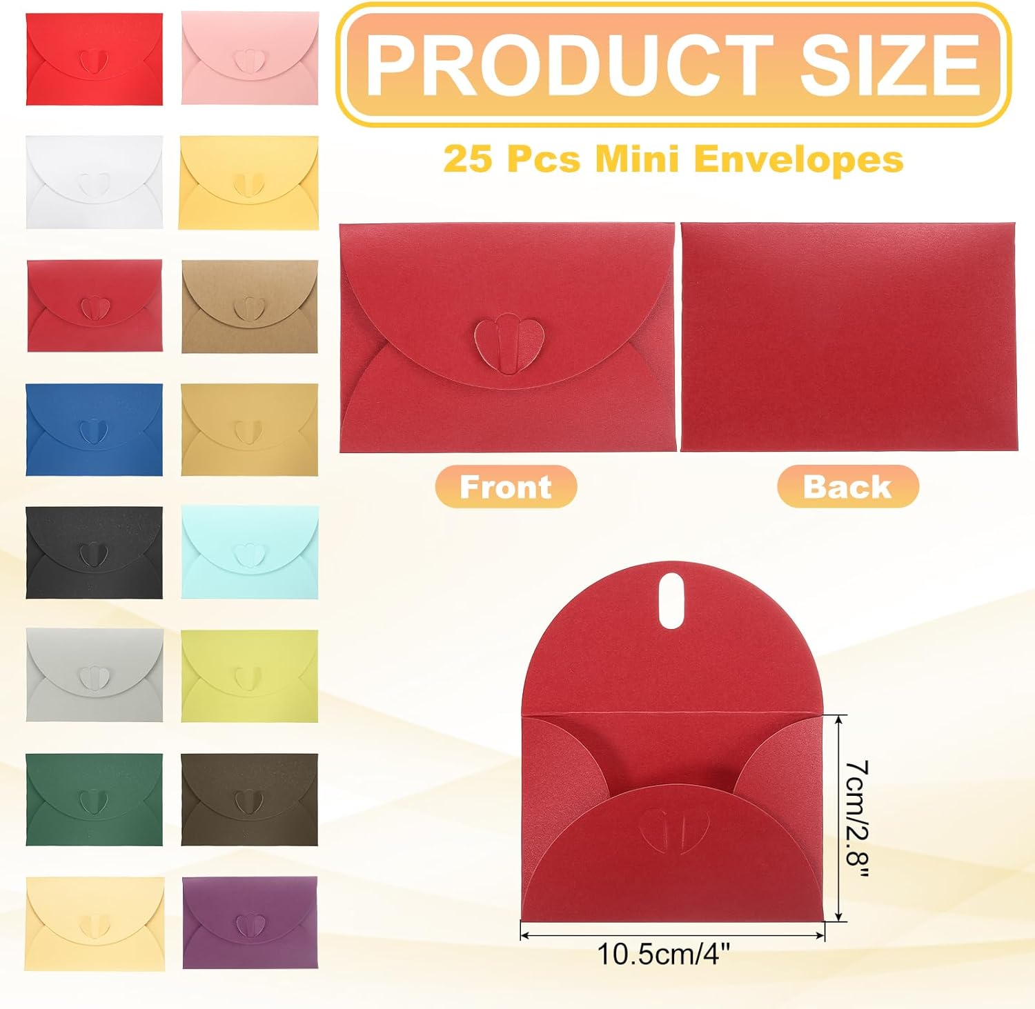 Confezione e Dimensioni: Riceverai 25 buste con dimensioni 10,5 x 7 cm / 4 x 2,8 pollici (L*P). Possono contenere facilmente oggetti cartacei fino a 4 x 2,8 pollici, adatti per foto, lettere, posta, inviti personali, ecc. Materiale Cartaceo: Le buste per cartoline sono realizzate in carta spessa con una texture fine, liscia per scrivere e resistente alla rottura. Offrono un aspetto elegante, resistente e strutturato. Con il design a chiusura a cuore, queste buste sono una scelta perfetta per mostrare la tua eleganza e raffinatezza. Facile da usare: inserisci la cartolina nella busta, piega la carta lungo le pieghe predisposte e chiudi con la chiusura a forma di cuore. Non è necessario colla o nastro adesivo, rendendo la preparazione e l’invio di biglietti d’auguri più efficiente. Creatività Fai da Te: Usare buste bianche può essere un processo creativo. Puoi stampare, disegnare o scrivere parole a tuo piacimento per adattarle al tema. Questo aggiunge un tocco di unicità a inviti, biglietti d’auguri o comunicazioni aziendali. Ampia Utilizzazione: Le nostre buste per inviti sono la scelta ideale per molte occasioni, tra cui matrimoni, feste di compleanno, lauree, Natale, Ringraziamento, celebrazioni, anniversari, appunti, business e qualsiasi altra esigenza.