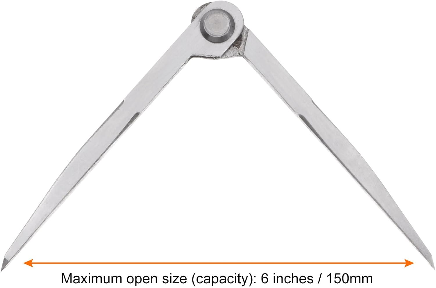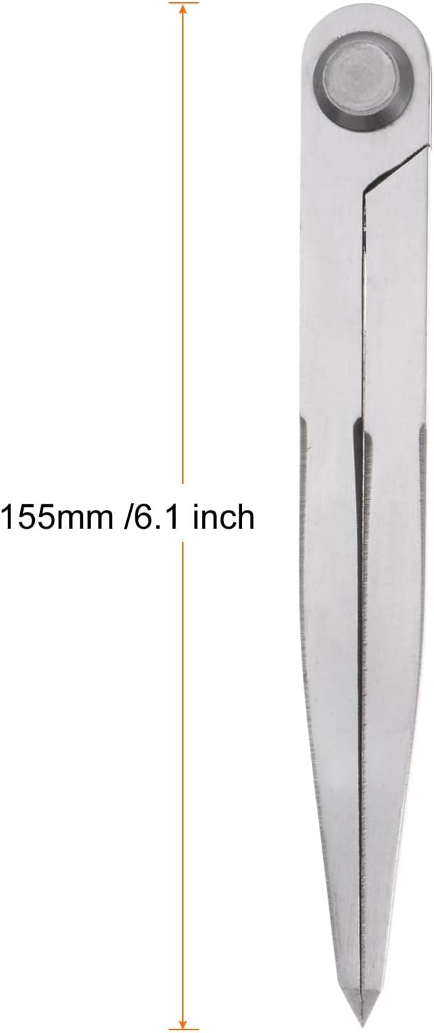 Dimensioni: bussola di navigazione in metallo 155 mm di lunghezza x 20 mm di larghezza x 13 mm di altezza con una lunghezza di apertura massima (capacità) di 6 pollici/150 mm. Materiale: la bussola per carpenteria di precisione è forgiata in acciaio al carbonio, con trattamento termico complessivo, resistenza all'usura, durata e lunga durata. Caratteristica: le aste forgiate in acciaio al carbonio di alta qualità sono dotate di punte temprate per una marcatura precisa del pezzo e una messa a punto precisa semplicemente aprendo o chiudendo l'asta. Applicazione: la bussola è un utile strumento di trasferimento delle misurazioni per misurare la dimensione interna di parti rotonde o oggetti di forma irregolare. Ottimo anche per disegnare cerchi su metallo, linee di divisione, disegnare archi, segmenti di linea, disegni geometrici, ecc. Utilizzo: superficie liscia, misurazione accurata, può essere utilizzato a lungo e non è facile da allentare.