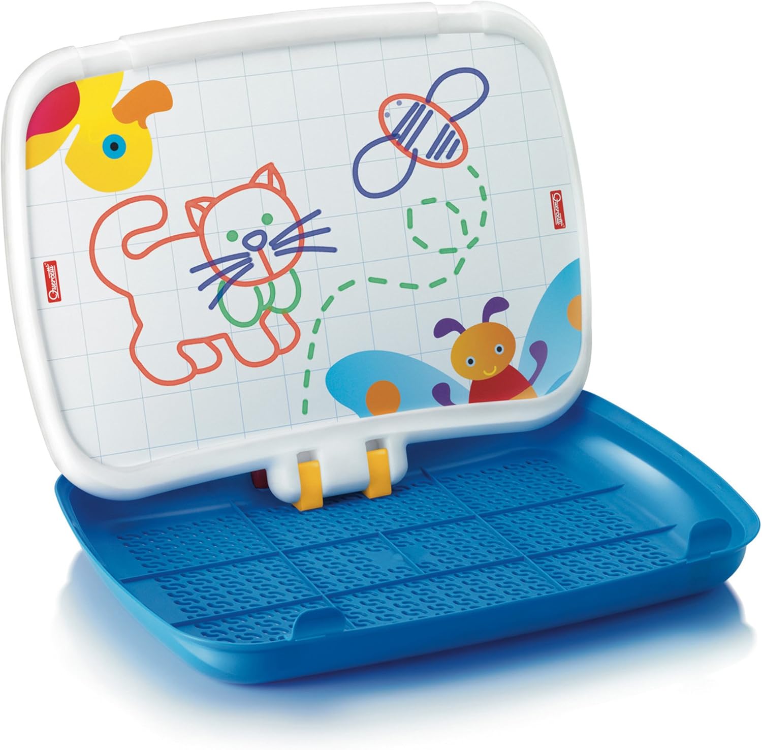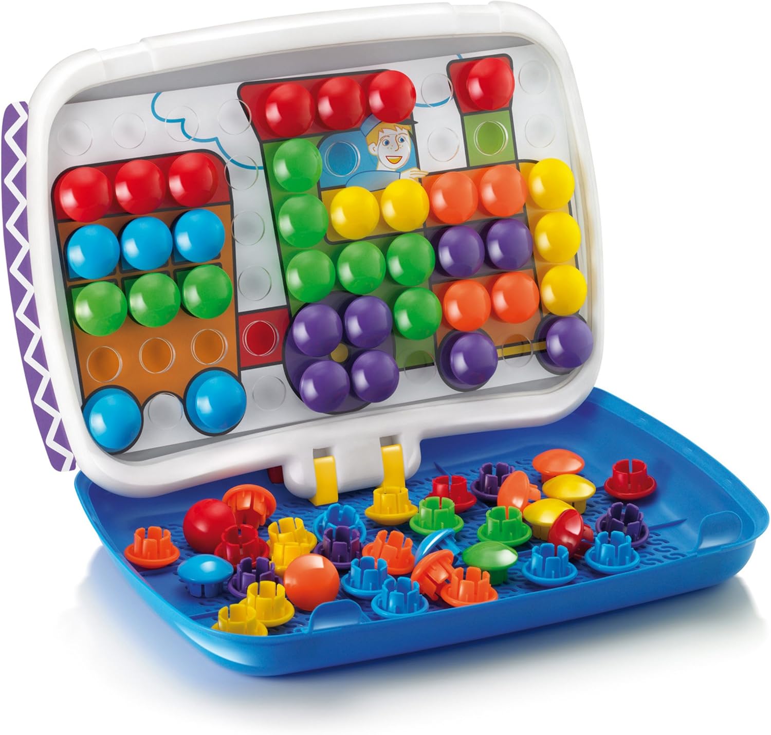 Due giochi insieme in una custodia multifunzionale: da un lato si disegna con i tasselli colorati, dall'altro c'è una lavagna cancellabile su cui si può scrivere con un pennarello. Puoi semplicemente abbassare la tavola, sollevarla, rimuoverla e ribaltarla. La confezione contiene 60 tasselli in 7 colori (diametro 33 mm), 6 guide. Cestino portaoggetti portatile per il riordino con maniglia È un gioco educativo e creativo, stimola la sensibilità ai colori e la coordinazione occhio-mano oltre allo sviluppo della destrezza nei movimenti fini 100% Made in Italy