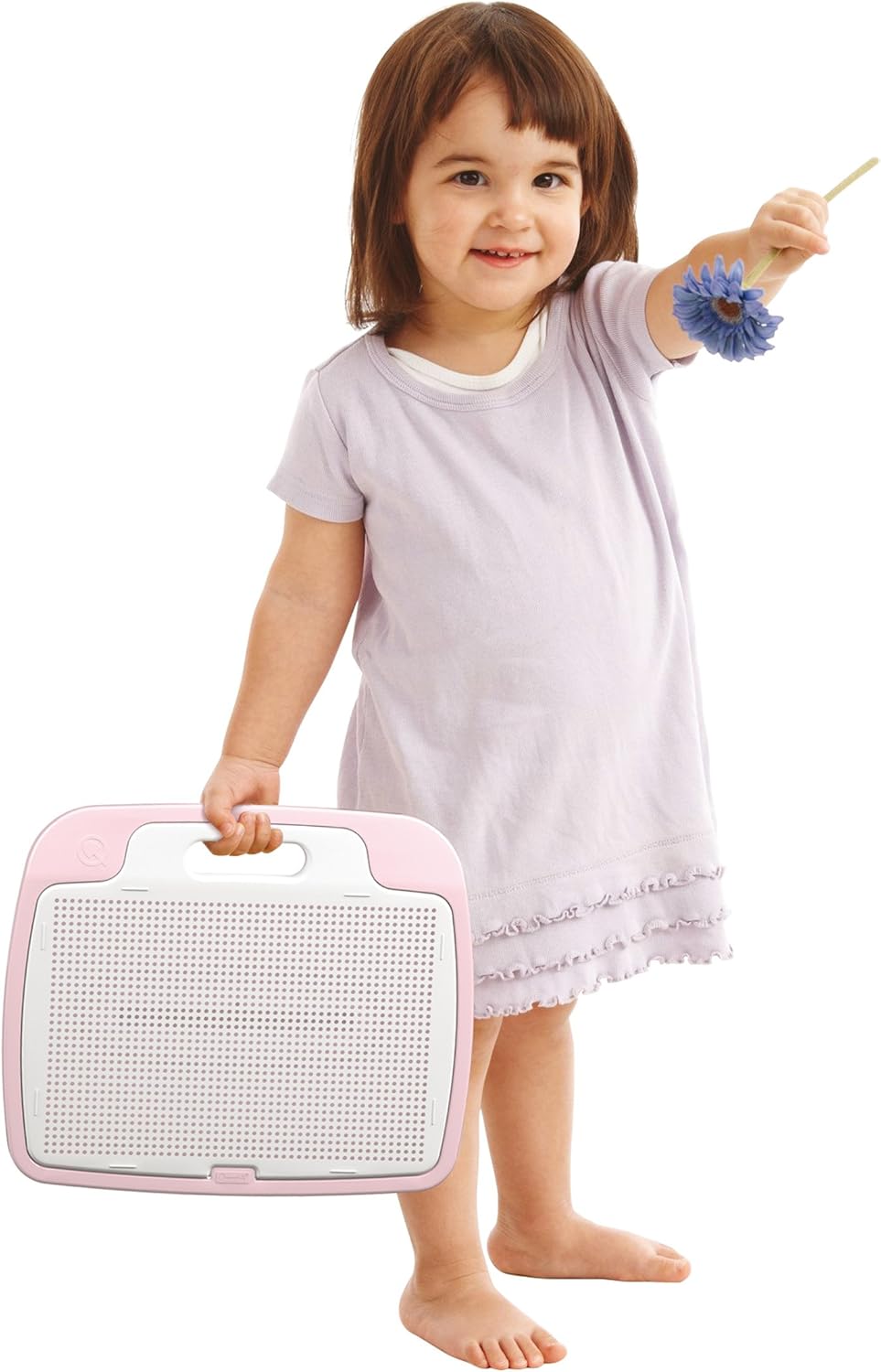 Un classico intramontabile, il gioco plug-in Quercetti con un nuovo design, tavolozza di colori per ragazze. La maniglia a doppia funzione permette un facile trasporto e dà alla tavola la giusta inclinazione per utilizzarla in verticale. A fine gioco riponi tutto nel pratico cestino contenitore. La piastra forata con manico funge anche da coperchio. Il bambino è guidato da guide illustrate 100% made in Italy