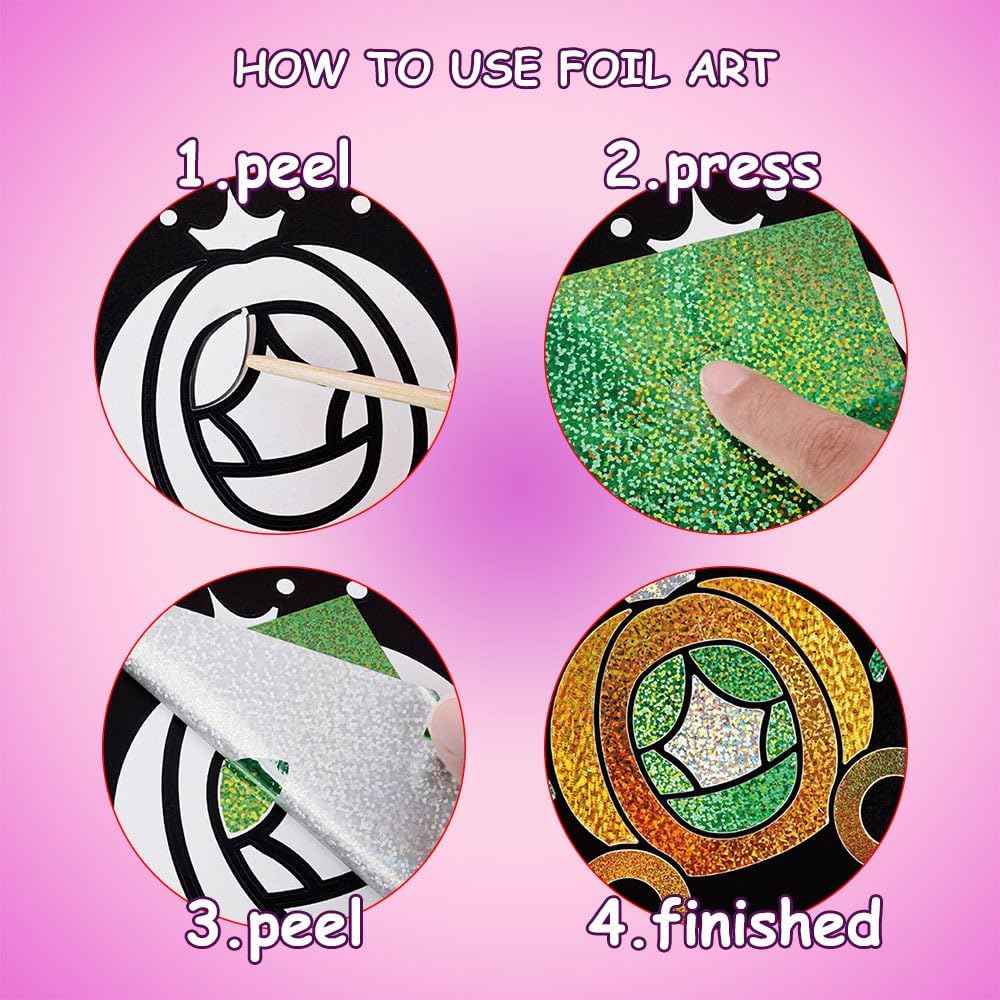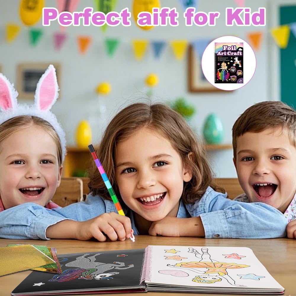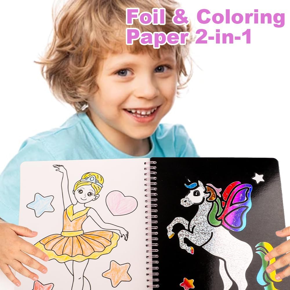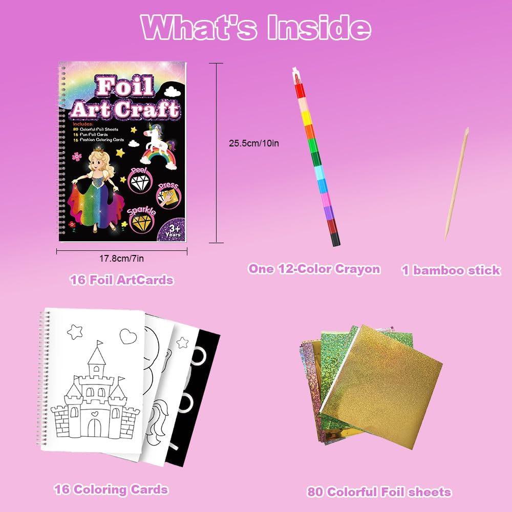 Contenuto Set:1 arte in foglio principessa per bambino + 80 fogli di alluminio + 1 bastone di bambù + matiti a splicing 12 colori. Non è necessario acquistare materiali aggiuntivi, può essere utilizzato direttamente fuori dalla borsa, che è conveniente e veloce Facile da usare: con il libretto magico, puoi attaccare fogli di alluminio colorati all'album senza bisogno di colla. In questo modo, non dovrai preoccuparti di macchiare i vestiti o il pavimento mentre viaggi, durante le attività manuali a scuola o alle riunioni di famiglia Descrizione della caratteristica: Ci sono 16 pagine stampate su entrambi i lati dell'arte del foglio. Il lato anteriore è una pittura d'arte magica che può essere realizzata con foglio di alluminio. Il retro è una carta da colorare con una varietà di modelli per i bambini da colorare. La carta è spessa e di colore uniforme senza penetrazione dell'inchiostro, che è facile da colorare. Ci sono una varietà di modelli e puoi creare come ti piace Interazione del gioco: questo divertimento in foil è progettato per i bambini di età compresa tra i 4 e i 9 anni per stimolare l'immaginazione dei bambini e aiutare a coltivare le capacità motorie fine, il pensiero creativo e il riconoscimento dei colori. È molto adatto per migliorare la coordinazione mano-occhio mentre si diverte Regalo di vacanza: Che si tratti di compleanno, Natale, Giorno dei Bambini o altre occasioni speciali, questo set d'arte in foglio è un grande regalo per le bambine, che non solo riflette le intenzioni del donatore del regalo, ma consente anche ai bambini di sentire la gioia della creazione