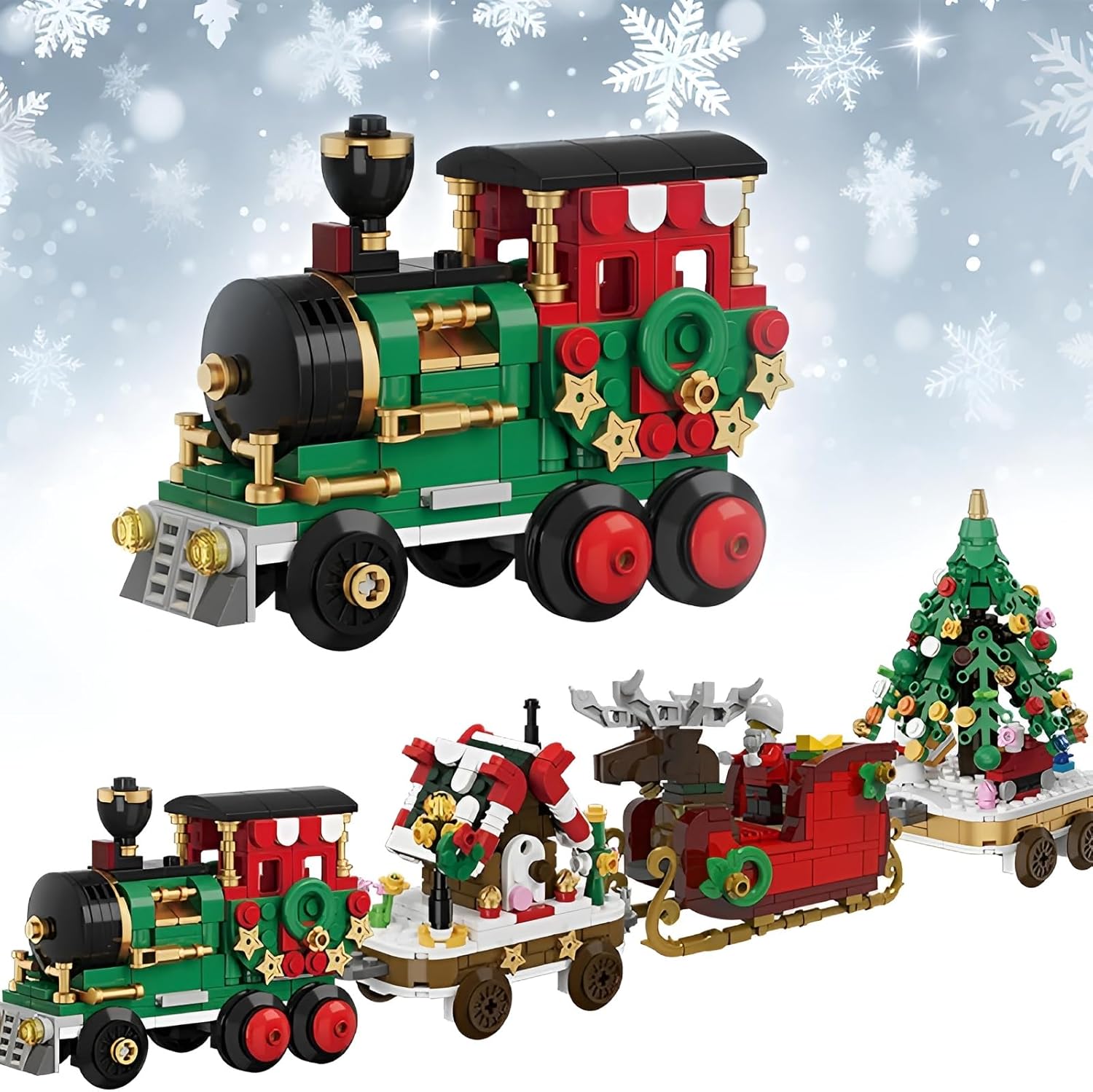 DESIGN RICCO: questo set di mattoncini per il treno di Natale contiene 803 pezzi e istruzioni. Il prodotto finito comprende quattro modelli di piccole auto, una locomotiva, un'auto di Natale, una slitta e un albero di Natale, offrendo un'esperienza di costruzione varia. EDUCATIVO E DIVERTENTE: con i giocattoli modello treno di Natale, i bambini possono allenare le loro abilità pratiche e capacità di pensiero costruendo con mattoncini. Più di 800 elementi costitutivi mettono alla prova la tua pazienza, ma puoi anche costruire insieme ad amici e familiari e condividere la gioia di trascorrere del tempo insieme. MATERIALE SICURO: questo set di treni natalizi è realizzato in materiale ABS di alta qualità. I bordi dei mattoncini sono lucidati in modo uniforme per evitare il rischio di graffi, creando un ambiente di gioco sicuro per i bambini. BELLISSIMA DECORAZIONE: i kit dei trenini di Natale sono divertenti da costruire e i set dei trenini di Natale splendidamente assemblati possono essere utilizzati come decorazioni per la casa, aggiungendo un tocco di colori unici per bambini all'atmosfera festosa. REGALO FESTIVO: la combinazione di treno e mattoncini è molto apprezzata dai bambini. Fai questo regalo questo Natale in modo che i bambini possano staccarsi dai prodotti elettronici, immergersi nel divertimento della costruzione e sperimentare tante sorprese.