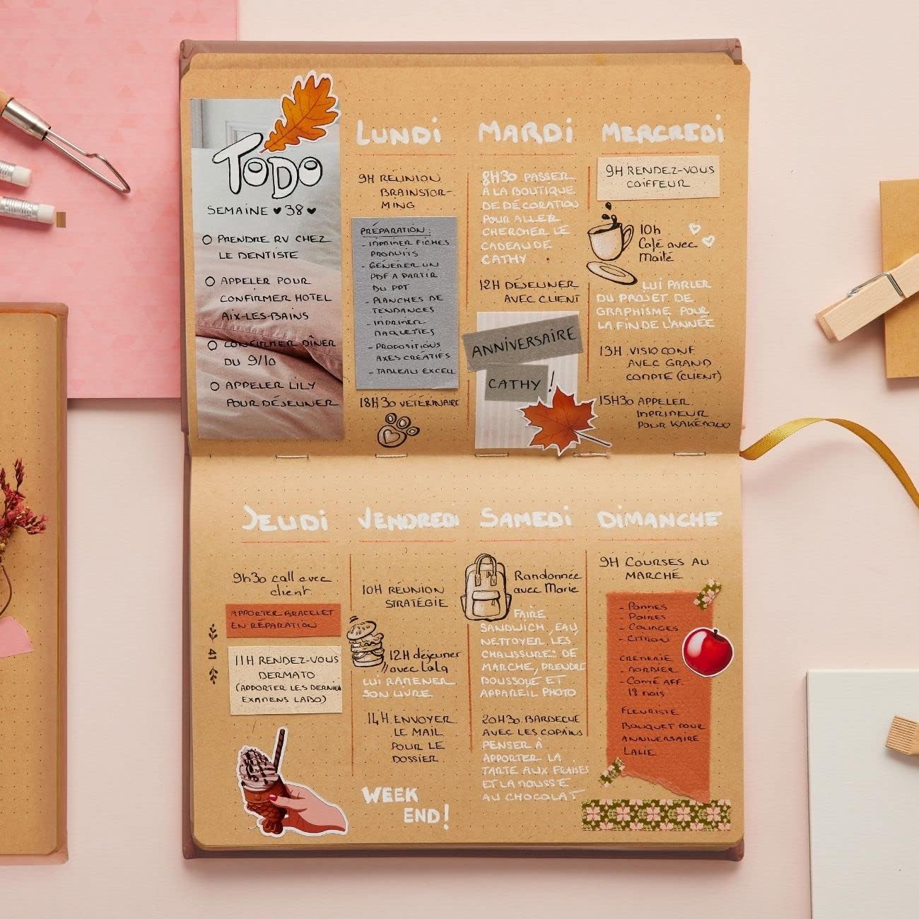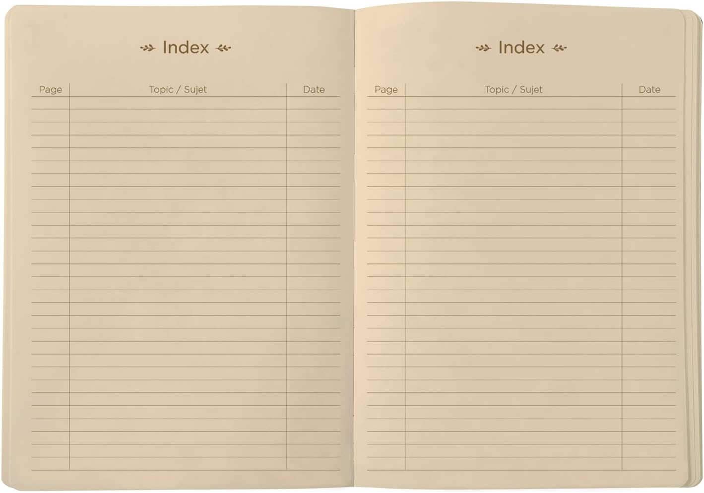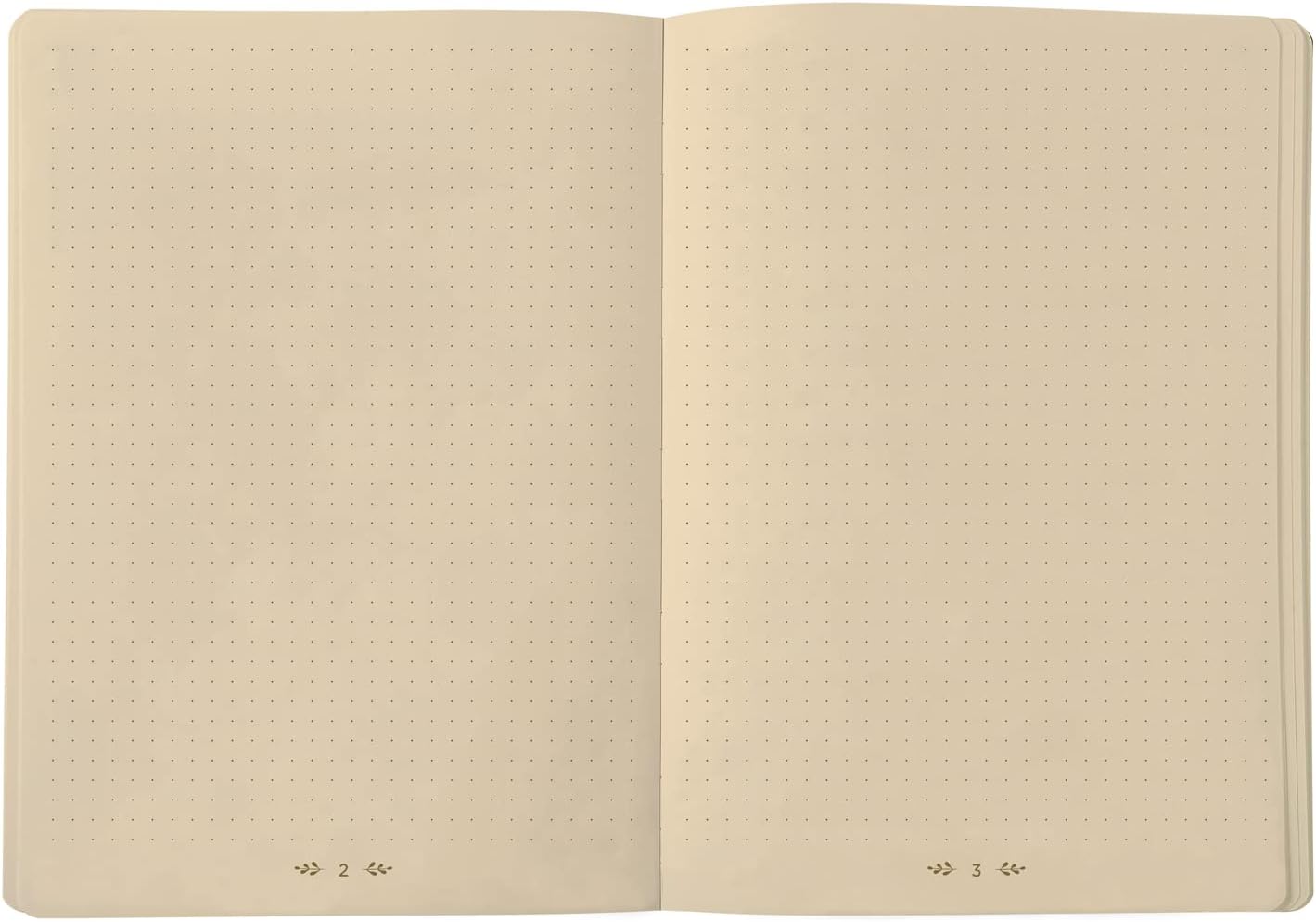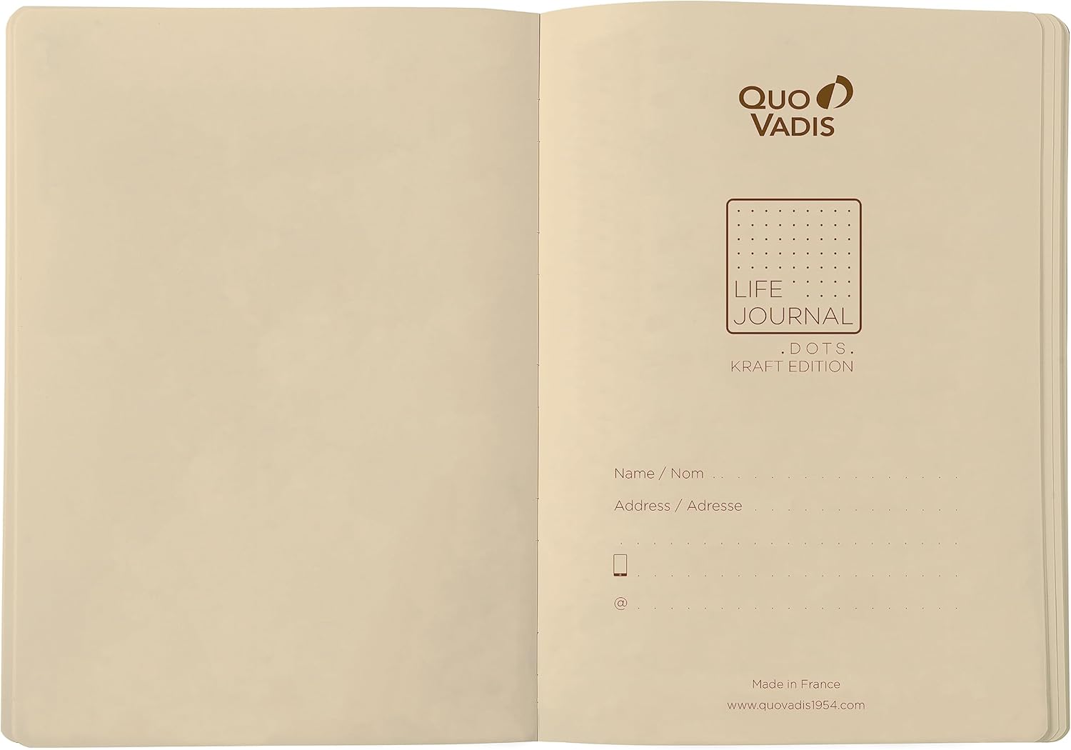 Quaderno a righe con 5 pagine indice e 215 pagine numerate, ideale per progettare il proprio diario utilizzando il metodo Bullet Journal Segnalibro a nastro per una facile identificazione Tasca interna portaoggetti per riporre piccoli documenti Carta kraft da 90 g/m², priva di acidi e resistente per creazioni originali Chiusura sicura con elastico