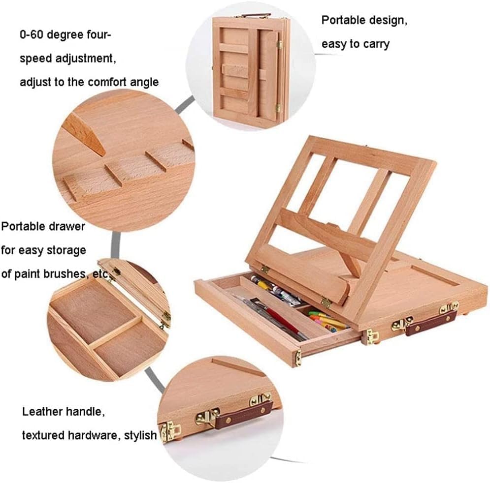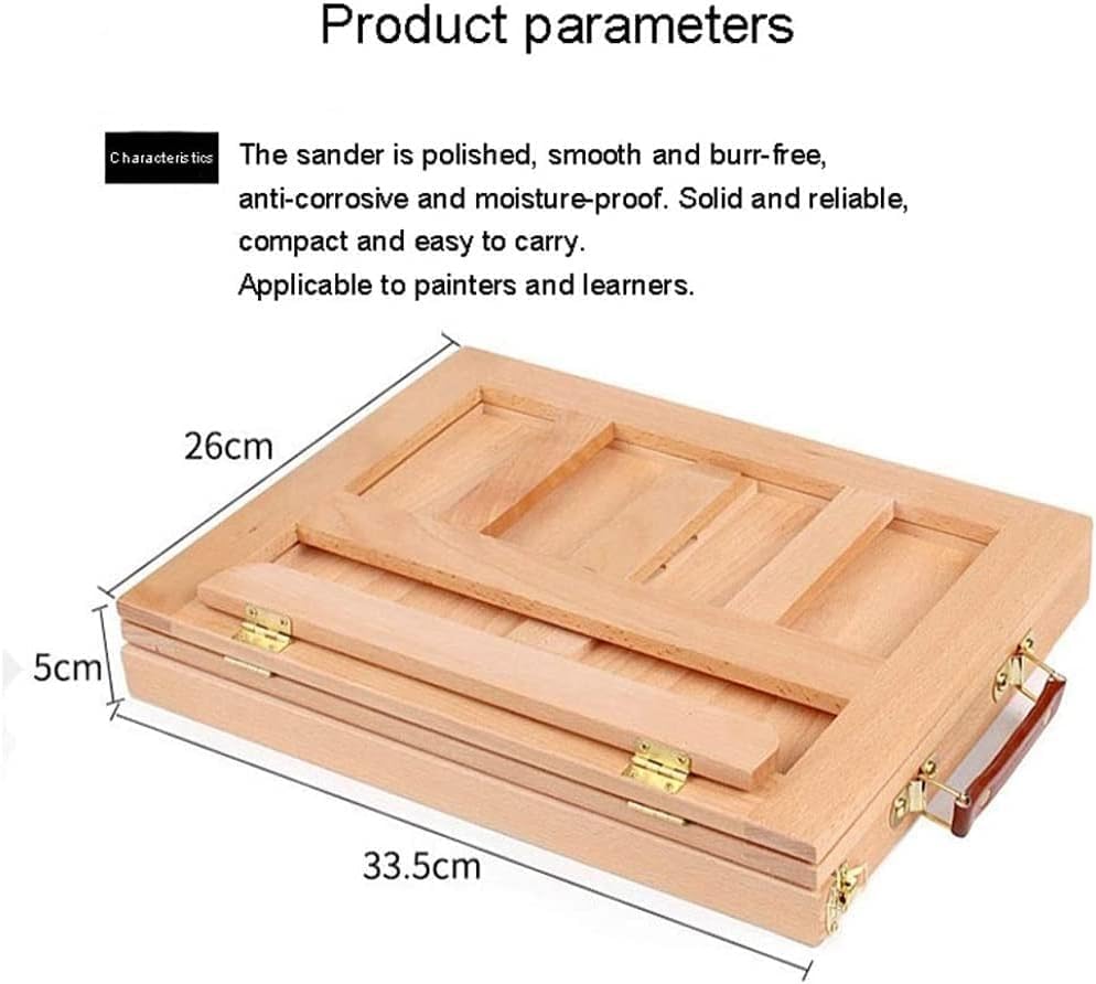 Regolazione a quattro velocità da 0 a 60 gradi, adatta all'angolo di comfort Caratteristiche: Lucidatura della levigatrice, liscia e senza sbavature. Solido ed affidabile, compatto e facile da trasportare. Applicabile a pittori e studenti. Cassetto portatile for riporre facilmente pennelli, ecc. Manico in pelle, hardware strutturato, elegante Design portatile, facile da trasportare