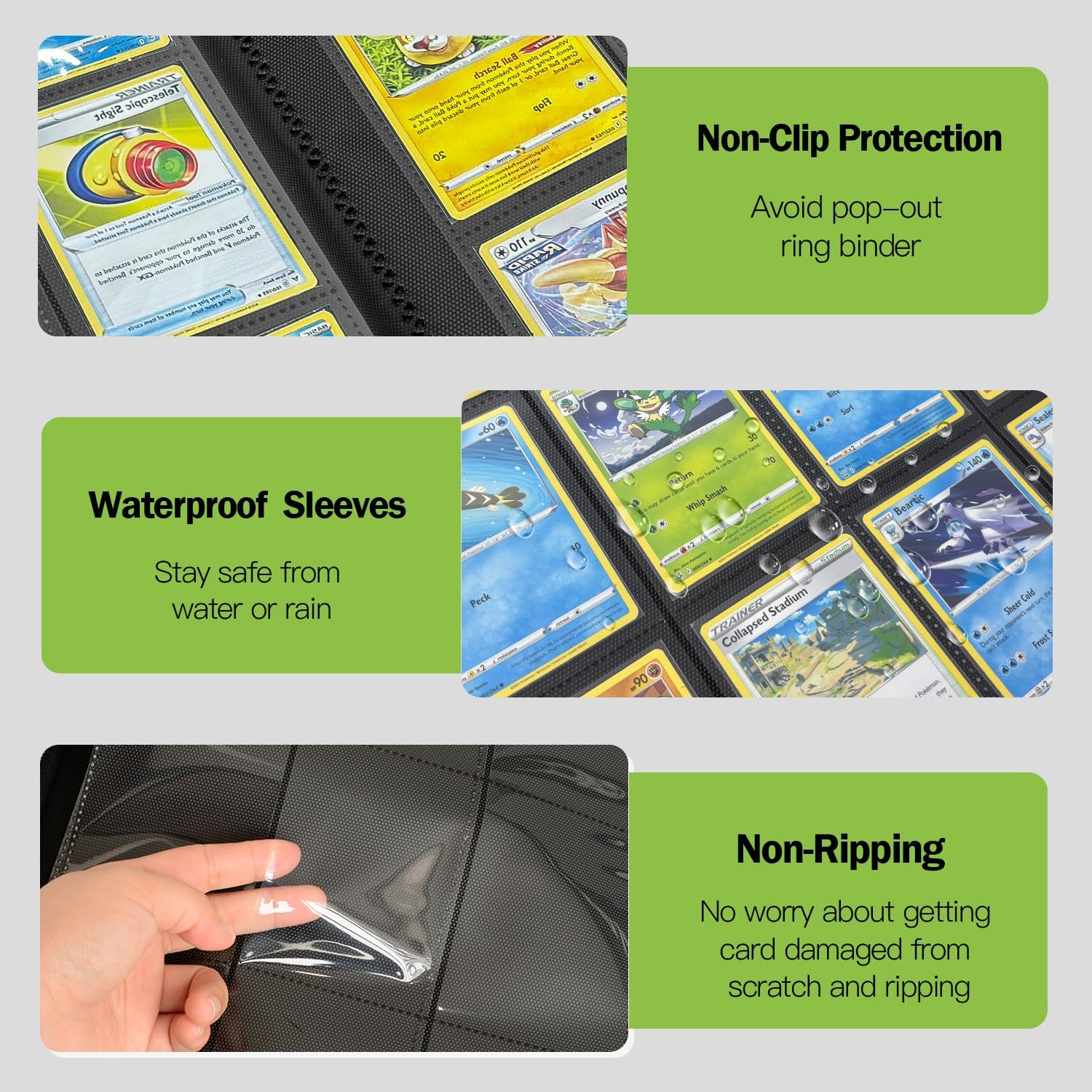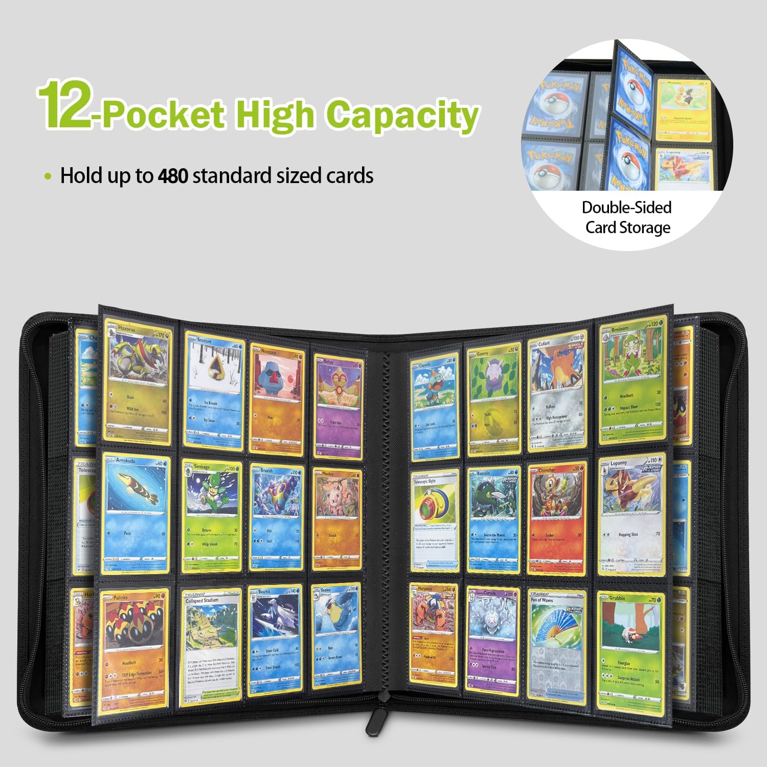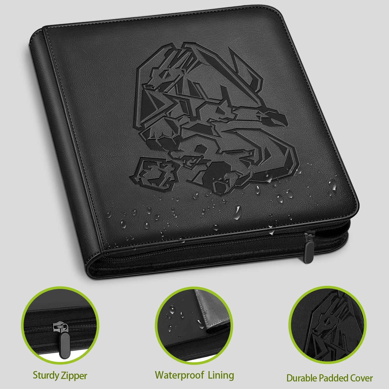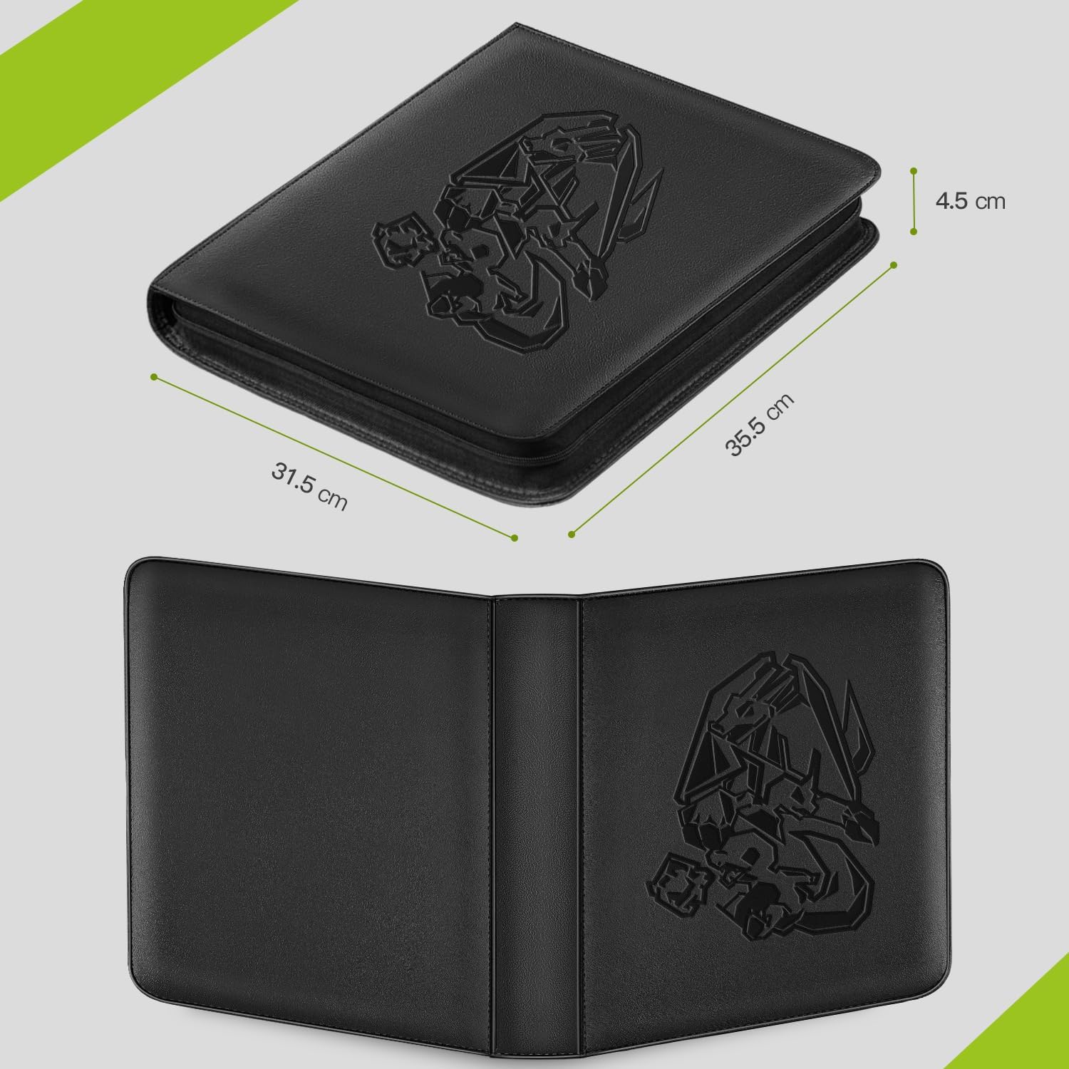 Artigianato senza pari: raccoglitore di carte completamente nuovo con contorni dei caratteri in rilievo su pelle PU imbottita di alta qualità - ideale per molte collezioni di carte di valore. Organizza 480 carte in perfetto ordine: il raccoglitore doppio a 12 scomparti ad alta capacità offre 20 pagine di protezione con spazio di archiviazione su entrambi i lati. Può contenere fino a 480 carte TCG standard o carte con buste protettive di capacità massima. Grazie al design senza anello, le carte non si piegano né si danneggiano. Allo stesso tempo, il sistema consente una chioma liscia e senza sforzo. Protezione rinforzata: protegge le carte dai danni durante il giorno, le mantiene prive di polvere, umidità e perfettamente organizzate. Cerniera + slot di caricamento laterali con fondo nero per evitare che le carte scivolino o si danneggino durante il trasporto. MATERIALI DI ALTA QUALITÀ: Il robusto raccoglitore di carte convince con i suoi dettagli insoliti: pagine prive di acidi e PVC combinate con una superficie imbottita in pelle sintetica giapponese. Lunga durata garantita anche con un uso intensivo. Regalo ideale: con un formato compatto di 35 x 34 x 4 cm, perfetto per grandi collezioni. Questa scatola per carte protegge in modo affidabile collezioni preziose: il regalo perfetto per i collezionisti di TCG con abbondanza di stock