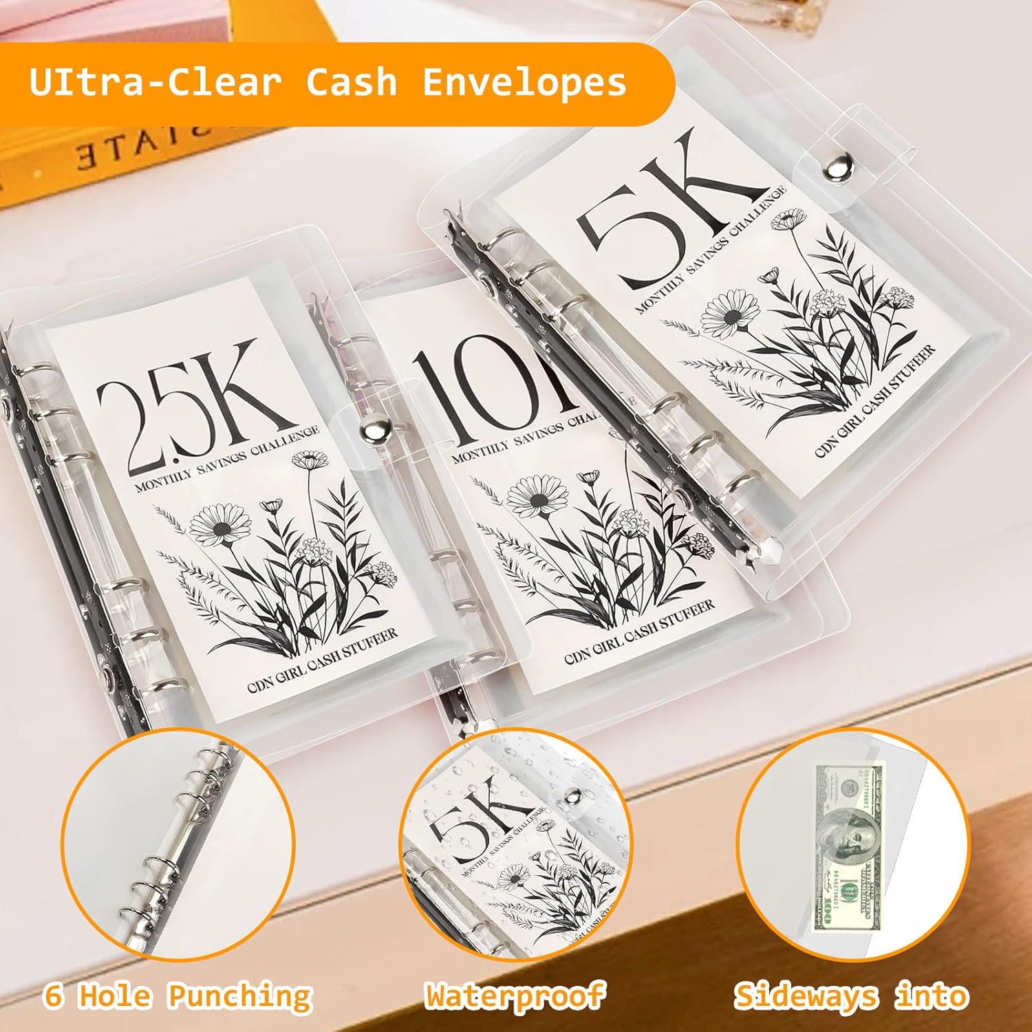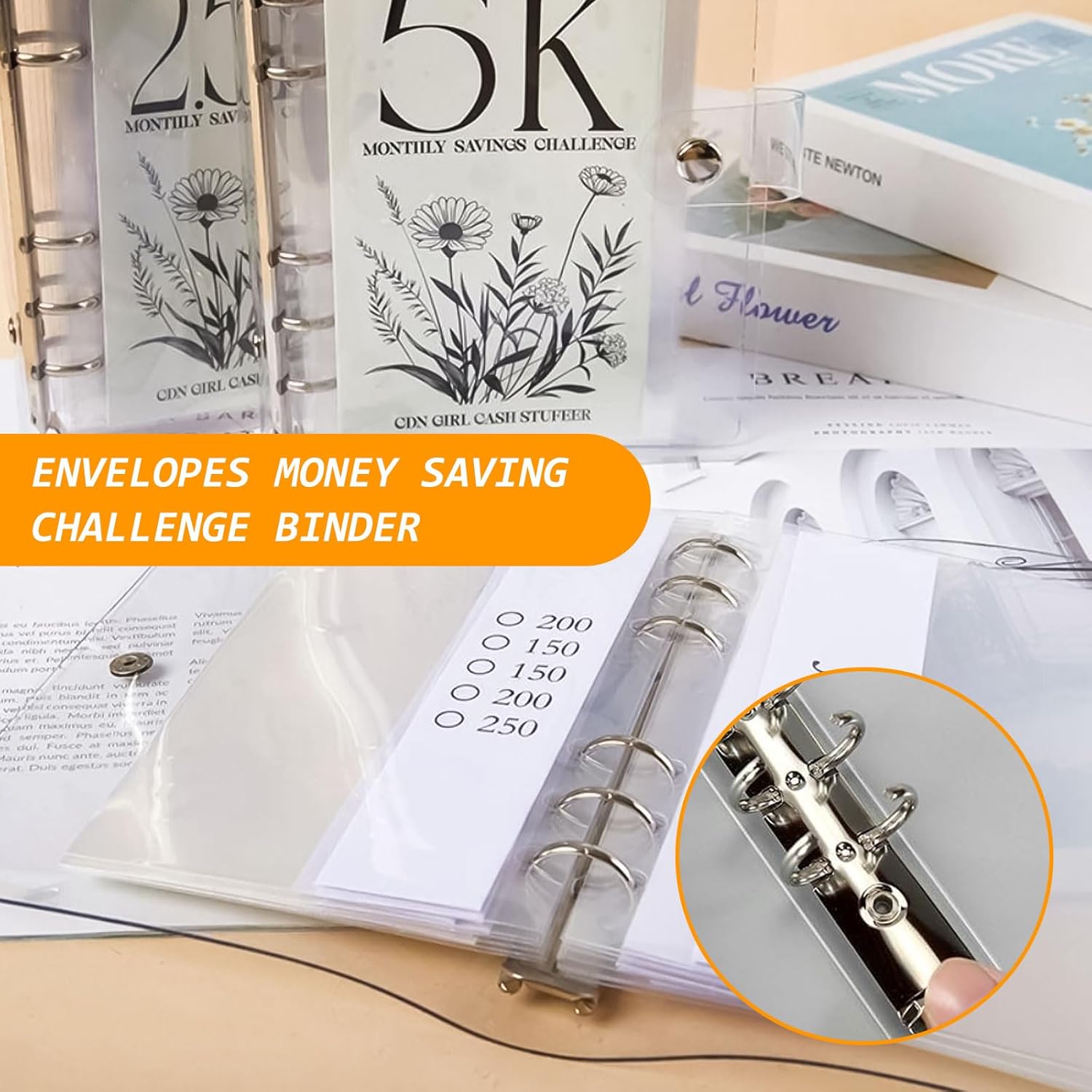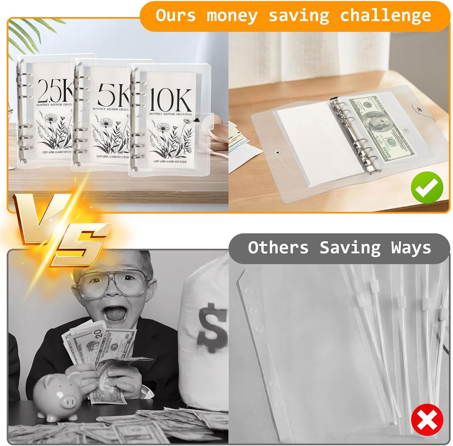 ASSISTENTE AL BILANCIO: il set consiste in un libretto di buste da 3 pezzi (12 pagine ciascuno) con importi di risparmio di 2,5K/5K/10K per aiutarvi a fare il bilancio migliorando la memoria e l'esecuzione dei risparmi. CREARE UN PIANO DI RISPARMIO: la Sfida del Risparmio in Busta vi aiuta a raggiungere i grandi obiettivi che sognate e a risparmiare in modo facile e divertente. Aiuta a comunicare meglio con il denaro e a sviluppare buone abitudini di risparmio. LIBRO A FOGLIE LARGHE IN PVC: il libro dei risparmi è realizzato in PVC a fogli sciolti, impermeabile, antipolvere, antigraffio e antipiega, classico e pratico, mentre il design a fogli sciolti con ferro da stiro a 6 fori consente di inserire e rimuovere facilmente le pagine interne per un facile utilizzo. FACILE DA TRASPORTARE: questo libretto ha dimensioni di 19 x 15 cm, è compatto e leggero, facile da trasportare e da riporre, può essere messo in borsa, nello zaino, ecc. MULTIFUNZIONALE: ogni pagina della cartella di risparmio può contenere diverse cose in modo indipendente, come risparmi, foto, ecc. per una facile classificazione e gestione, può essere utilizzata come libro di risparmio, raccoglitore di risparmio, libro di denaro, album di archiviazione, album fotografico, molto comodo e pratico.