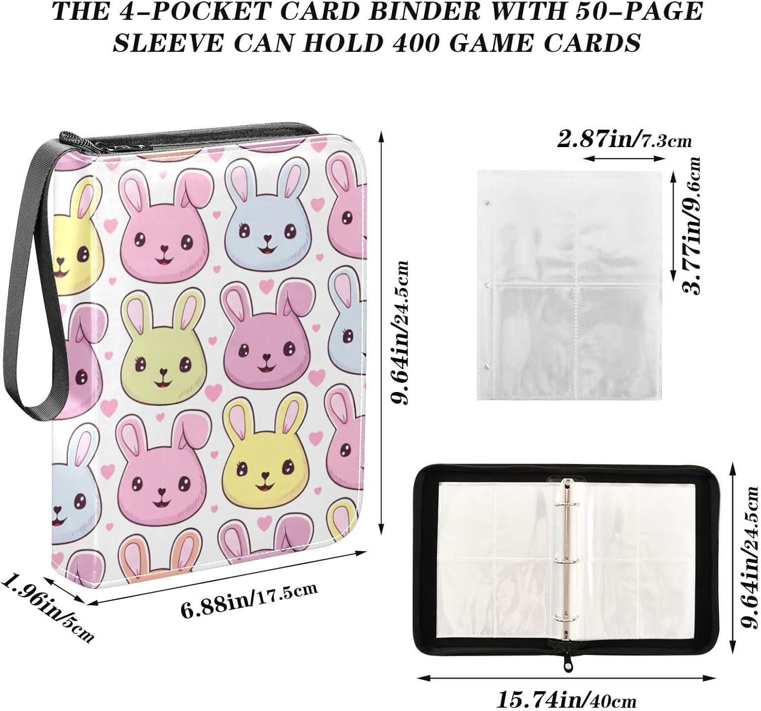 Raccoglitore per carte da gioco con conigli, 4 tasche, 400 tasche, per carte da gioco, album di carte, per carte da calcio, baseball