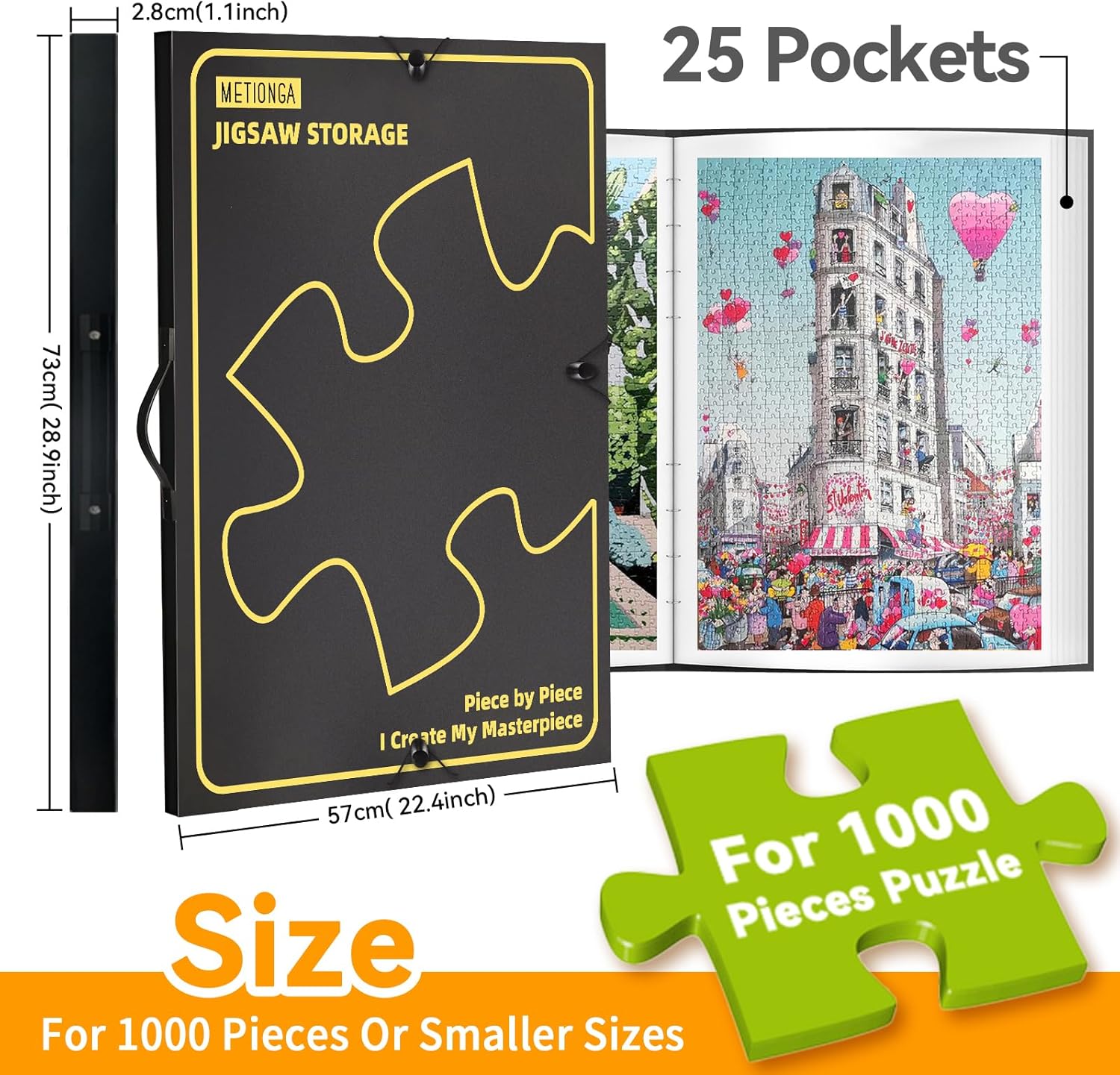 Richiesto grazie al programma Vine di Amazon, dopo averlo ricevuto e testato, sono ora qui per parlarvene fornendovi le mie prime impressioni a riguardo. L'articolo di Metionga che mi accingo a recensire, e' pervenuto senza una confezione di protezione di Amazon e con gli adesivi di spedizione, apposti direttamente sulla sua semplice busta di plastica trasparente, dove all'interno ho trovato : - Raccoglitore con 25 cartelline per la conservazione ed il trasporto di puzzle di dimensioni massime di 1000 Pezzi ( 50cm x 70cm circa ) - Pack di adesivi per il fissaggio di N°1 Puzzle da 1000 Pezzi - N°3 Cordoncini di ricambio per la chiusura del raccoglitore Ho iniziato a fare puzzle da bambino e fin dalla mia prima esperienza, e' nato l'amore per questo hobby. Ma solo intorno ai 20 anni ho iniziato a farne molti, forse troppi, al punto di non poterne piu' collocare dentro casa ed obbligandomi a regalarli od addirittura smontarli e riporli nelle proprie scatole dopo averli ultimati. Dopo essermi sposato, alcuni di essi che avevo fatto incorniciare, li ho portati nella mia nuova casa ma non essendo terminata la passione, ad oggi mi ritrovo nella stessa situazione di allora, non avendo piu' spazio utile da destinare ai nuovi lavori. Il raccoglitore di Metionga che state osservando, e' stato dal momento che l'ho visto, la soluzione ideale per il mio hobby...almeno questo e' quanto mi sono detto non conoscendone le caratteristiche e non essendo presenti recensioni che potessero confermare o smentire quanto potevo ipotizzare. La realta' di quello che avremo tra le mani, e' ben diversa da quanto ci viene proposto o venduto a parole e cerchero' di esporre punto per punto, tutto quello che mi ha convinto e non convinto di questo articolo di Metionga. Partiamo dall'inizio dicendo che questo raccoglitore, perviene senza una reale protezione che meriterebbe e la sua semplice busta in plastica trasparente, non e' minimamente sufficiente a proteggere il contenuto che e' pervenuto purtroppo "ammaccato". Volendo sorvolare sulle "ammaccature", va detto che il raccoglitore di Metionga, e' come un raccoglitore per fogli o documenti, solo di dimensioni maggiori. Chi costruisce puzzle, sa quanto possa pesare un puzzle una volta completato e se si considera che una singola cartellina all'interno di questo raccoglitore puo' contenerne anche due, ipotizzo che le suddette dovrebbero essere piu' che resistenti. Invece, le saldature del fondo delle cartelline, sono letteralmente ridicole e forse potrebbero essere sufficienti a malapena per dei fogli di grandi dimensioni, ma non di grande spessore o peso e tanto per citarlo, il gruppo di adesivi forniti da Metionga, inserito all'interno della prima cartellina, ha rotto il fondo della suddetta ( Molto probabilmente durante il trasporto ), rendendola inutilizzabile. Si ok, sono in grado di effettuare una riparazione in autonomia e so che potrei rendere nuovamente utilizzabile la cartellina, ma se si e' rotta mi viene da pensare che sia stata realizzata in maniera approssimativa e che il materiale utilizzato, sia di scarsa qualita'. Parliamo della copertina. Graziosa e con una serigrafia che mi piace, ma ha uno spessore insignificante. Un raccoglitore di questo tipo, e' comodo se pensiamo di poterlo riporre verticalmente sul fianco di un mobile, dietro una porta od ovunque si abbia un minimo di spazio verticale...altrimenti i puzzle potrei farli incorniciare e conservare sovrapposti dentro un mobile. Quindi, la copertina, dovrebbe essere abbastanza spessa e rigida da poter sostenere il carico dei puzzle collocati al suo interno. Questa cosa non e' invece possibile perche' applicando un carico all'interno del raccoglitore, la copertina non riesce a mantenere in posizione eretta e tende a piegarsi. Ultimo ma non ultimo, c'e' da prendere in considerazione che per poter collocare un puzzle all'interno di una cartellina, dovremo obbligatoriamente fissarlo mediante colla od adesivi dedicati, se non vorremo smontare il nostro lavoro mentre sfogliamo le pagine. Nel momento di questa recensione, il raccoglitore per Puzzle di Metionga appena presentato, e' presente all'interno del grande portale di Amazon, ma non e' disponibile per l'acquisto. Tiriamo le somme... L'idea di Metionga di realizzare un raccoglitore per puzzle, e' interessante, ma andrebbe raffinata ed allo stato attuale, non mi sento di consigliare l'acquisto di questo prodotto che al momento non e' disponibile, ma che nel momento in cui l'ho richiesto, veniva venduto ad un prezzo decisamente troppo alto in rapporto alla qualita' dell'articolo che si riceveva. PRO - Aspetto gradevole dell'articolo - Comoda maniglia per il trasporto CONTRO - Copertina semi rigida troppo flessibile e di spessore esiguo - Le cartelline interne, sono troppo delicate e saldate male sul fondo - Rapporto qualita'/prezzo decisamente sfavorevole 3 stelle e come per le altre recensioni da me effettuate, mi riservo di modificare la suddetta nel caso dovessi riscontrare problematiche relative a questo prodotto. Spero che questa recensione possa essere stata utile in qualche modo e ringrazio Amazon per avermi dato l'opportunita' di testare questo articolo. Buona giornata.