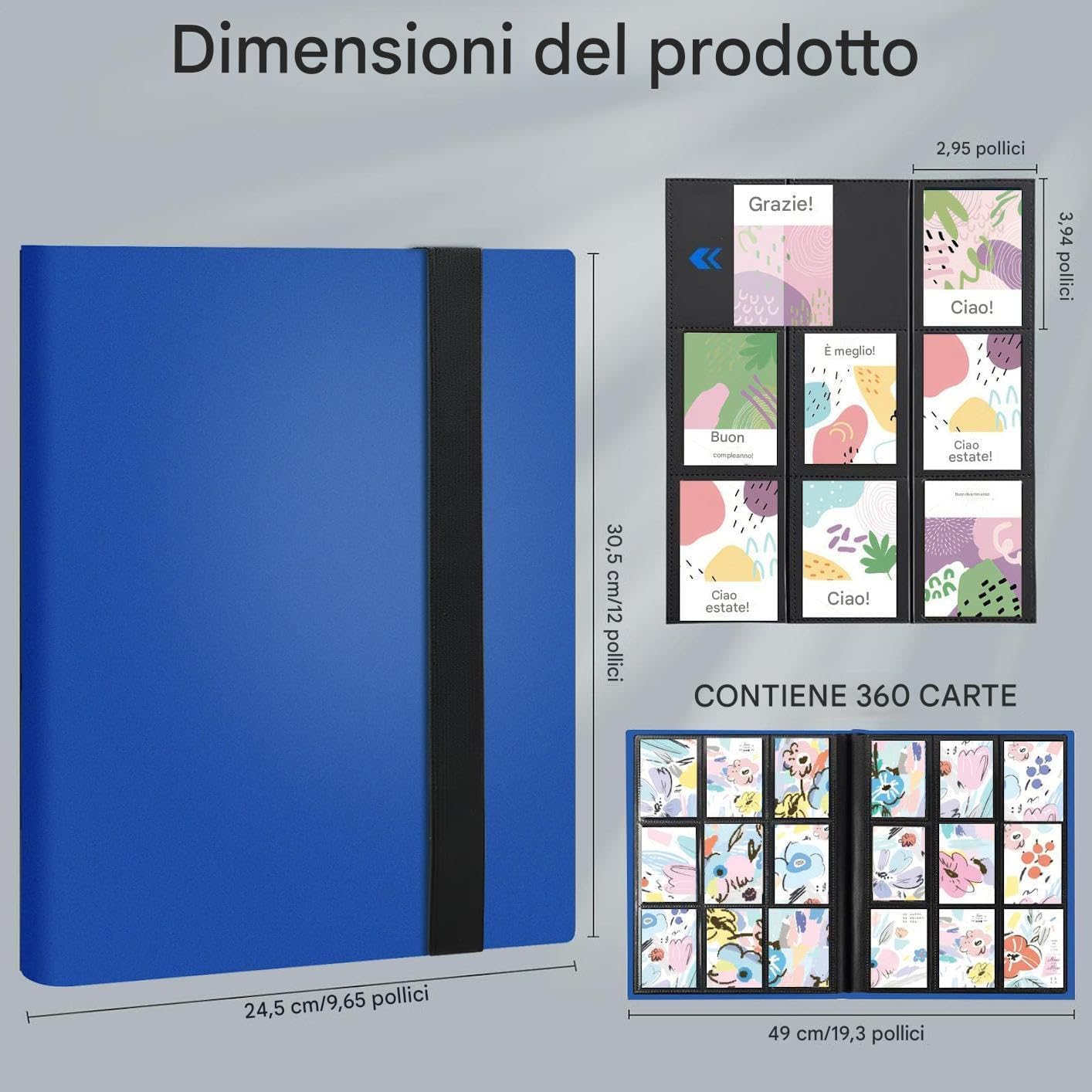 Appassionati: Realizzato per amanti delle carte, regala soddisfazione nell'ordinare le raccolte amplificando la gioia e la natura cerimoniale del creare una collezione preziosa, card dopo card. Protezione : Design esterno resistente all'acqua che mantiene le carte asciutte e al sicuro, prevenendo piegature e usura quotidiana con schermatura Uso Versatile: Pratico e adattabile, è realizzato per contenere carte da gioco e sportive. Offre un archiviazione semplice per collezionabili standard, strumento essenziale per appassionati che cercano organizzazione efficiente e protezione. Protezione Affidabile: Materiali rinforzati e resistenti all'usura prevengono graffi e mantengono le carte sempre saldamente fissate Capienza Ampia: Tasche a caricamento laterale per inserimento rapido e visibilità ottimale, organizzano centinaia di carte da collezione su 20 pagine con 9 tasche ciascuna per una disposizione perfetta