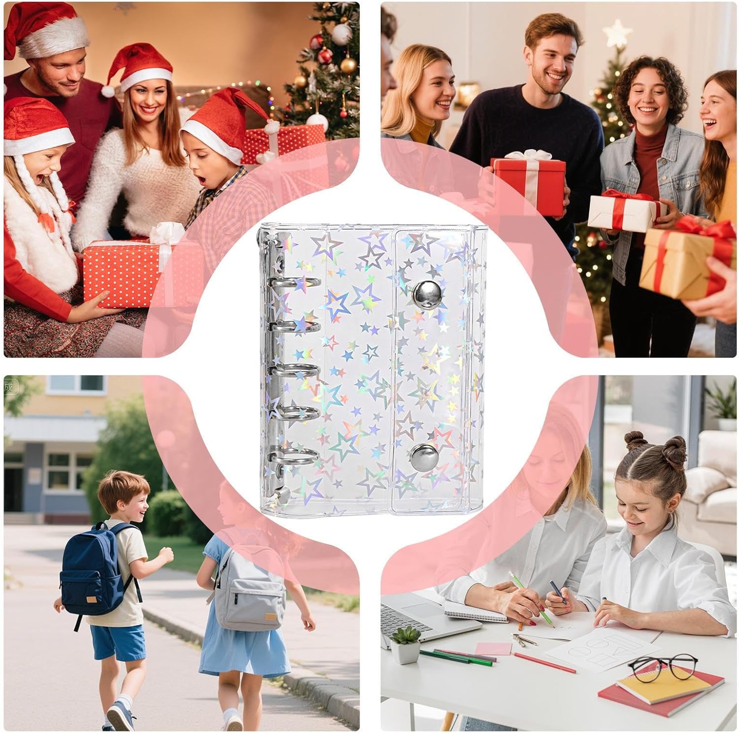 Versatilità Pratica: Combina funzionalità e design multifunzionale per organizzare adesivi, carte e oggetti da collezione. Crea un'area dedicata eliminando il disordine dalla scrivania in modo efficace e senza sforzo grazie alla struttura ben concepita. Regalo Prezioso: Ideale per bambini e ragazzi per dimostrare attenzione durante compleanni, feste stagionali, Natale o celebrazioni annuali, costruendo ricordi gioiosi tramite raccoglitori trasparenti che uniscono utilità e pensiero affettuoso per i più piccoli Design Compatto e Portatile: Struttura leggera e compatta studiata per la massima portabilità, si inserisce senza ingombro in borse o tasche garantendo trasporto agevole durante viaggi o attività quotidiane senza aggiungere volume Effetto Luce Accattivante: Design trasparente con decorazioni a stelle crea un bagliore luminoso sotto la luce, migliora la visibilità di adesivi e carte all'interno aggiungendo un tocco artistico a collezioni ed esposizioni Design Adattabile: Fornitura di un meccanismo ad anelli a apertura agevole per diverse necessità di archiviazione, consente di regolare il volume secondo necessità e aggiungere/rimuovere elementi con flessibilità per maggiore comodità d'uso