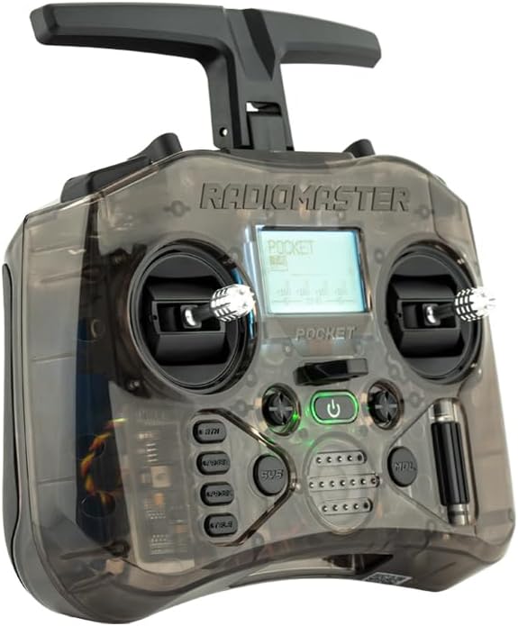 RadioMaster Pocket è un'ottima scelta per i piloti che cercano una radio piccola e leggera con tutte le potenti funzionalità che ti aspetti. Disponibile nelle versioni ExpressLRS e MPM CC2500/Preinstallato con firmware EdgeTX Caratteristiche cardaniche effetto hall come standard per cantering liscio e risposta precisa Le luci LED integrate aiutano a visualizzare gli ingressi degli interruttori/schermo LCD retroilluminato offrendo un perfetto equilibrio tra dimensioni e funzionalità Nella scatola: Radio tascabile, custodia per il trasporto personalizzata, cavo USB-C, accessori, manuale utente